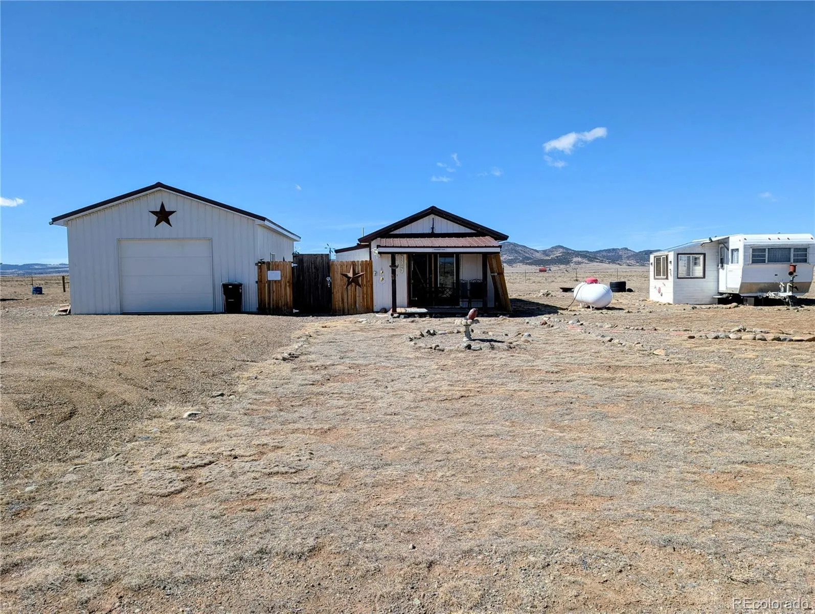 Escape to your own private slice of Colorado paradise with this unique opportunity, where wide-open skies and unobstructed mountain views create a setting that feels worlds away from it all. Included in this listing: a residence on 40 acres, an additional adjacent vacant 40 acres to the south, and a 0.1-acre lot on Alamosa River, just two short miles away, equipped with a charming unplugged, off-grid, 115 sq ft camping cabin! The residence, built in 2020 and set far back from the road for privacy, offers 1-bedroom, 1-bath, and 342 square feet of efficient living with durable metal siding and a metal roof. An established gravel driveway leads you in, while the owned solar system (panels new in 2021) supports sustainable living. Inside, you’ll find a cozy layout with smart use of space, including a loft above the bedroom for storage or extra sleeping. The home is equipped with a 400-foot well, septic, and propane heat (leased 250-gallon tank), making it ideal for year-round living or a peaceful getaway. The property truly shines with breathtaking views, incredible stargazing, and quiet surroundings. Wildlife such as elk, antelope, and sheep frequently pass through, and here you will have a front-row seat to the annual sandhill crane migration. Honeysuckle and aspen trees add natural beauty to the front yard, while a detached oversized one-car garage with concrete floors provides ample workshop space and includes a deep freezer! Two older, semi-remodeled campers offer extra sleeping or storage, along with a small greenhouse for gardening. Nearby adventure awaits from the Sand Dunes Recreation Hot Springs, the Great Sand Dunes National Park, and casinos in New Mexico; this property blends seclusion with convenience. With weekly trash service available, USPS and UPS front porch delivery, and negotiable furnishings, it’s ready to enjoy immediately as a full-time home or weekend escape. Call today for your private tour of all THREE of these properties!