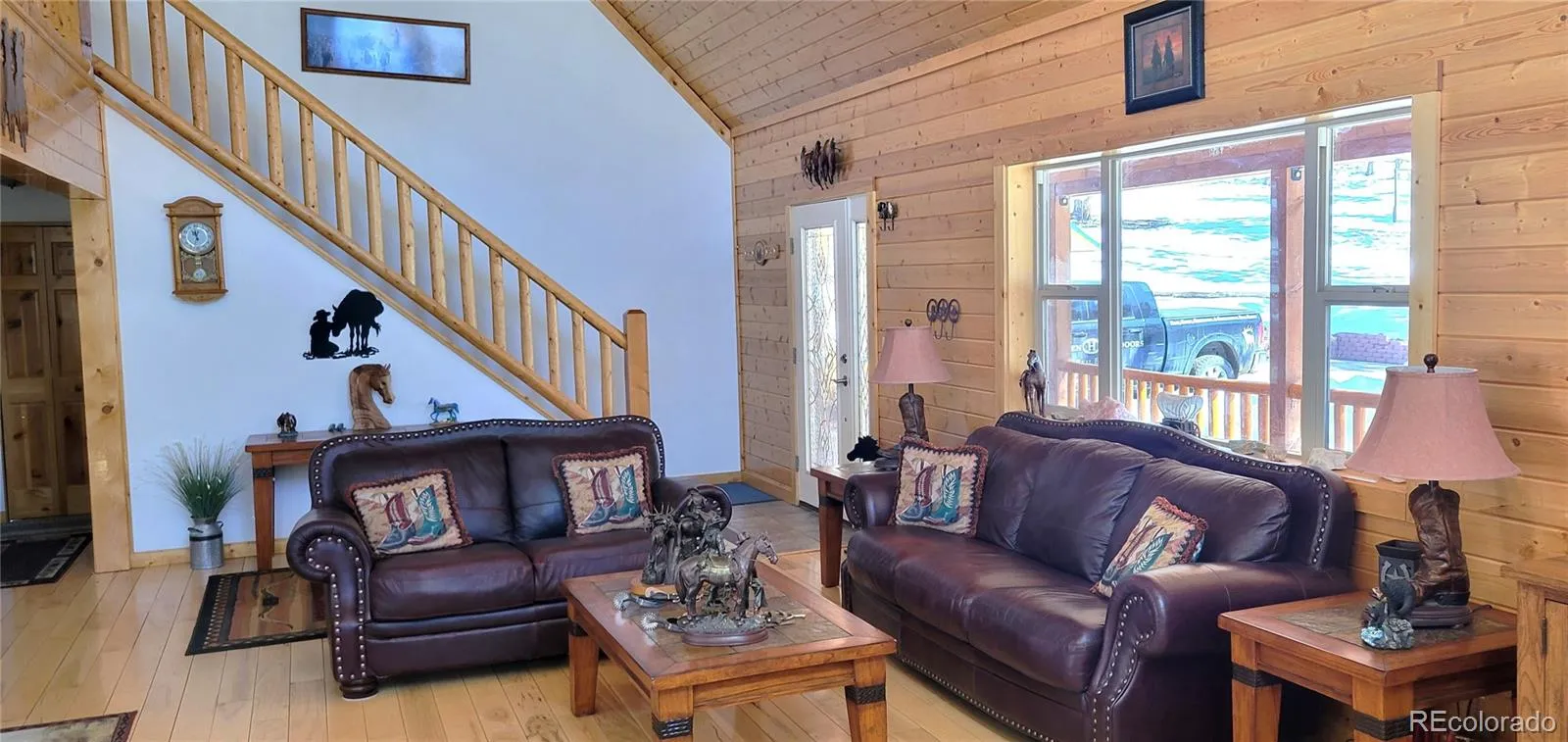 Take a look at the Rockin Horse Ranch, located near the end of the road in one of Guffey’s most friendly subdivisions. Featuring a 3486 square foot, 5-bedroom custom home and a 2160 square foot, 6-stall horse barn with fully insulated workshop. This fully fenced wooded property with a stream is perfect for horses. Add access to the stocked community fishing pond and the friendly neighborhood and you will feel right at home. The Rockin Horse Ranch sits on 38 acres in the Peak and Ponds Subdivision, which features 6 acres of common area including a stocked fishing pond. The property is mostly wooded and has a small stream running along its front edge. The 5-bedroom custom home features alder cabinets, hickory flooring, and T&G ceilings for the complete mountain home feel. The full floor to ceiling wall of windows providing amazing views as well as the southern exposure to take advantage of the winter solar gain to reduce heating costs. This large home has an excellent layout for a large family or just space for entertaining many guests. The upper level features a large loft for entertaining and relaxing and a well sized bedroom with private deck. The main level consists of the main living floor with kitchen, dining area, 2 bedrooms, living room and just out the door is the wrap around deck for your outdoor living needs. The large walk-out basement allows for guest privacy as well as easy access to the rest of the property. The 2160 square foot barn features 6 elegant horse stalls with ample storage for feed above the stalls. Nearly half of the barn has been developed into a fully insulated workshop with ample space for all your projects and 220 watt electric to power your tools. Both sides of the barn have covered space for storage of equipment or additional animal space.
