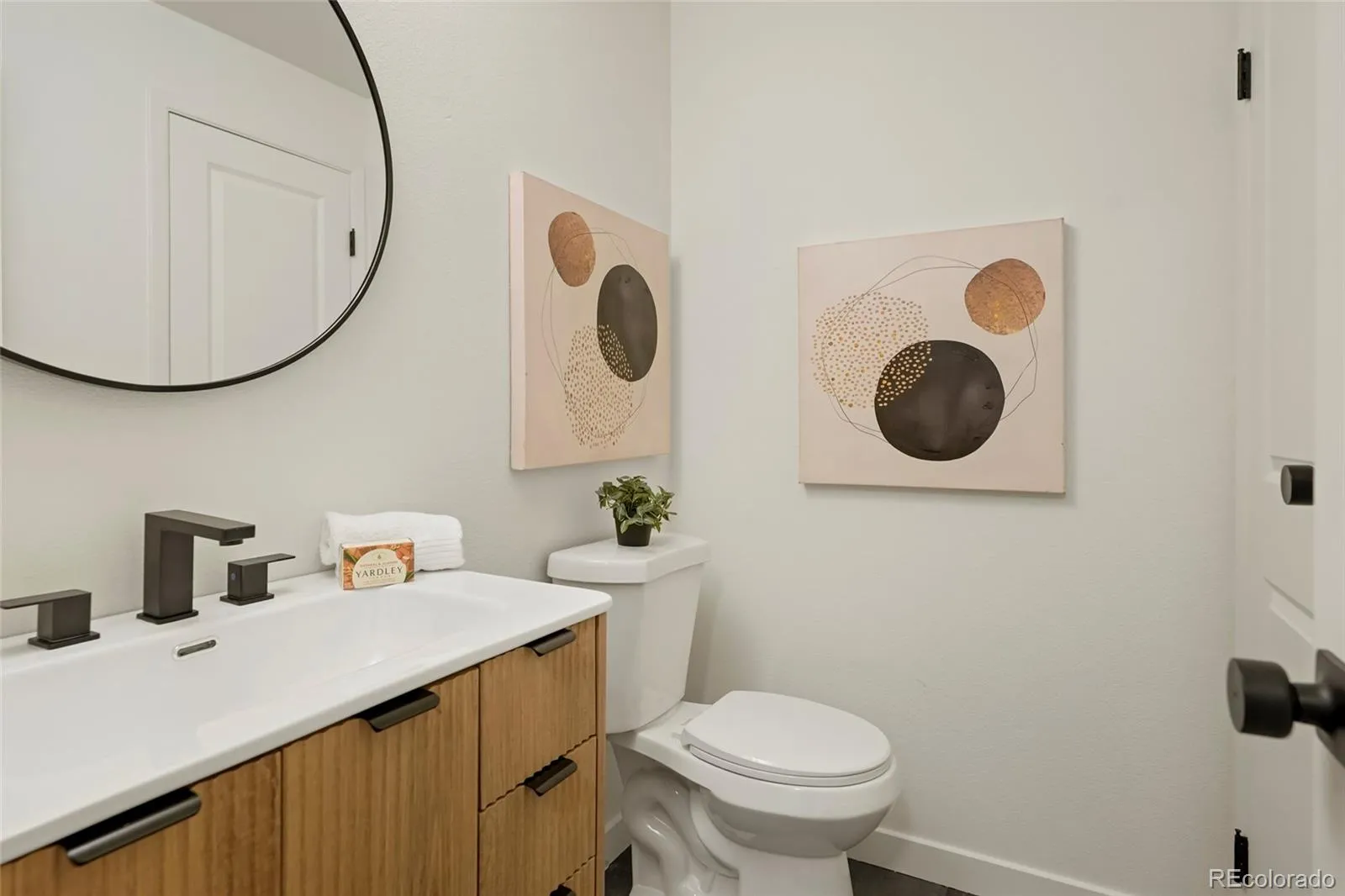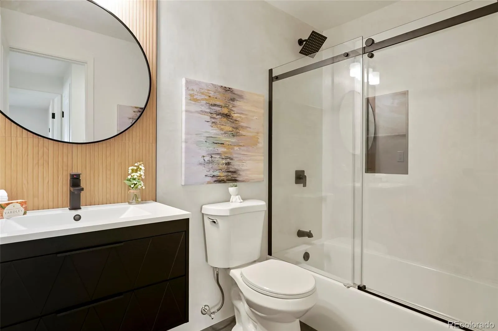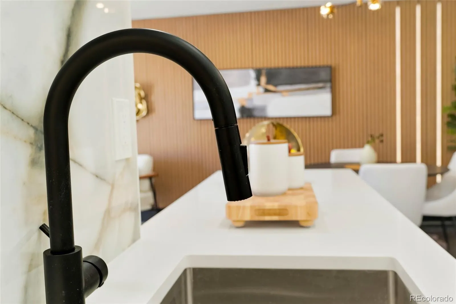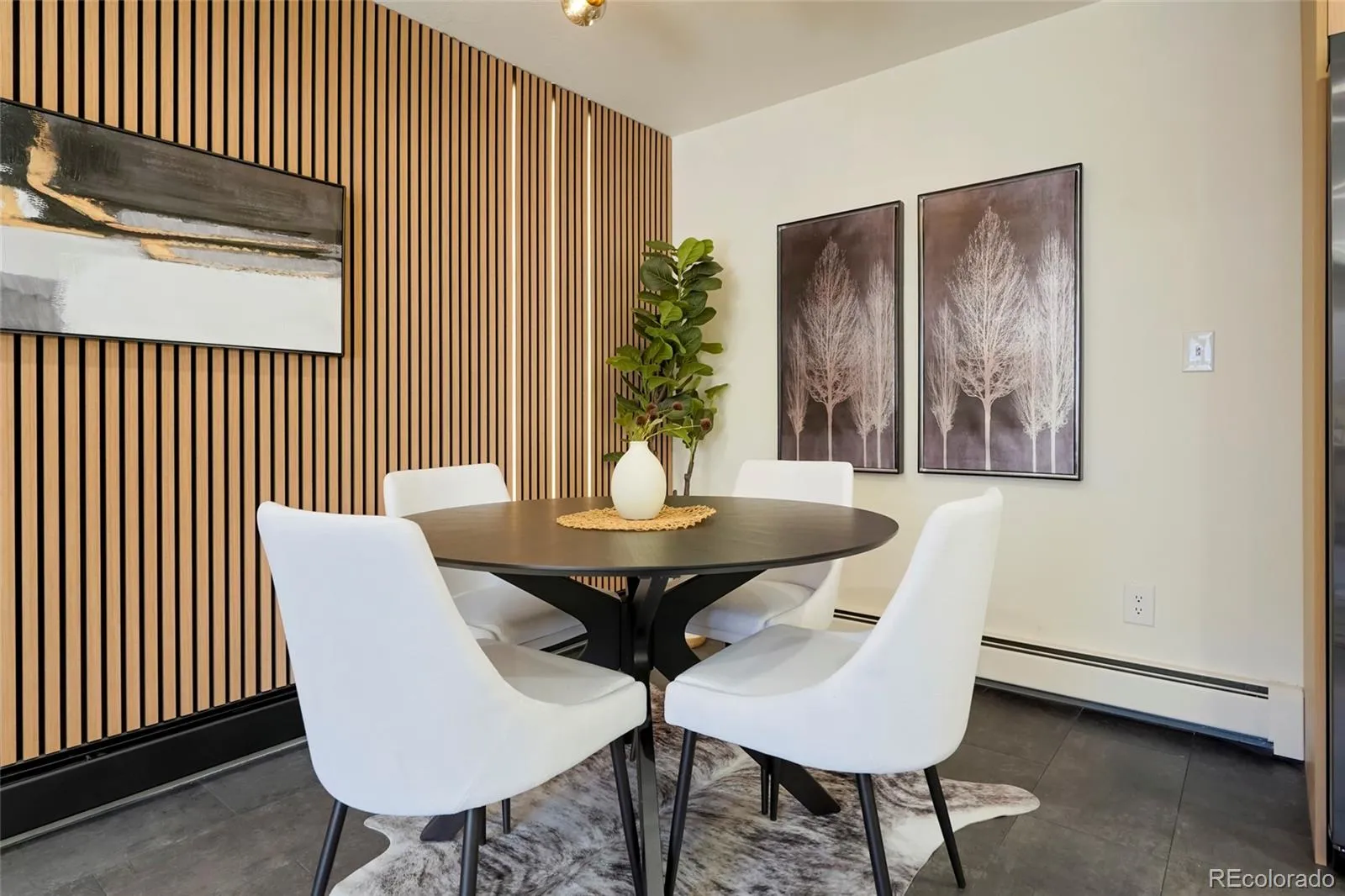 Step into modern living! Don’t miss out on this stunning updated townhome with convenient access to a range of amenities. Custom features abound throughout beginning with a stunning accent wall that runs the length of the condo incorporating a porcelain marble fireplace with electric insert and slat wall with accent lighting. Outlets have been placed to accommodate 2 different tv mounting locations. The kitchen features modern euro style cabinets, a waterfall countertop and amazing accent lighting on the top of the cabinets, the countertop work surface and even along the toe kick. New black stainless appliances accent the space with the seamless 1 piece porcelain backsplashes pulling it all together and making clean up a breeze. The washer and dryer areas have been neatly tucked behind 2 bifold doors. The staircase features mid-mod styled wood slats with a soaring wallpaper accent wall. Upon entering, cozy nook is the perfect place to remove your shoes, hang your jacket and keep other items in quick reach when heading out. Dark slate LVP flooring anchors the space and is completely waterproof and mops and cleans easily. Upstairs you’ll find your spa inspired bathroom complete with floating vanity, wood accent tile and sleek microcement shower surround. The unit includes a private attached garage space and an outdoor patio area thats shaded in the afternooon and is great for relaxing or opening the doors and letting the fresh air in. Mere steps from your unit is the expansive Highline Canal, perfect for daily exercise or access on a bike to the entirety of the Denver path network. You’re also a 10 minute drive to Anschutz. New garage door to be installed. Agent owner.