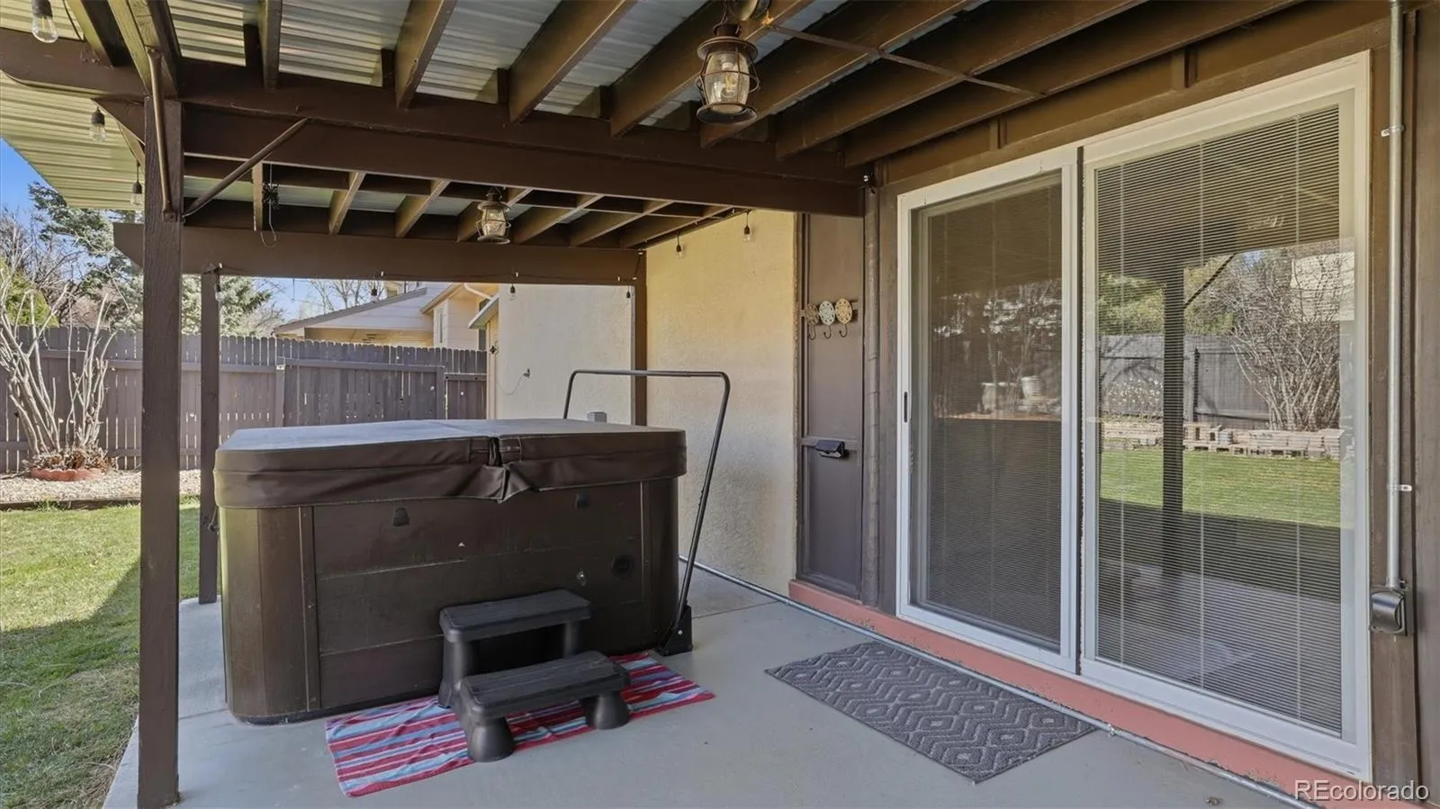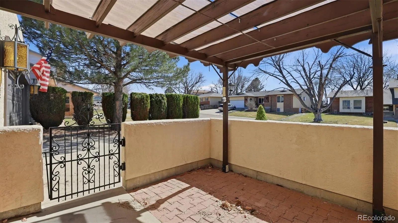 Beautifully maintained Santa Fe–style tri-level home on a spacious 0.21-acre corner cul-de-sac lot in the desirable Pueblo community of University Park and Hills. Full of charm and character, this 3-bedroom, 2-bath residence offers 2,081 square feet of thoughtfully designed living space for comfortable, easy living. The inviting front yard features a private enclosed patio with pergola, ideal for enjoying Colorado’s sunshine and fresh air. Inside, a tiled foyer welcomes you and leads to a tranquil sunroom with sliding glass doors opening to a covered patio with hot tub, creating a seamless indoor-outdoor retreat. Central air and heating provide year-round comfort. The upper level showcases a bright, open layout filled with natural light from expansive windows. The living room, complete with a ceiling fan, flows effortlessly into the dining area and kitchen, perfect for both entertaining and everyday living. The dining area features beautiful wood cabinetry and convenient kitchen access for easy serving and cleanup. The kitchen offers white cabinetry, generous counter space, and appliances including a smooth-top range, microwave, dishwasher, and side-by-side refrigerator. The primary bedroom serves as a peaceful retreat with a lighted ceiling fan, neutral carpet, mirrored wardrobe closet, and private access to the full hall bath with dual vanities and a tiled tub/shower. The lower level features a convenient laundry room with washer & dryer, & a cozy family room with LVP flooring, a lighted ceiling fan, wet bar, and a charming wood-burning fireplace with brick surround and raised hearth to cozy up on chilly evenings. 2-car garage with door opener. The spacious fenced backyard features a sprinkler system, storage shed, covered patio with hot tub, & an expanded brick patio ideal for outdoor dining & weekend BBQs. There’s also room for RV or small boat storage. Don’t miss this exceptional opportunity to make this delightful Santa Fe home your own.
