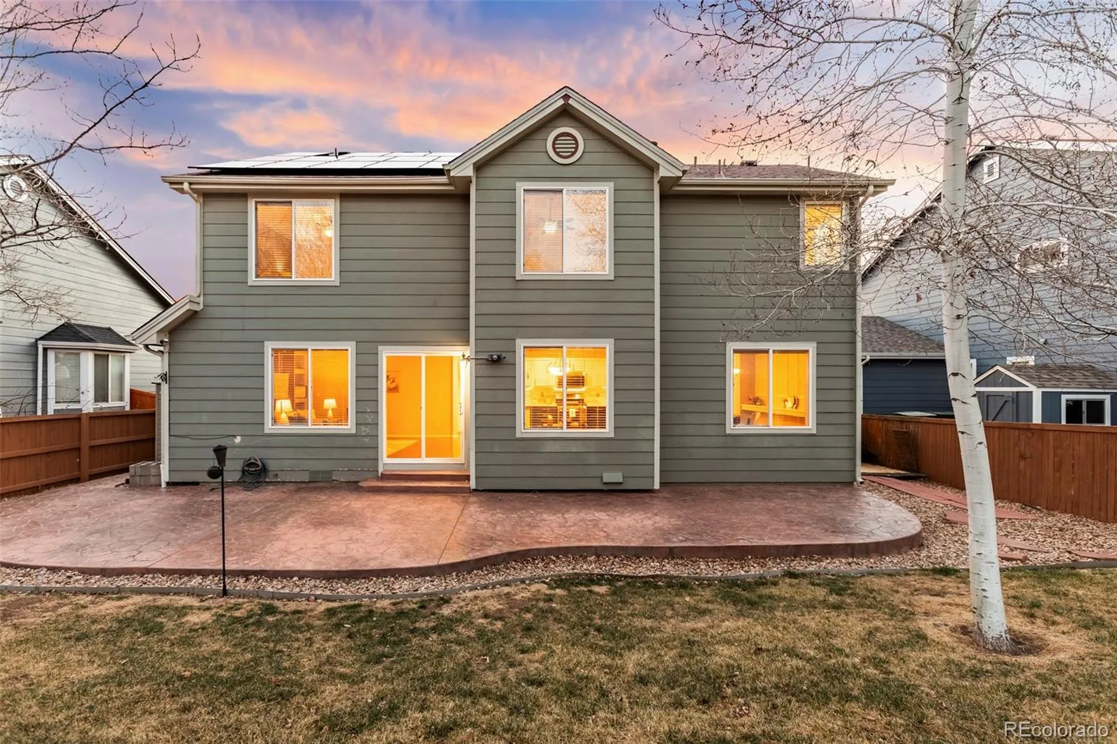 Be among the first to experience this designer-inspired 2-story, 4-bedroom, 3-bath home at the Open House this Saturday, March 21st from 1–3 PM—homes like this don’t stay on the market for long! Immaculate and truly move-in ready, this beautifully maintained home is located in a highly desirable neighborhood and offers a functional, well-designed layout with all four bedrooms conveniently located upstairs. The partially finished basement includes rough-in plumbing, providing endless potential for future expansion. The bright, well-appointed kitchen is a standout, featuring stainless steel appliances, a gas stove with center grill, double oven with convection, under-cabinet lighting, and stunning Cambria quartz countertops with a custom backsplash. The main level offers multiple inviting spaces, including a formal living room, dining room, breakfast nook, and an open family room with built-in shelving and new sound-dampening paneling (removable to reveal a gas fireplace). Upstairs, retreat to the spacious primary suite with a 5-piece bath, along with three additional bedrooms and a full hall bath. Thoughtful updates throughout the home include travertine tile flooring in bathrooms, upgraded carpet, manufactured hardwood floors, newer ceiling fans and lighting, Levelor blinds, 6-panel doors, and high-quality Benjamin Moore paint inside and out. Step outside to a beautifully landscaped backyard featuring a pressed concrete patio, custom garden boxes with drip system—perfect for growing your own vegetables—and convenient storage shed. A sprinkler system ensures easy maintenance. Additional highlights include solar panels (to be paid off at closing), surround sound wiring, and an oversized garage for extra storage. Enjoy all that this vibrant community has to offer, including parks, trails, and a neighborhood pool, all with easy access to I-25, E-470, and light rail. Ideally located near shopping, dining, hospitals, and walking distance to Stargate Charter School.