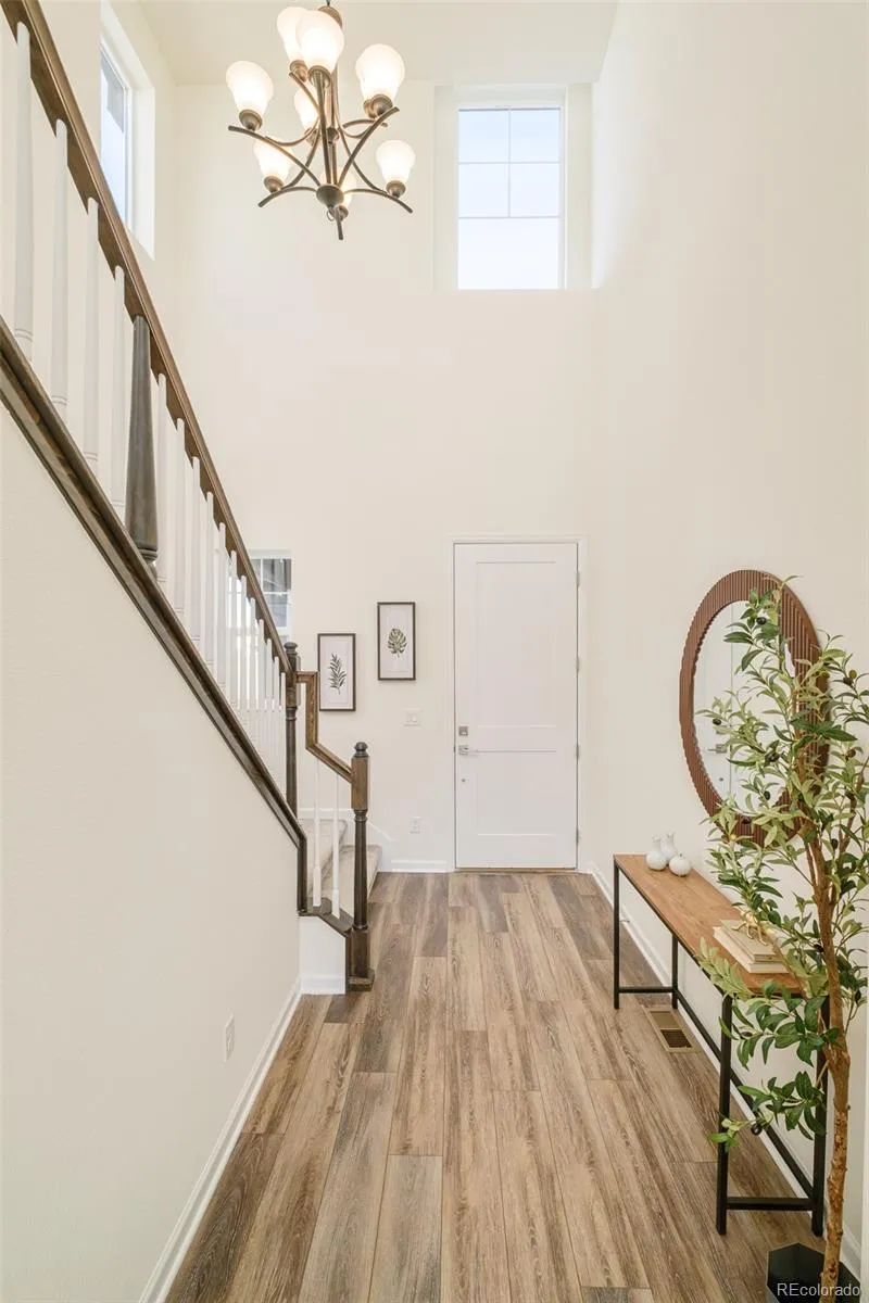Perfectly situated in the prestigious Montaine community, this quality-built Toll Brothers residence showcases an exceptional two-story design blending refined architecture with impressive, high-end finishes. From the moment you arrive, the dramatic entry and elegant staircase set the tone for the thoughtfully designed floor plan. Light-filled living spaces flow effortlessly, ideal for both everyday comfort and entertaining. The gourmet kitchen features a large center island, gas stovetop, double ovens, and abundant cabinetry—perfect for the home chef. The spacious primary suite offers a true retreat with dual his-and-her vanities and spa-like comfort. The finished basement expands the living space and includes a bedroom and full bathroom, ideal for guests or multi-generational living. Step outside to the serene patio and enjoy a private setting overlooking the greenbelt, natural open space, and scenic views. Additional highlights include owned active solar for energy efficiency. Residents of Montaine enjoy miles of trails, sweeping mountain views, and resort-style amenities, all just minutes from historic downtown Castle Rock, premier shopping, dining, and top-rated schools. This is a rare opportunity to experience luxury living in one of Castle Rock’s most sought-after neighborhoods.