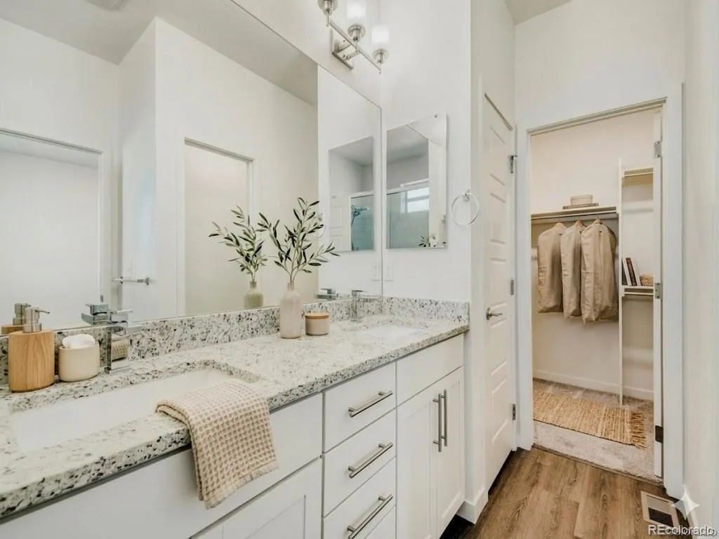 Impeccable Original Owner End Unit Townhome!! $17,000.00 Grant Available!! Full View Garage Door Opening To Patio / Exposed Steel Beam / Pendant Lights / Primary Suite / Walk-In Closets / Recessed Lights / Luxury Vinyl Plank Floors / 10′ Ceilings / Quartz & Granite Counter Tops / 42″ Shaker Cabinets / Kitchen Island / 5 Burner Gas Stove / Tile Backsplash / KitchenAid Gun Metal Appliances / 8′ Garage Door / Ceiling Fans / Tile Floors / 5 Panel Doors / Chrome Hardware / Frameless Glass Shower / Chrome Hardware / 42′ Cabinets / Pantry / Pedestal Sink / Enclosed Patio Area / Full Size Washer & Dryer / Built In Work Bench, Storage Shelves, 220V & Water Spigot in Garage!! Great Highway Access!! Close To All Amenities!! Neighborhood Dog Park, BBQ Area & Garden!! Location!! Location!! Location!!