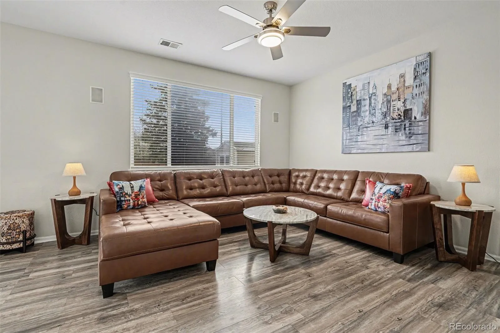 New opportunity in Buffalo Run! This charming 3-bedroom, 3-bath corner-lot home offers 1,782 finished sq ft, a functional two-story layout, spacious living and dining areas, and a cozy fireplace that makes the main level feel warm and inviting. Upstairs, the private primary suite includes an en-suite bath, with two additional bedrooms perfect for guests, office space, or everyday flexibility. Enjoy the fenced backyard and patio, ideal for relaxing, entertaining, or pets. Hot tub/Spa included. Complete with central A/C, an attached 2-car garage, and a convenient location near parks, golf, shopping, and commuter routes, this home offers great value in a desirable neighborhood. Come see all Buffalo Run has to offer!