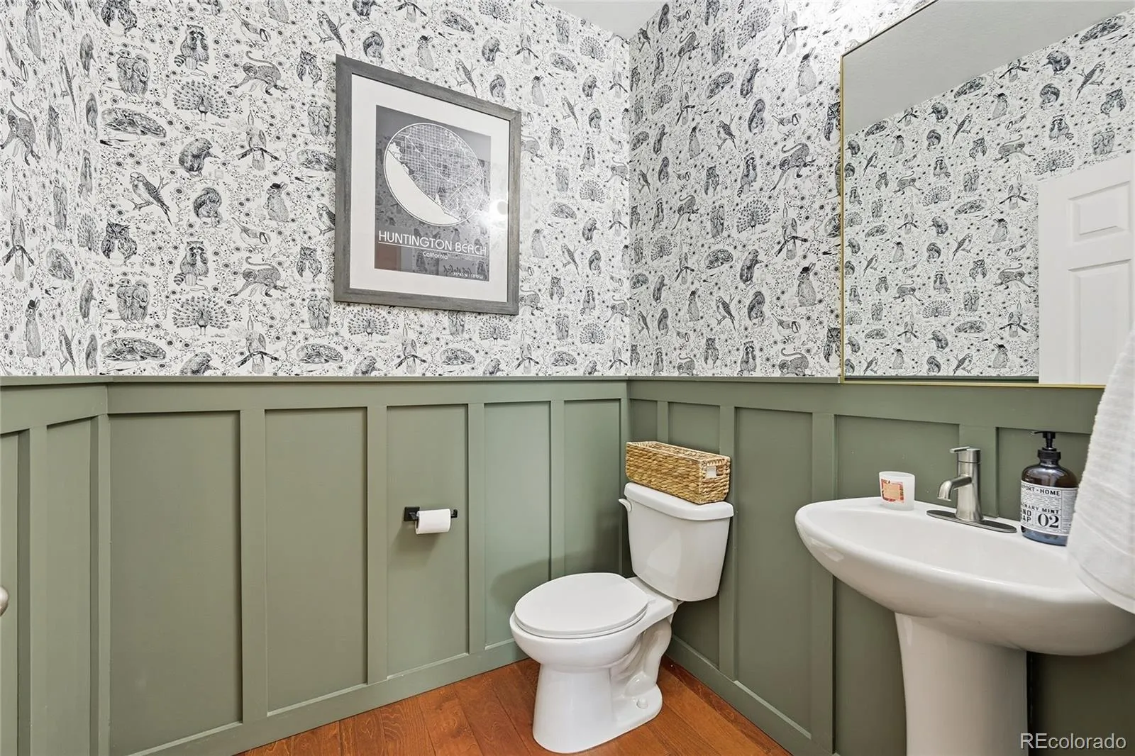 Upstairs, the spacious primary suite (16.8′ x 16′) features a large walk-in closet (11’10” x 5’6″) and private bath. Two additional bedrooms and a full bathroom complete the upper level, along with a conveniently located laundry area tucked away from the bedrooms for added functionality.