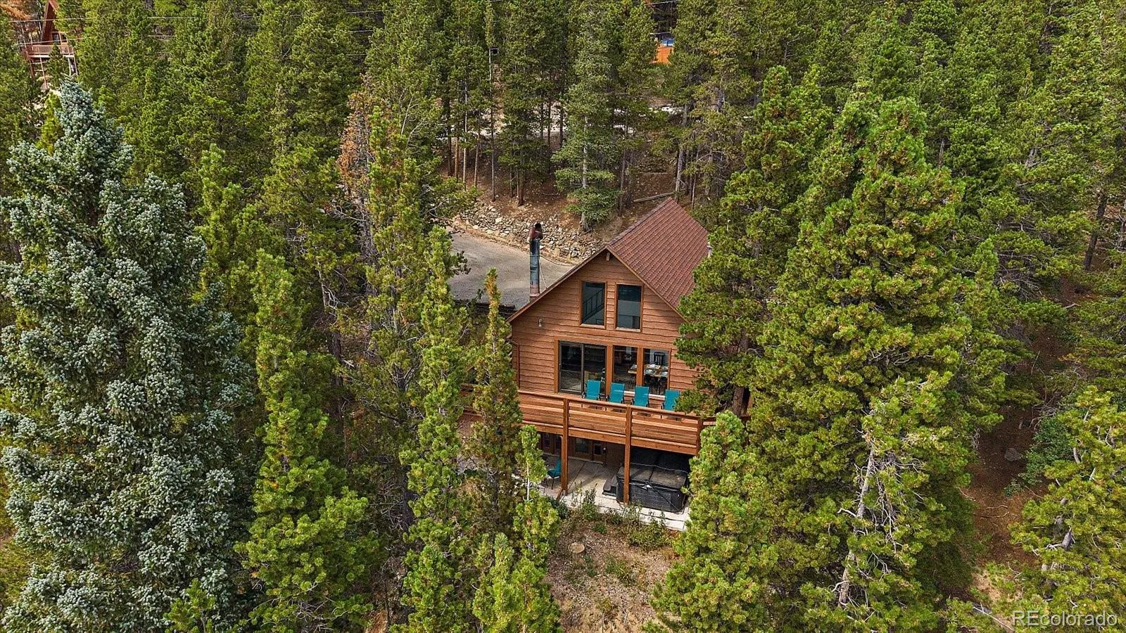 Welcome to your private mountain retreat! Nestled among towering pines with sweeping forest views, this charming cabin blends rustic character with modern comforts. From the moment you arrive, the peaceful setting sets the tone—serene, secluded, and just steps from nature’s playground. Inside, the vaulted great room features a dramatic wood-beamed ceiling, floor-to-ceiling windows that flood the space with natural light, and a stunning stone fireplace perfect for cozy evenings. The open layout flows seamlessly into the dining area and updated kitchen, complete with sleek cabinetry, granite counters, and stainless steel appliances. With multiple bedrooms—including a loft-style primary suite—there’s plenty of room for family and guests. The rail leading to the loft has recently been updated and is not reflected in the photos. The lower-level rec room invites fun and relaxation with space for games, media, and walk-out access to the hot tub patio. Outdoors, a wraparound deck is ideal for morning coffee, dining under the trees, or stargazing on crisp Colorado nights. Adventure and convenience are never far—just 25 minutes to the quaint shops and dining of downtown Idaho Springs, 40 minutes to Loveland for winter skiing, and about an hour to world-class terrain at Winter Park. If outdoor adventure is not your style, head on over to Black Hawk or Central City and give the casinos a try. As a homeowner in St. Mary’s, you’ll also enjoy access to two private neighborhood ponds, perfect for fishing and summer afternoons for an annual fee. The home is being offered fully furnished, for an additional fee, so whether a full-time residence or weekend escape, this mountain home offers the perfect balance of comfort, character, and Colorado adventure.