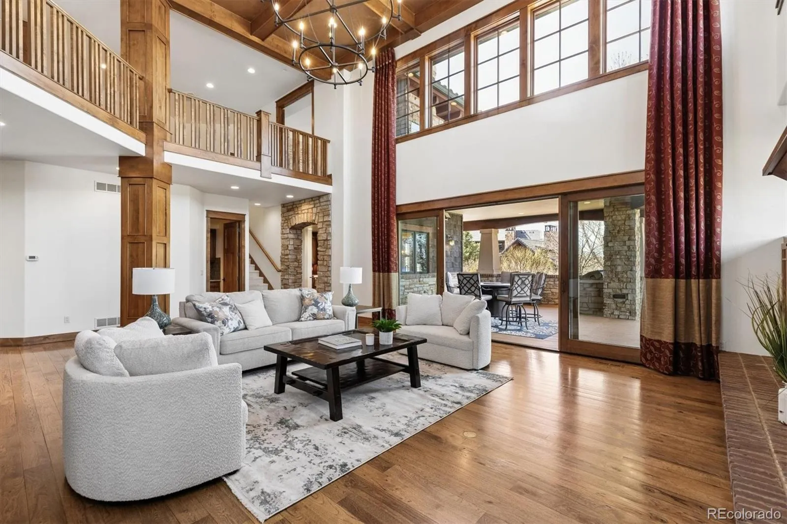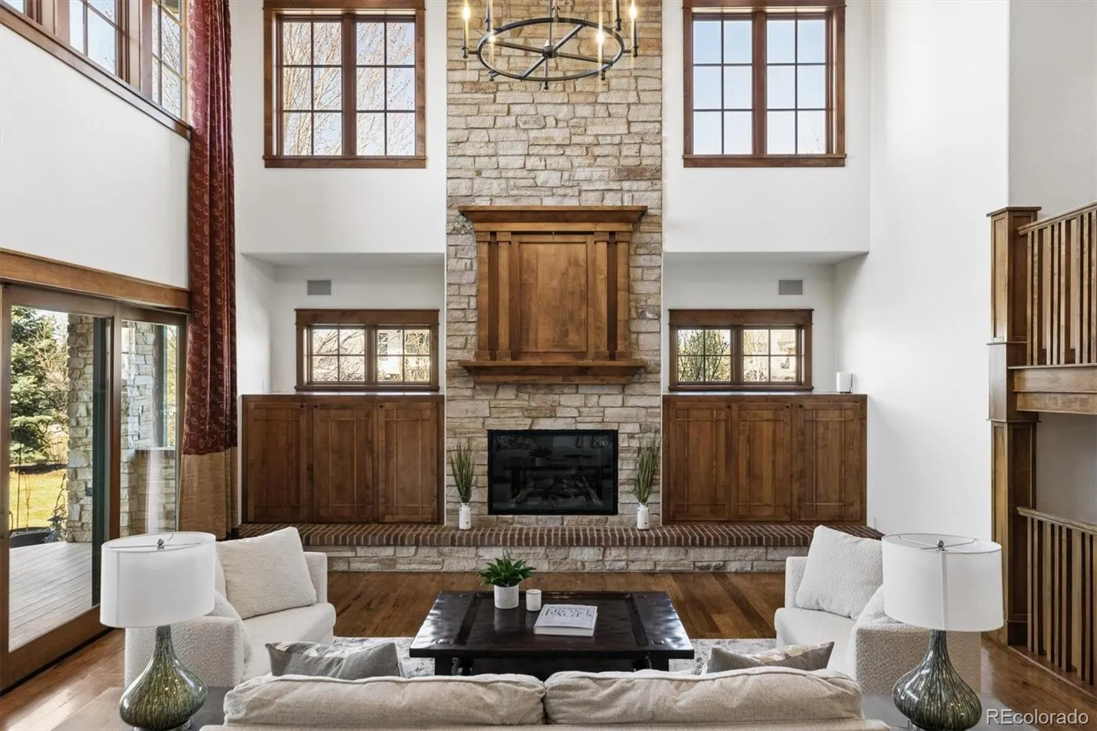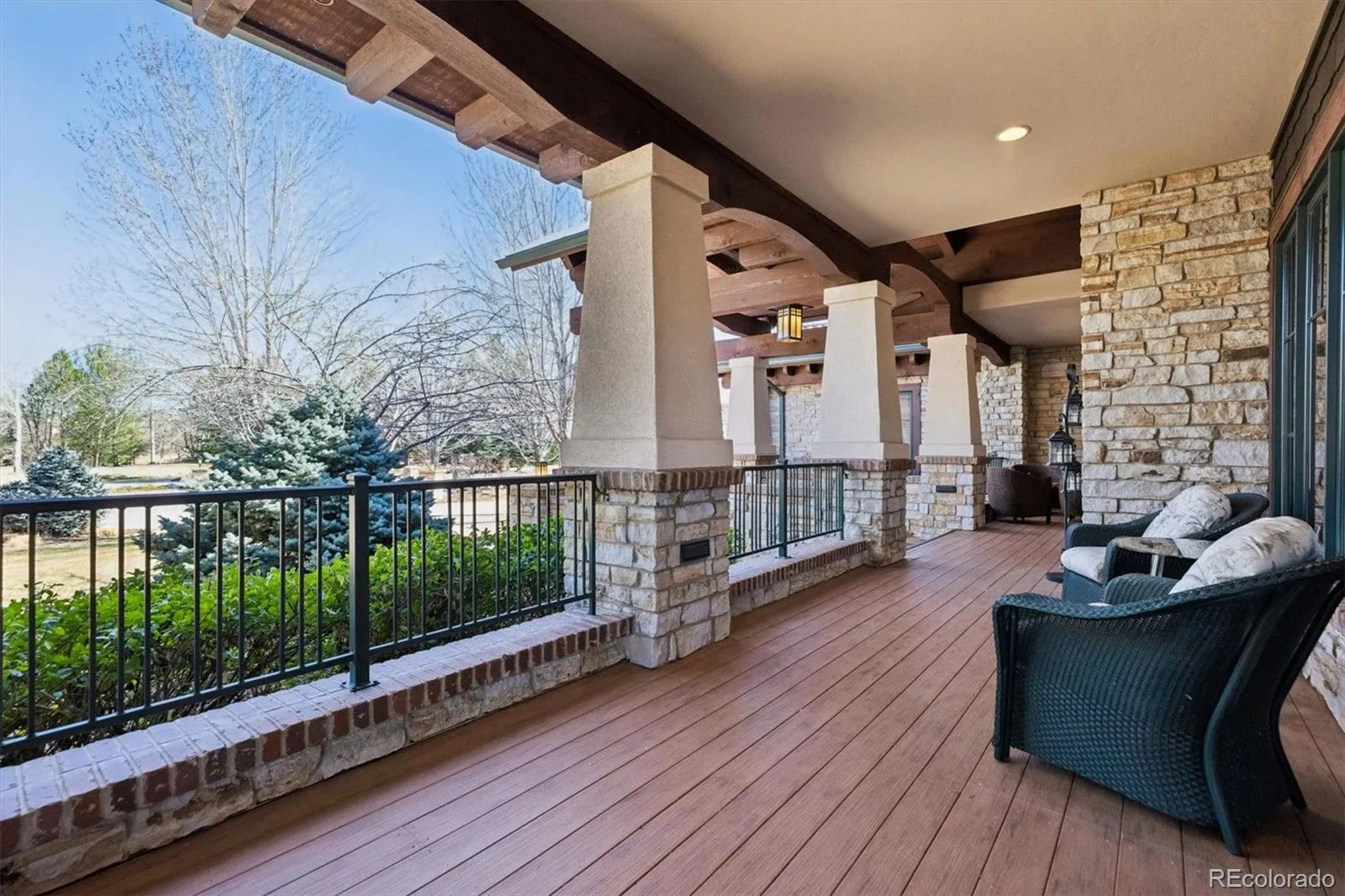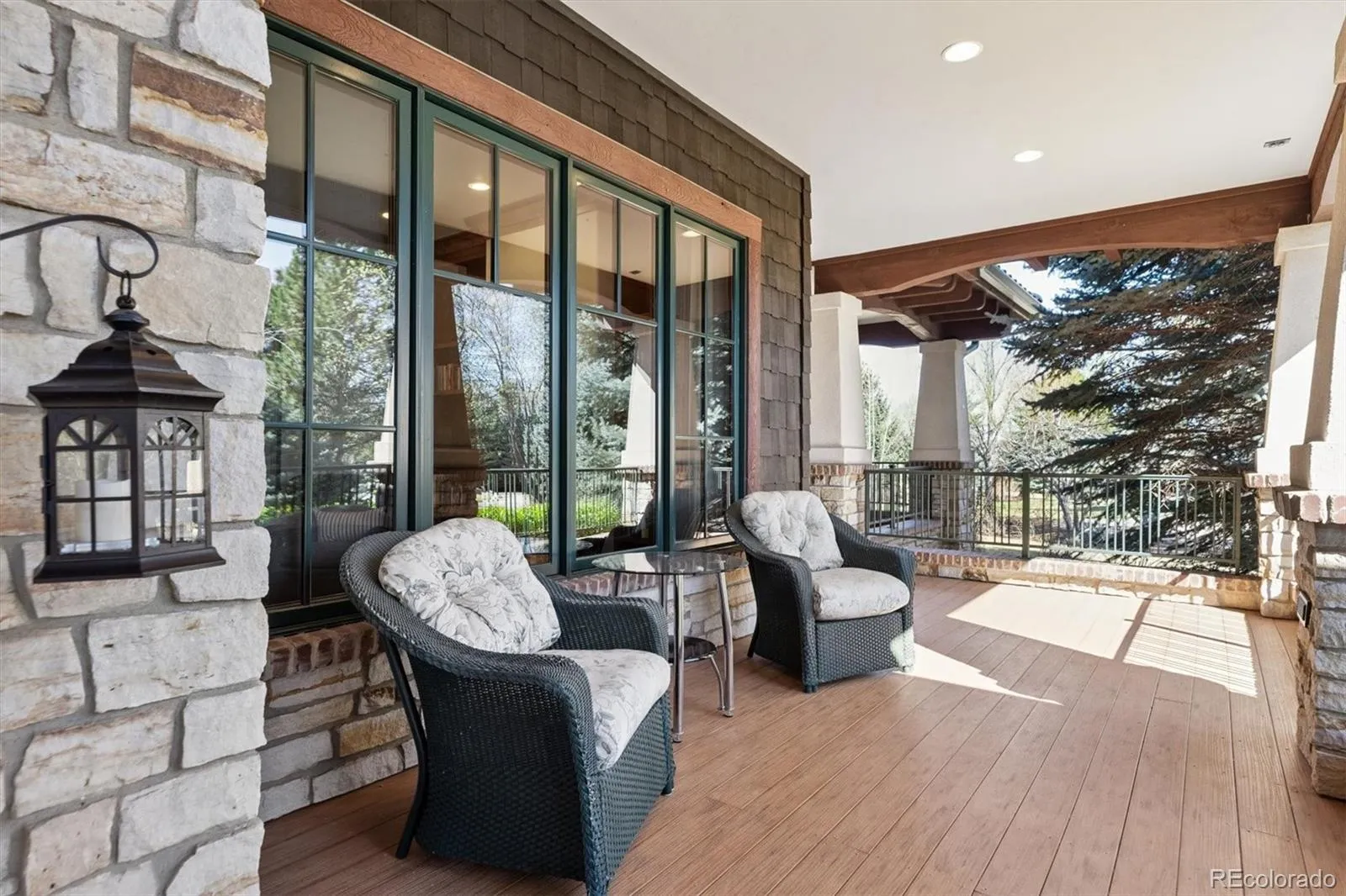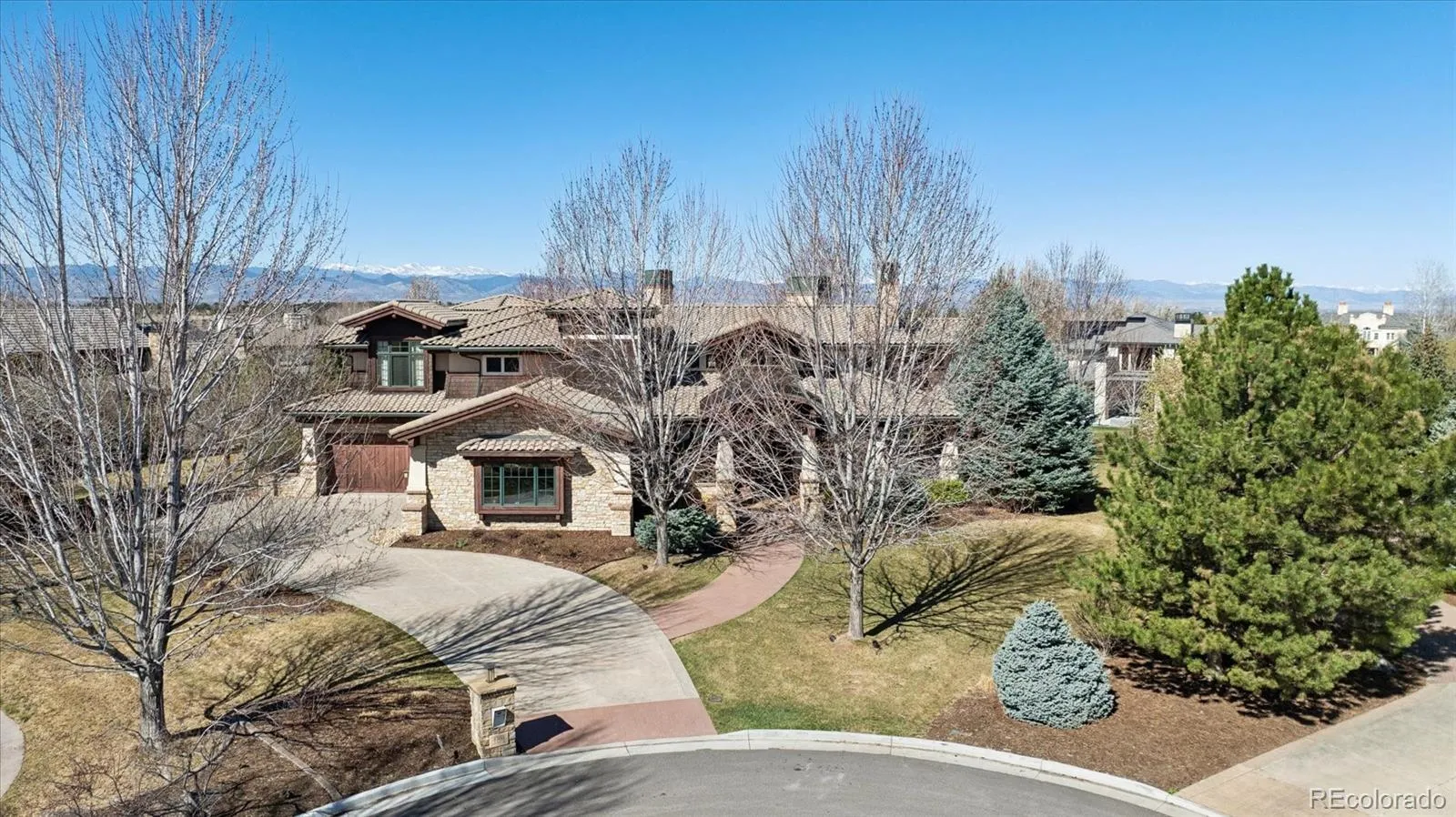 From the moment you arrive, you’re welcomed by impeccable curb appeal—rich wood accents, stone detailing, and a gracious front porch that sets the tone for the elegance within. Inside, the home unfolds with an open, light-filled floor plan featuring soaring ceilings, wide-plank hardwood floors, and expansive windows that perfectly frame the stunning Front Range vistas. The gourmet chef’s kitchen is the heart of the home, complete with high-end appliances, custom cabinetry, and a generous center island—ideal for both everyday living and entertaining. A cozy yet refined living space anchored by a gorgeous fireplace and soaring ceilings creates a warm, inviting atmosphere. The upper-level primary suite is a private retreat with its own balcony with exterior fireplace offering serene mountain views, a spa-inspired bath, and a spacious walk-in closet. The other upper bedrooms are generously sized, each with en-suite bath and thoughtfully designed with comfort and privacy in mind. Step outside to a number of decks and a beautifully landscaped backyard oasis, where you can unwind or entertain while enjoying panoramic sunsets over the mountains. Whether gathered around the outdoor living spaces or relaxing in the peaceful surroundings, this home captures Colorado living at its finest. Located within one of Greenwood Village’s premier communities, residents enjoy access to scenic trails both in the neighborhood as well as the highline canal trail, open space, and top-tier amenities—all while being just minutes from shopping, dining, and top-rated schools. This is more than a home—it’s a lifestyle defined by luxury, privacy, and unparalleled natural beauty.