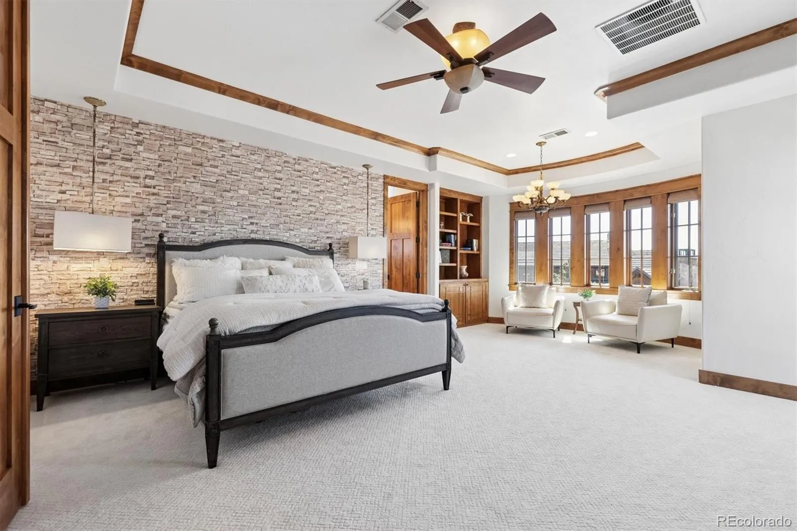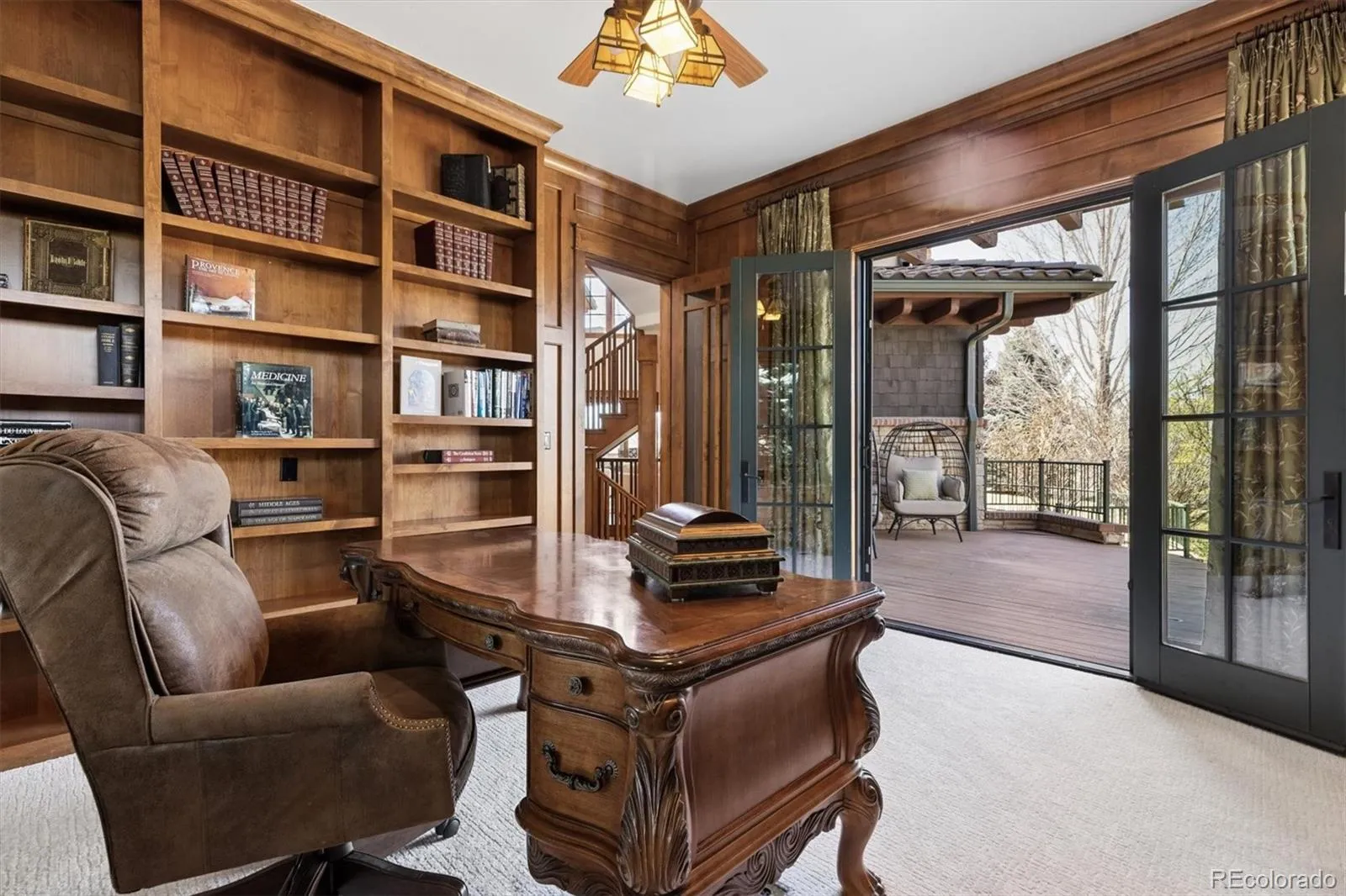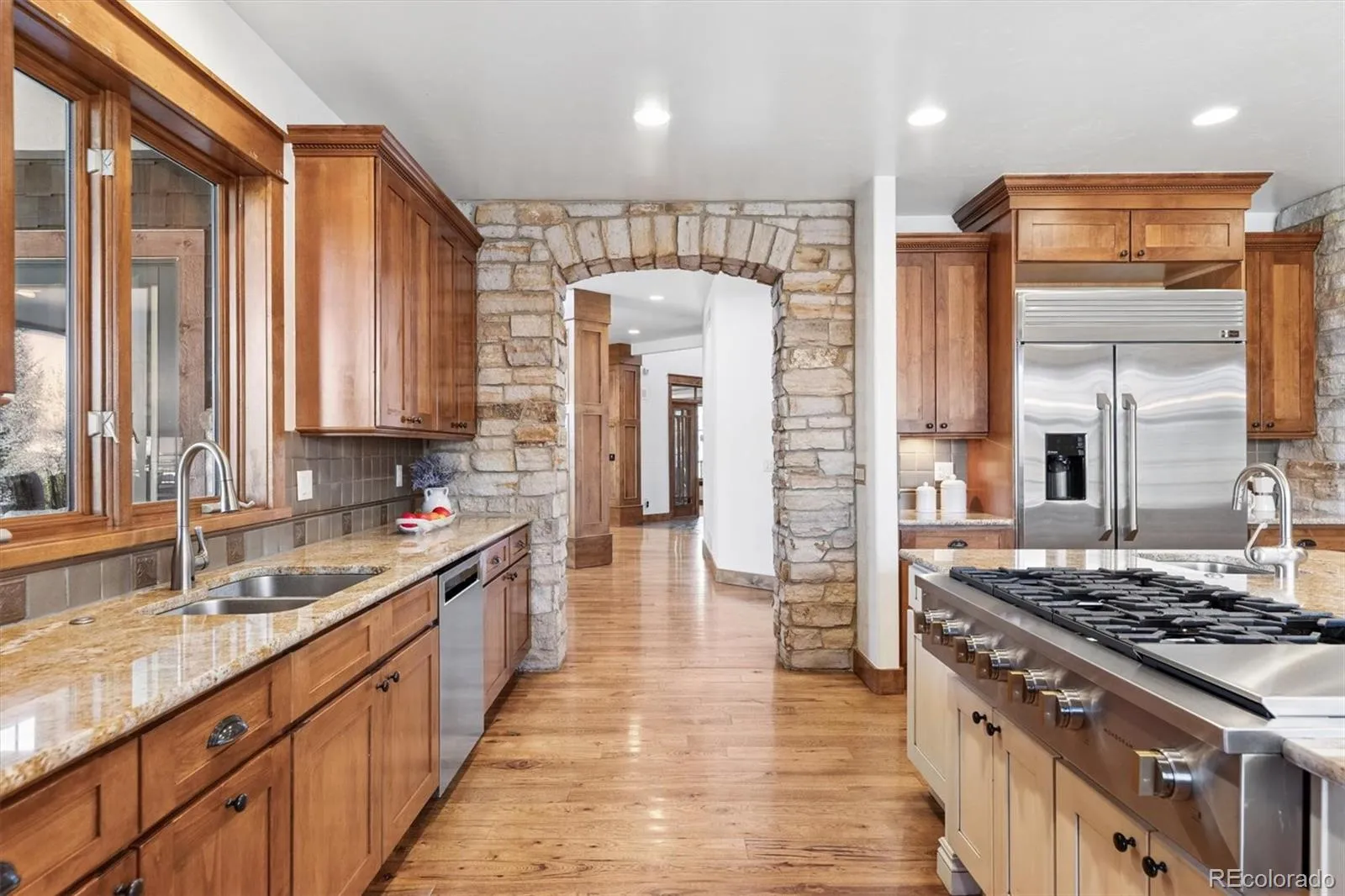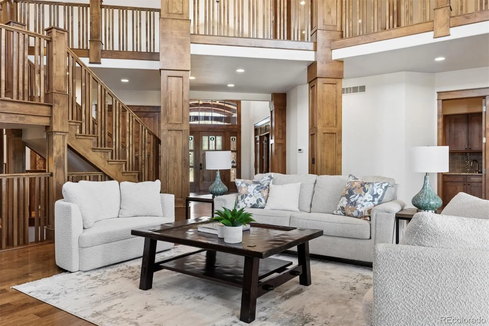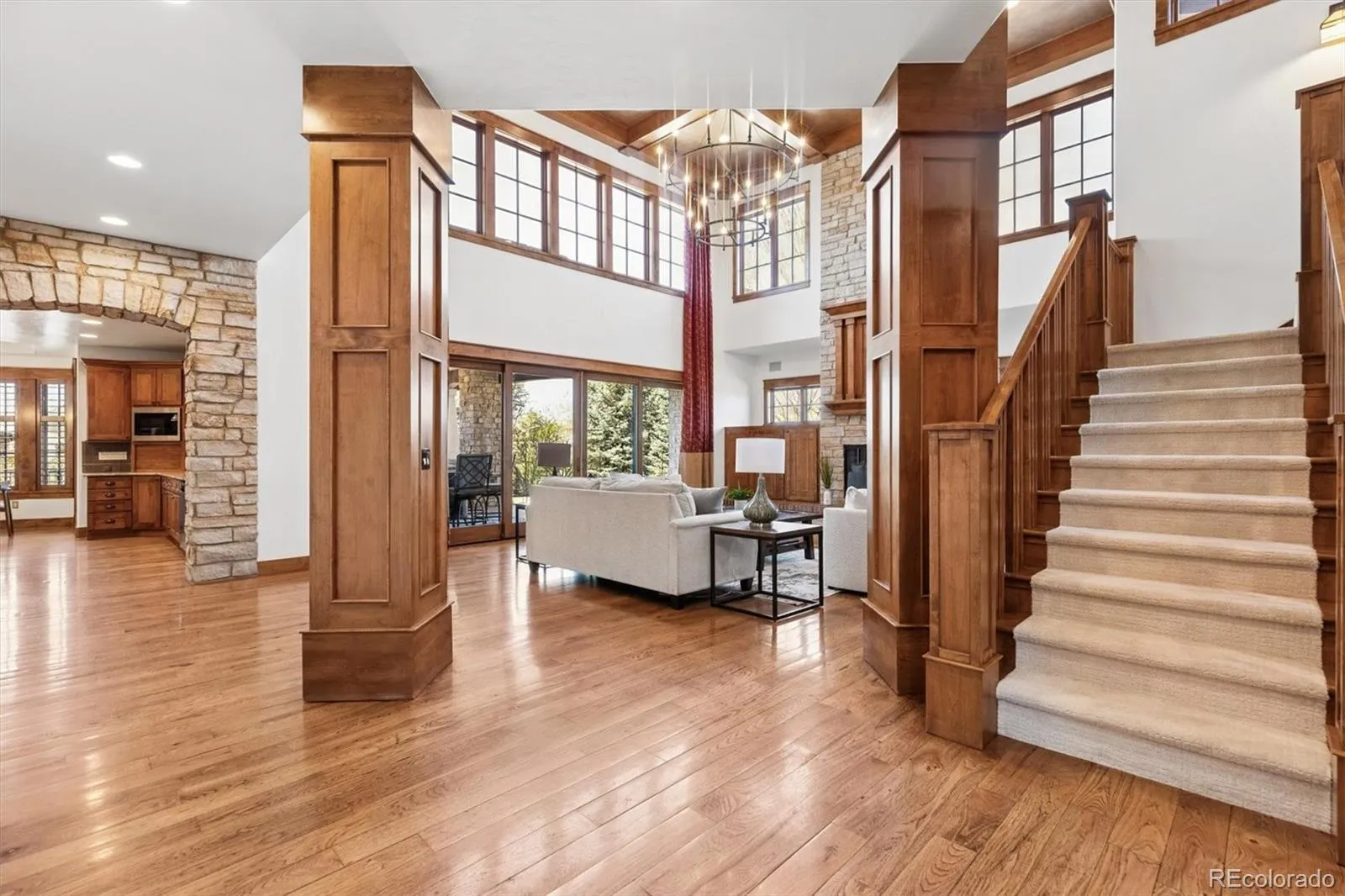 From the moment you arrive, you’re welcomed by impeccable curb appeal—rich wood accents, stone detailing, and a gracious front porch that sets the tone for the elegance within. Inside, the home unfolds with an open, light-filled floor plan featuring soaring ceilings, wide-plank hardwood floors, and expansive windows that perfectly frame the stunning Front Range vistas. The gourmet chef’s kitchen is the heart of the home, complete with high-end appliances, custom cabinetry, and a generous center island—ideal for both everyday living and entertaining. A cozy yet refined living space anchored by a gorgeous fireplace and soaring ceilings creates a warm, inviting atmosphere. The upper-level primary suite is a private retreat with its own balcony with exterior fireplace offering serene mountain views, a spa-inspired bath, and a spacious walk-in closet. The other upper bedrooms are generously sized, each with en-suite bath and thoughtfully designed with comfort and privacy in mind. Step outside to a number of decks and a beautifully landscaped backyard oasis, where you can unwind or entertain while enjoying panoramic sunsets over the mountains. Whether gathered around the outdoor living spaces or relaxing in the peaceful surroundings, this home captures Colorado living at its finest. Located within one of Greenwood Village’s premier communities, residents enjoy access to scenic trails both in the neighborhood as well as the highline canal trail, open space, and top-tier amenities—all while being just minutes from shopping, dining, and top-rated schools. This is more than a home—it’s a lifestyle defined by luxury, privacy, and unparalleled natural beauty.