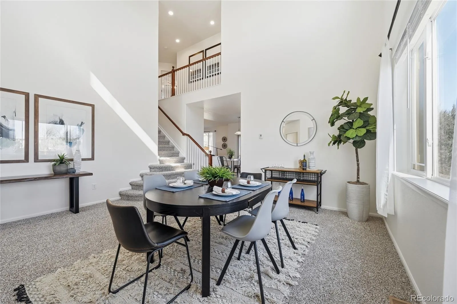 Welcome to 10104 Quintero Street-offering updated finishes, highly desireable floorplan, and access to outstanding neighborhood amenities. This home is set facing south on a spacious corner lot. The main entrway has a beautiful covered front wrap around porch with facing mountain views on the horizon. The entryway opens into a grand space with high ceilings and large windows, welcoming the morning light. This space can be a great for both a formal living and dining area. A dedicated main-floor office space provides flexibility for work and hobbies. The kitchen is well equipped with an eat in area in the center of the home, island, generous cabinet and countertop space, and windows overlooking the backyard. Addititional features include granite countertops, new stainless steel sink and faucet, and a full suite of new stainless steel GE appliances, creating a clean and modern focal point of the home. Tile flooring in the main and garage entryways adds durability and style in high-traffic areas. With 2,212 finished square feet and 4 upper level bedrooms, this floorplan will accommodate a variety of living needs. An unfinished basement with an additional743 square feet provides excellent potential for future expansion, with bathroom plumbing already roughed in. Updates include new exterior and interior paint, new carpet, LED lighting upgrades and more. Reunion residents have access to numerous metro district features, and it’s a pleasant walk to Southlawn Park, playground, and pool. The location also provides close proximity to Denver International Airport, major commuter routes, and more. Parks, trails, and open space can be found throughout the area. This home presents a well-rounded opportunity to own a thoughtfully updated home with room to grow in a connected and amenity-rich community.