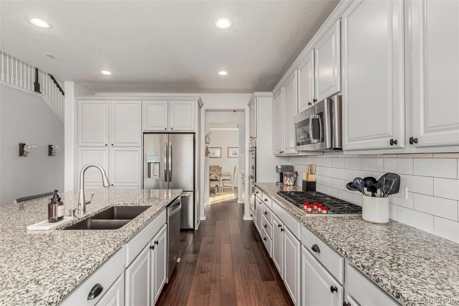 Step into a home that truly stands out!! Check out this fantastic 5 bed, 4 bath residence now for sale in the highly sought after Stepping Stone community just steps away from the community pool and playground! Absolute premium lot with best MOUNTAIN VIEWS on all the neighborhood. A stunning facade w/stone accents, 2 car garage, a size-able front yard w/natural landscaping, and a welcoming front porch are just the beginning. Come inside to discover a spacious living area w/ soaring vaulted ceilings, designer hardwood flooring, soft carpet in all the right places, neutral palette, and a fireplace to keep you warm & cozy. You’ll also find a formal dining room to entertain & delight your guests with! The gourmet kitchen is equipped w/everything the aspiring chef needs, ample cabinetry w/crown moulding, a butler’s pantry, granite counters, subway tile backsplash, recessed lighting, stainless steel appliances such as dual wall ovens, custom Wolf range, a center island w/a breakfast bar, and a oversized breakfast nook. The main floor primary suite showcases a walk-in closet and a lavish ensuite w/sliding barn doors plus dual vanities & a garden tub with huge newly updated dual shower. French doors open up to a cozy den, ideal for an office, play room, or reading space. Continue downstairs and into the gigantic basement great room equipped with built in bath shelving and pool table, where you can spend quality time w/friends & loved ones! Fully finished basement offers extra living space and tons of storage purposes. Also including a lovely backyard w/a covered deck newly finished turf and stunning Colorado Rocky Mountain View’s this home is a dream come true! Act now before it’s gone!