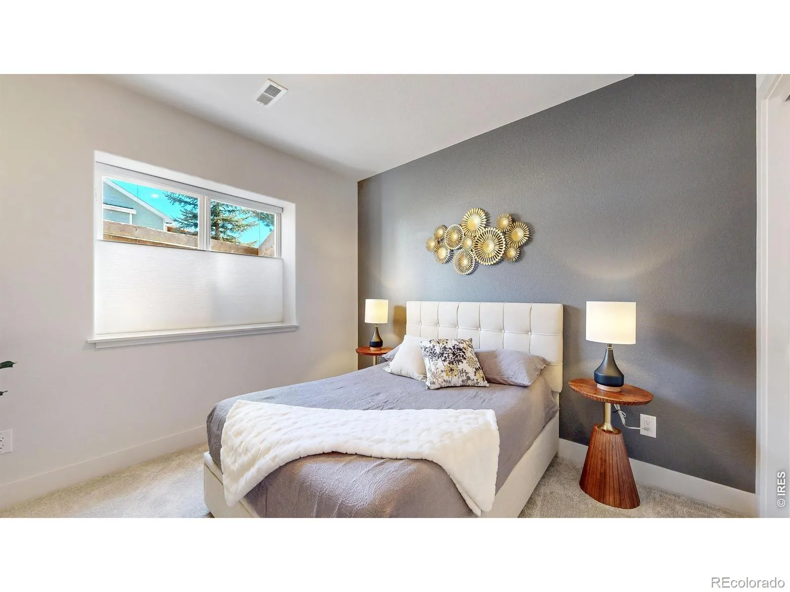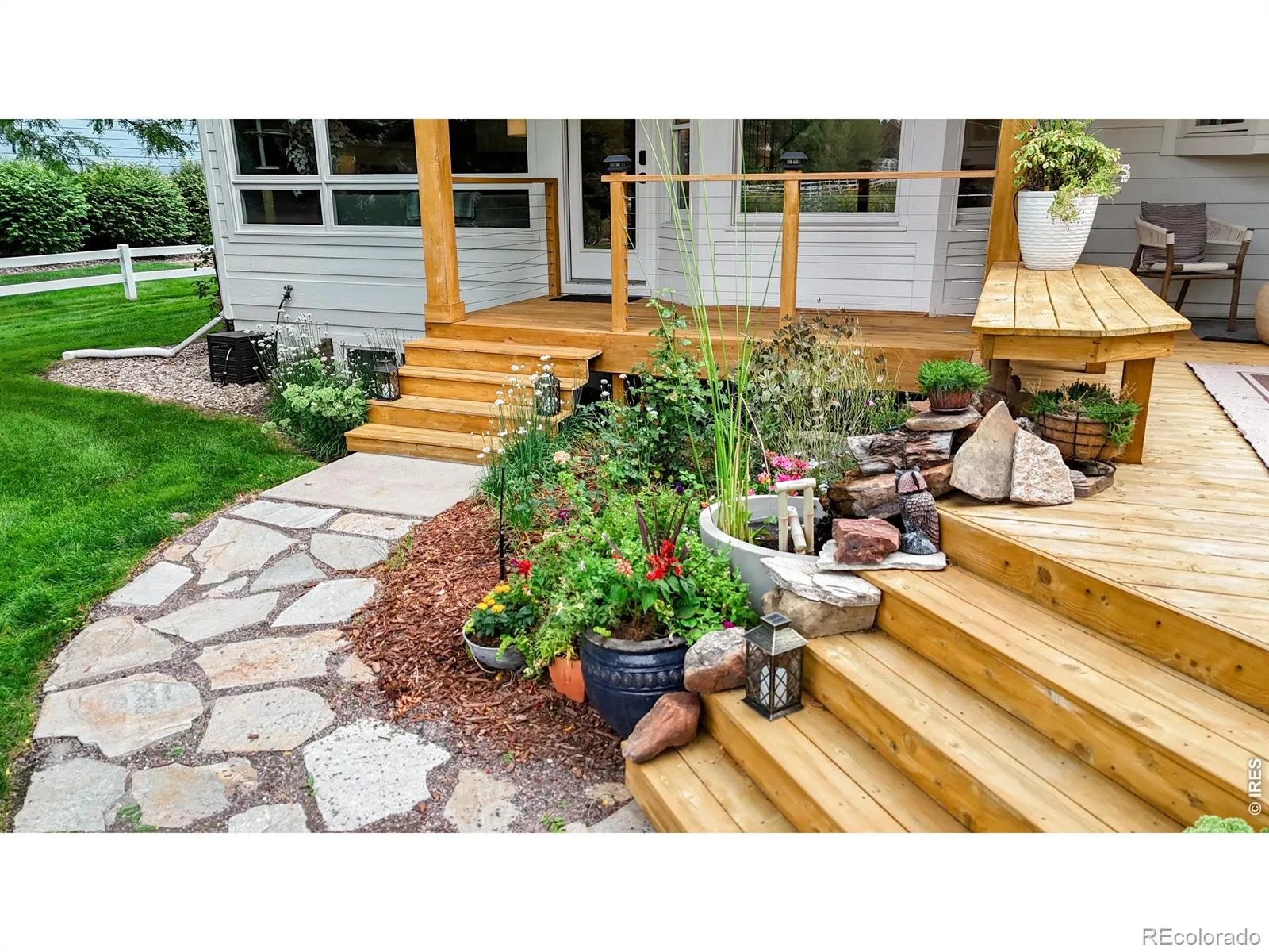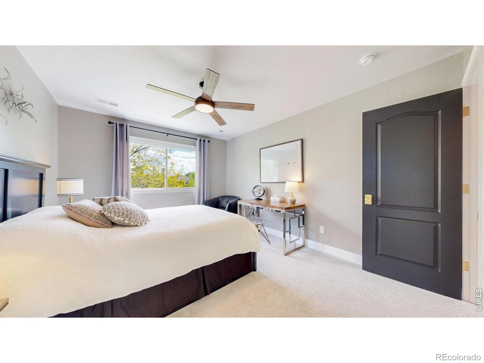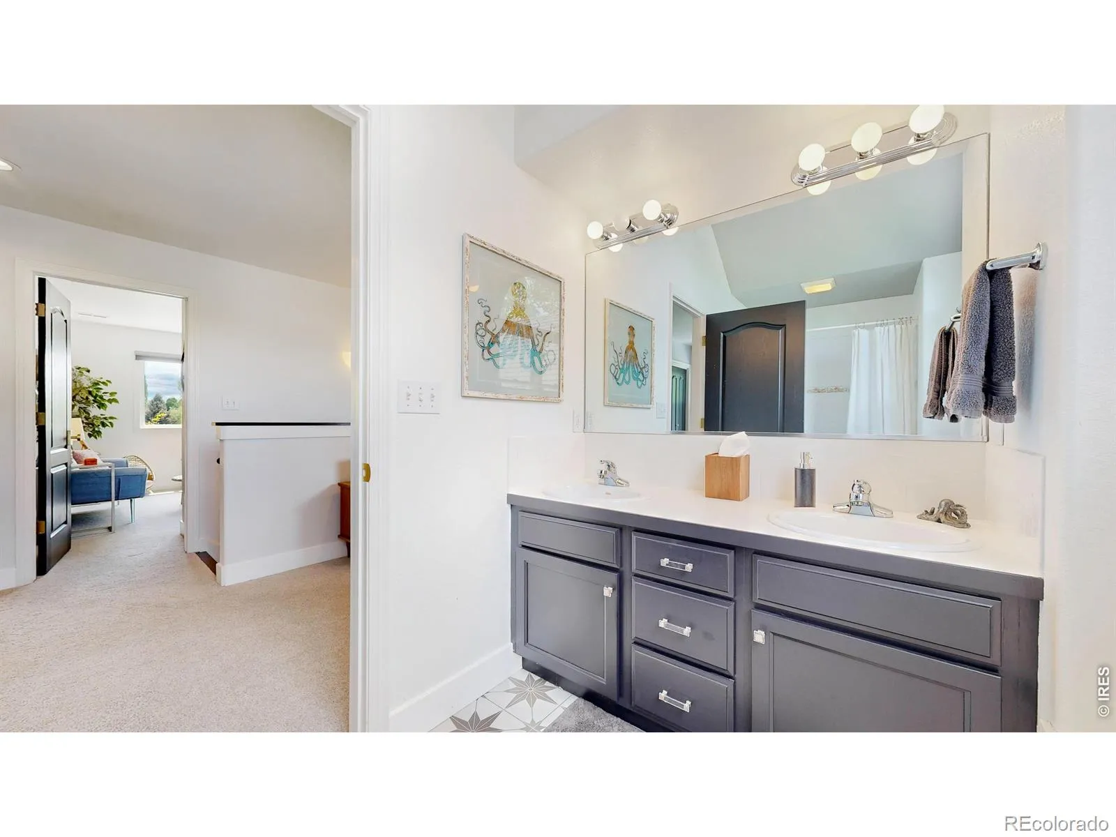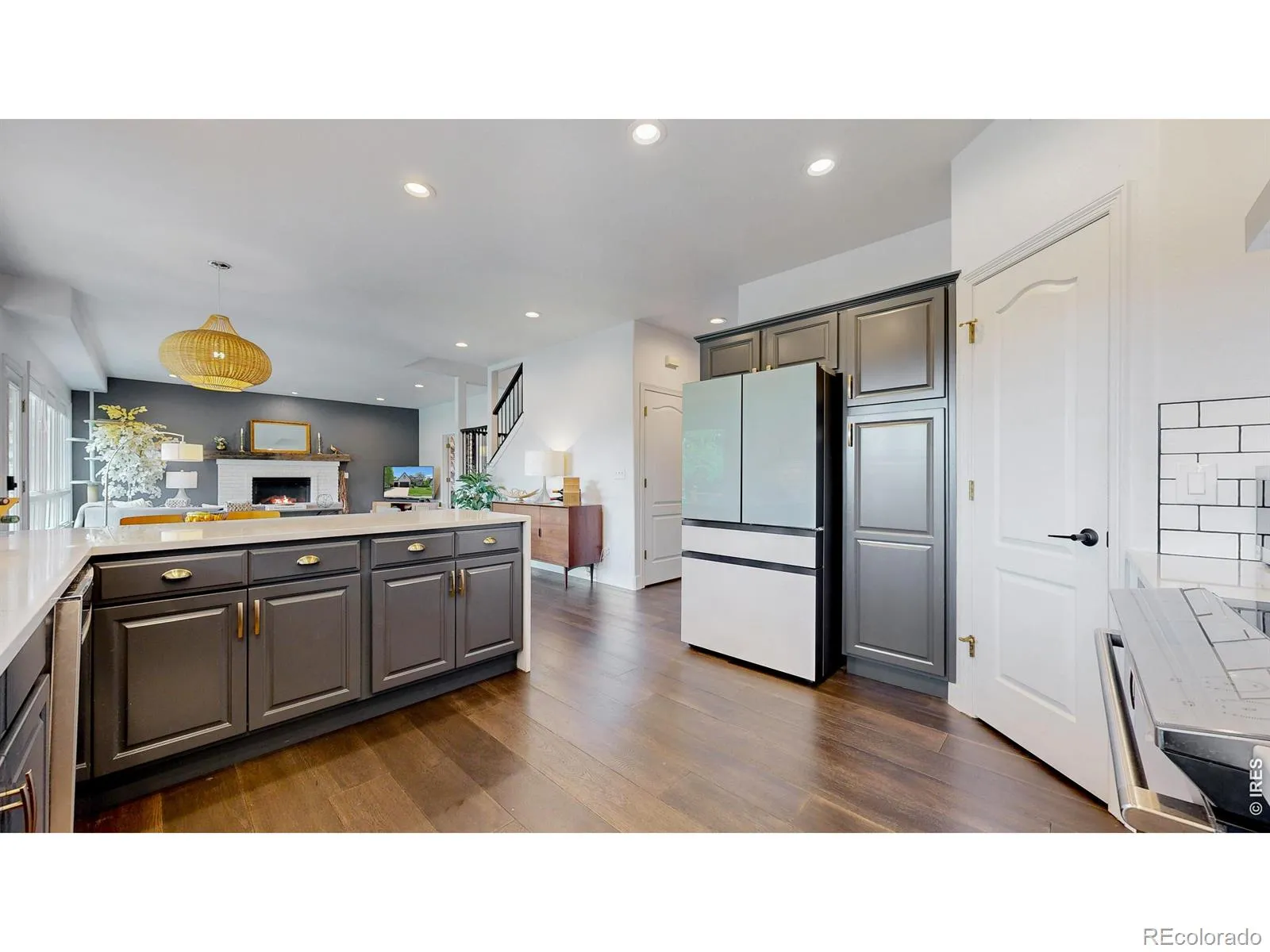 Welcome to this beautifully updated home in Country Meadows, ideally positioned near trails, golf, medical, shopping, and commuter access. Set along a quiet residential loop and backing to an unobstructed greenbelt view, this home blends refined style, natural light, and flexible living spaces designed for the way people live today. The inviting main level features a bright, open living area with a modern flow and expansive windows, French oak wide-plank floors, and a gas fireplace. The kitchen is stylish and functional, with quartz countertops, resurfaced cabinetry, subway tile backsplash, generous prep space, and easy flow for everyday living and entertaining. Upstairs, the spacious primary suite offers a fully remodeled spa-inspired bath with designer finishes, soaking tub, and walk-in shower. Two additional bedrooms share a full bath, while the upgraded laundry room and hidden bookshelf door open to a versatile flex room ideal for an office, studio, guest retreat, or 5th bedroom option. The recently finished basement adds exceptional livability with a welcoming entertaining space, stylish wet bar with beverage fridge, cozy under-stair office or reading nook, additional bedroom, full bath with walk-in shower, and flexible open area for movie nights, workouts, or casual gatherings. Outside, the professionally landscaped backyard opens to a private and bucolic view with protected open space framed by classic white pasture fencing, creating a rare sense of privacy and connection to the outdoors. Near Bamford Elementary and within the Fossil Ridge High School district, this home offers thoughtful updates, memorable design, and everyday functionality in a highly convenient location.