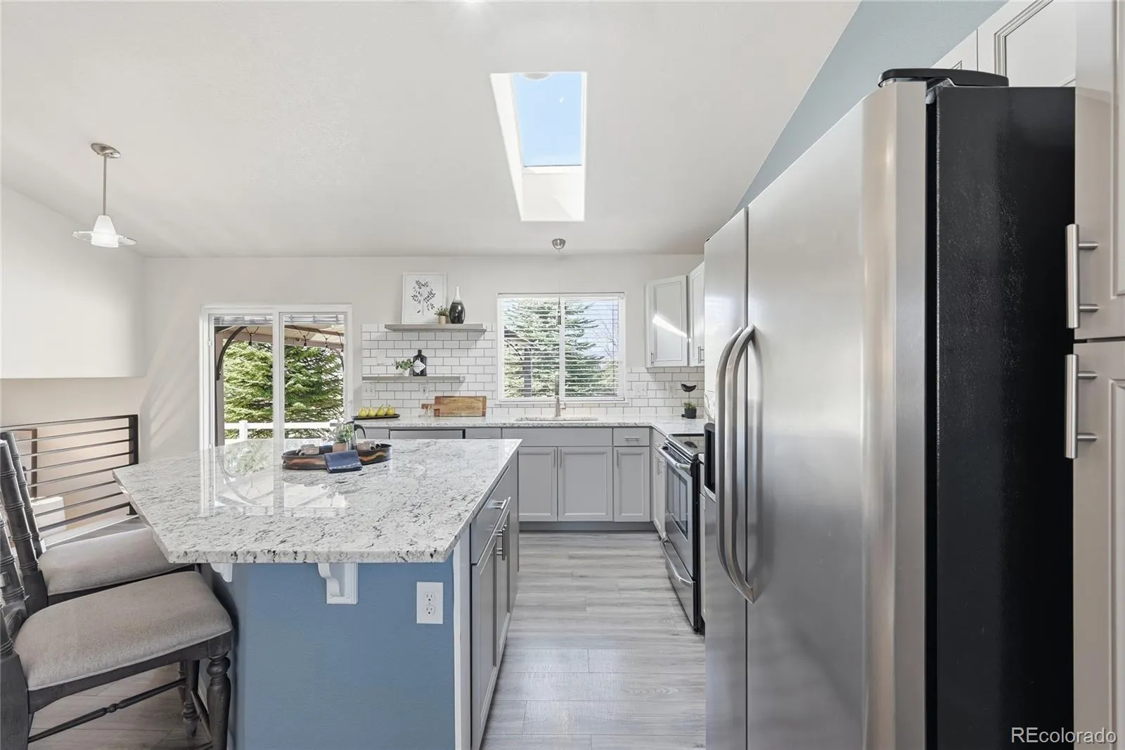 Your dream home awaits in the heart of Anderson Farm! This beautifully maintained single-family residence is full of charm and character, offering 3 bedrooms, 2 fully updated bathrooms, and 1,920 square feet of thoughtfully designed living space. The interior showcases a harmonious blend of modern design and practicality, featuring a tastefull color pallete, durable luxury vinyl plank flooring and new carpeting spanning an open floor plan that enhances natural light throughout the living spaces. The updated kitchen is a true centerpiece, featuring grantite counters, stainless steel appliances, spacious island with ample seating, and a layout that seamlessly connects to the main living areas—perfect for both everyday living and entertaining. The open-concept design flows effortlessly, while the lower level provides additional versatility with a cozy family room and a flexible workspace ideal for a home office or hobby area. An unfinished 300-square-foot space offers excellent storage and exciting potential for future expansion, including the option to add a fourth bedroom and third bathroom. Outdoor living is equally appealing, with a covered back patio pergola that provides comfortable shade for relaxing evenings. The home is ideally positioned next to a greenbelt and backs to a tree-lined open space, creating a peaceful and private setting. Located in the desirable Anderson Farm community, you’ll enjoy convenient access to parks, schools, and recreational amenities, all while being just minutes from the vibrant downtown Loveland area. With its ideal location, flexible layout, and thoughtful updates, this home offers the perfect blend of comfort, style, and opportunity.