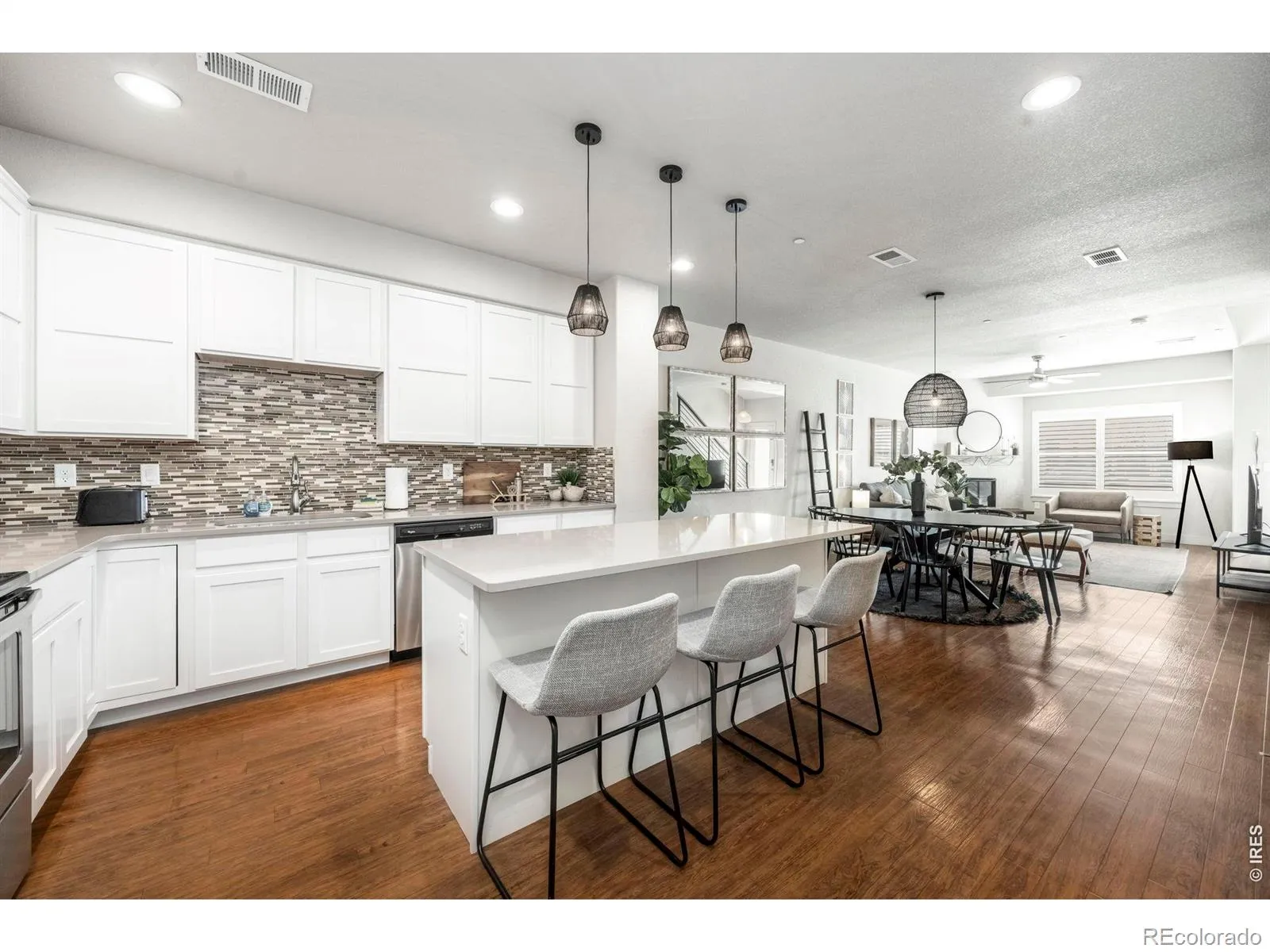 Beautiful, contemporary townhome, in immaculate condition – with no backyard neighbors and no lots to be built upon – well built by Phil Green – and priced to sell. Thoughtfully designed with a contemporary aesthetic, this urban townhome offers abundant natural light and a highly functional layout in one of the best locations in Old Town North, close to CSU campus, Old Town, and breweries. The open-concept main level offers hard flooring, powder room, ample storage, a well-appointed kitchen with a large island, stainless steel appliances, quartz countertops, and mosaic backsplash. Enjoy gas fireplace, plantation shutters and contemporary wrought iron staircase railing. The two upstairs bathrooms function as two primary bedrooms, each with en-suite bathroom. Primary bedroom offers a large walk-in closet and access to covered back patio space with additional storage. Highly functional floorplan with upstairs laundry room with built in storage and utility sink. Built with energy efficiency and low maintenance in mind, the home also includes a tankless water heater and humidifier. Ideally located with easy access to Old Town, the Poudre River Trail, Poudre River Whitewater Park, nearby parks, natural areas, and local breweries.With no rear neighbors, the setting offers added privacy and a feeling of space and light that is rare in Old Town North. Full house of furniture is available and negotiable. HOA includes cable and internet. The property may also present a strong opportunity for a long-term rental investment, or an easy lock and leave Fort Collins base.