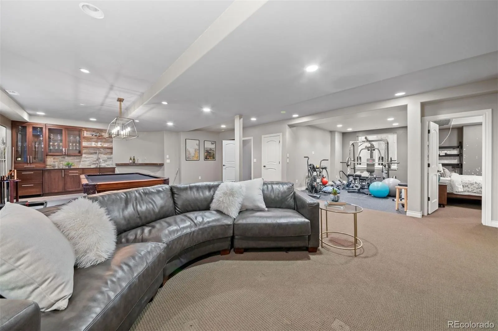 The fully finished lower level is designed for elevated entertaining, offering a media lounge, full wet bar, wine room, guest bedroom, full bath, second laundry, and ample storage.