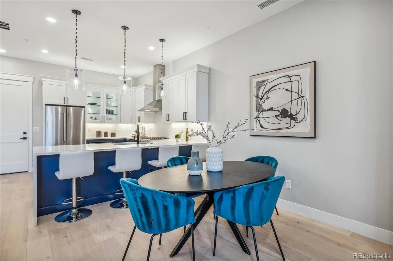 Wide-plank hardwood flooring, designer lighting, custom closets, designer window coverings and a sleek fireplace add warmth and elevated style at every turn.
