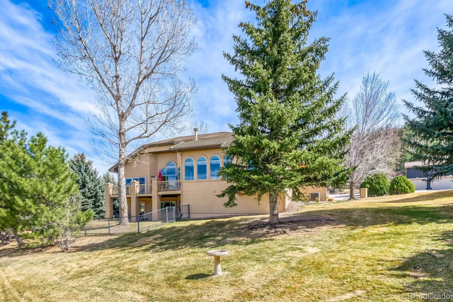 Picture standing on the deck or looking out walls of windows at breathtaking views of Pikes Peak, the front range and Garden of the Gods. Welcome to complete main level living in the desirable St. Andrews neighborhood. Two blocks from the Colorado Springs Country Club Club and directly across from 700 plus acres of Palmer Parks’ scenic acres of hiking and biking trails. Attractive stucco exterior with a tiled roof and a large three car garage. Beautifully landscaped large private lot. Sit on the front yard partially covered patio with a fountain or the large backyard deck with all the views. As you enter the house you are welcomed with a gracious tiled foyer, lots of natural light, vaulted ceilings and large columns that create symmetry and defined spaces. Beautiful dining room, living room with a wall of windows, main level office could be used as a 5th bedroom. Enter the gourmet kitchen with hardwood flooring, corona countertops, kitchen aid cooktop, microwave and oven. Sit at the large breakfast island (bar stools included) or the spacious breakfast nook with a three sided gas log fireplace. Family room opens to the kitchen and also enjoy the three sided gas log fireplace. Wall of windows and walks out to the deck. Second main level bedroom and full bath. Enjoy the views and walk out to the deck from the spacious primary main level bedroom. Featuring hardwood flooring, two walk-in closets and a large 5-piece bath. Curved hardwood stairs lead to the walkout basement. The basement features a family room with a walk out to the backyard, two large bedrooms and a full bath with granite counters. Large storage room. Other features are central air, finished grade and a wrought iron partially fenced backyard. Located minutes from shopping, dining, hiking and biking. Easy access to I-25. Don’t miss this to own a beautiful home with spectacular views.