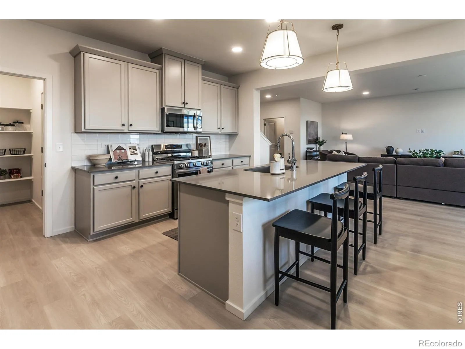 Oakley floor plan by Hartford Homes. New construction, two-story. Spacious kitchen w/ island and walk in pantry. S.s. dishwasher, electric range, microwave, fridge. Washer & dryer included. White maple cabinetry. Quartz countertops. Vinyl plank flooring in entry, kitchen, dining, baths, laundry, study/flex space, great room. Office/flex space on main level. 4 bedrooms, loft and laundry on second level. Central a/c. Garage door opener and keypad. EV ready outlet in garage. Front yard landscaping included. Future plans for community to have a Community Green, retail, parks, trails, pool. There is a $375 annual non-potable water fee to be paid to metro district. PHOTOS FROM PREVIOUSLY BUILT HOME AND THEREFORE MAY DEPICT DIFFERENT FINISHES. ASK ABOUT CURRENT LENDER OR CASH BUYER INCENTIVES. Est. Sept/Oct completion