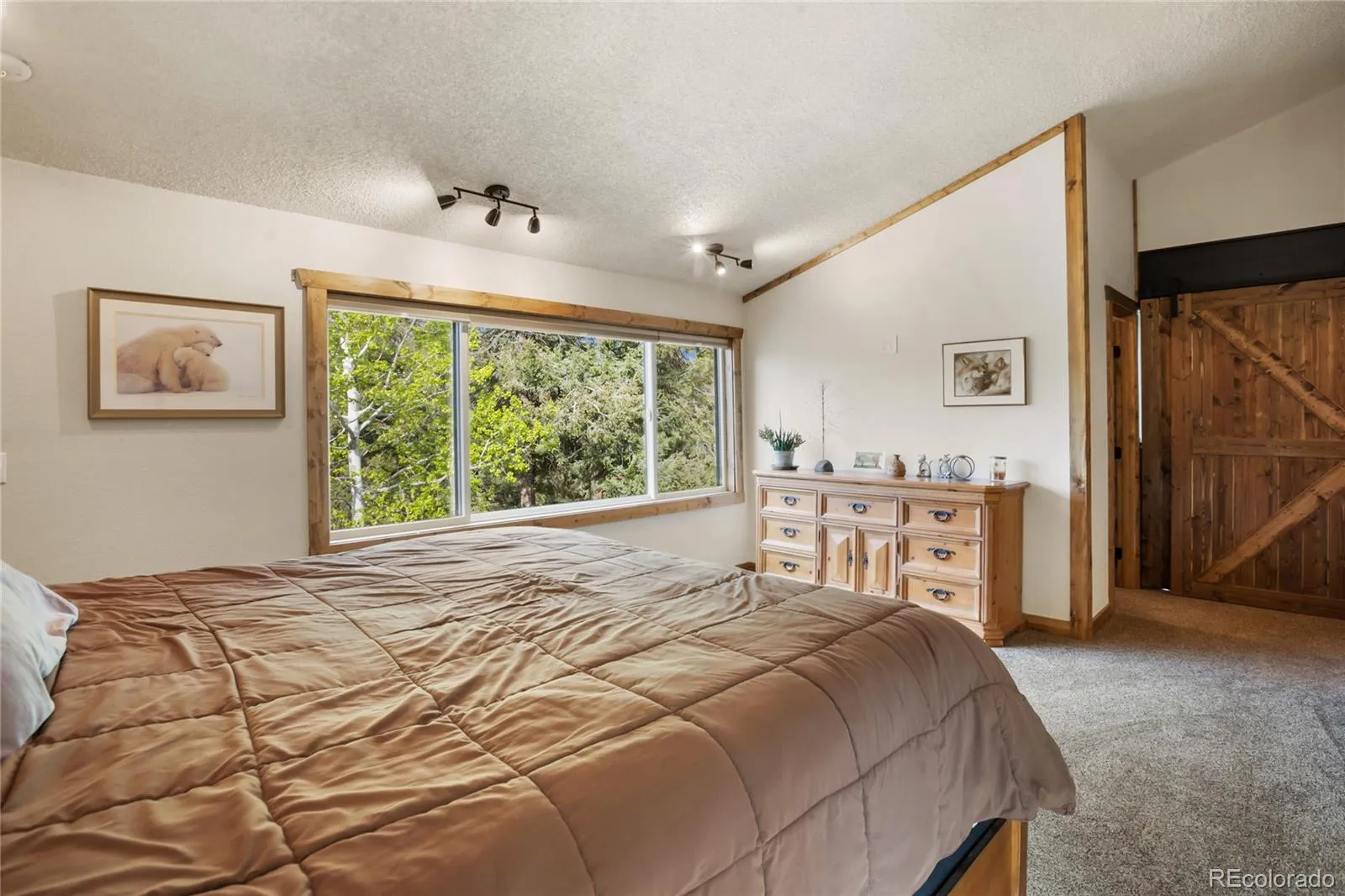 Beautifully renovated custom home in Highland Lakes with stunning Pikes Peak views and access to a private community lake perfect for fishing, and canoeing, and even ice fishing. This move-in-ready property features a fully updated kitchen with stainless steel appliances, granite countertops, and new cabinetry with soft-close drawers and pullouts. Hardwood floors throughout the main level, complemented by new Andersen windows throughout and efficient Rinnai gas heaters. The main level offers a spacious bedroom, office/study/playroom , plus a large living room with vaulted tongue-and-groove ceilings, a cozy Lopi wood-burning stove, and walk-out access to a deck with incredible Pike’s Peak Mountain views. Upstairs, the private master suite features a sliding barn door, his-and-hers closets, and an en-suite ¾ bath with a custom tile shower and deluxe fixtures. The lower level includes a bedroom with built-in bookshelves, an additional office or workout room with a pellet stove, a large ¾ bath with tile flooring and hickory cabinets, and a laundry area with a newer hot water heater. The family room features a gas fireplace and opens to the lower-level patio, ideal for relaxing or entertaining. Outside, enjoy a fenced yard, mature trees, RV parking, and room to breathe in the Colorado mountain air. This home shows like a model and is ready for you to move in and enjoy from day one—you won’t be disappointed!