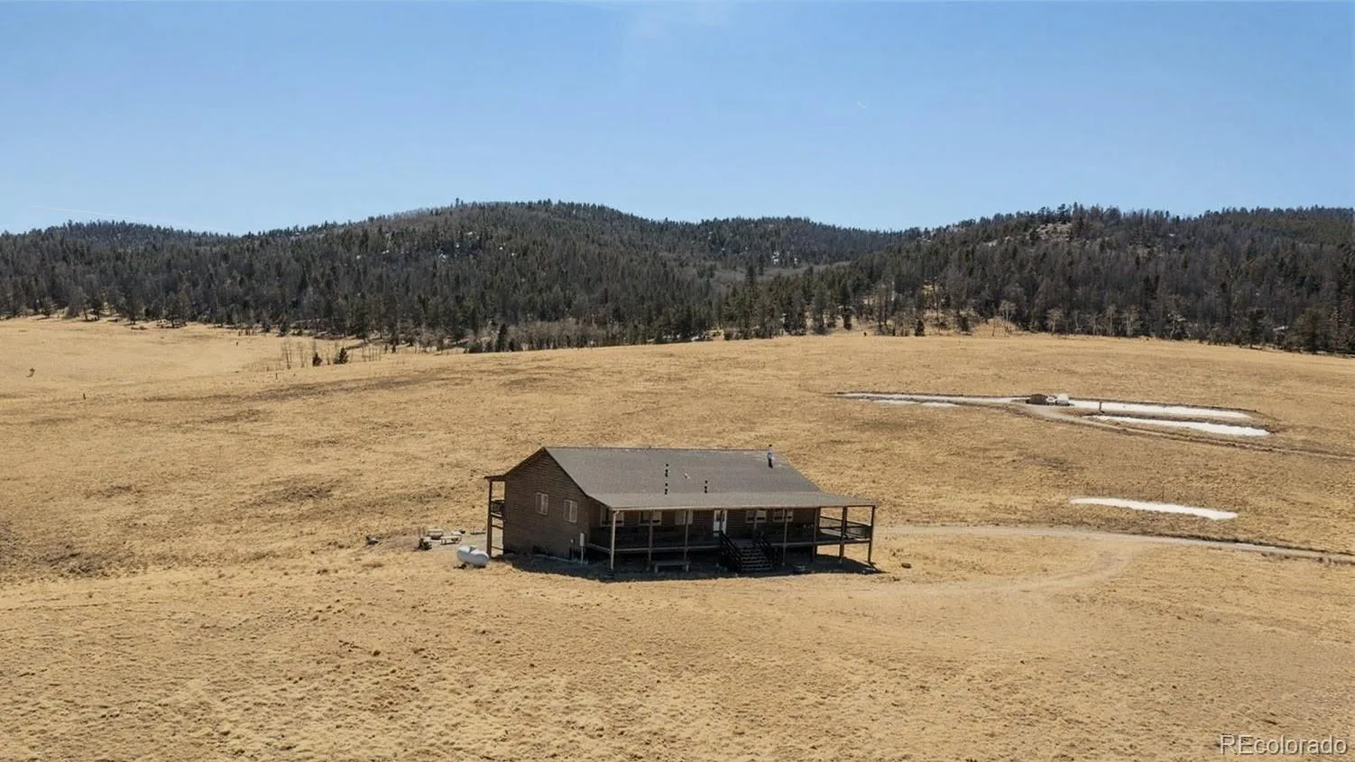 Adjacent to National Forest on 11.50 acres of ultra private and pristine mountain property. This spectacular retreat comes furnished and is ready for you to start enjoying. You will love the many features in this home including log siding, wrap around covered deck, LVP flooring, and walking directly into National Forest! Abundant wildlife is frequently seen moving about on the property. If you are looking for a place to get away from the noise and drink your coffee in a rocking chair in solitude, this home has that special quality you will adore. Three bedrooms, two bathrooms, and the open concept floorplan is great for large groups and entertaining. The cozy woodstove will keep you warm on those chilly Colorado evenings. You can explore your very own aspen grove with and start a hobby in the garage/workshop. Stargazing is wonderful in this spot because of the secluded location. The HOA includes central trash service, dog park, pavilion, and a stocked fishing reservoir for all property owners and guests. You are close to world class fishing, hiking, ATV trails, skiing, and biking. Colorado Springs and Denver are a short drive away. This home is true Colorado paradise you will enjoy for years to come.
