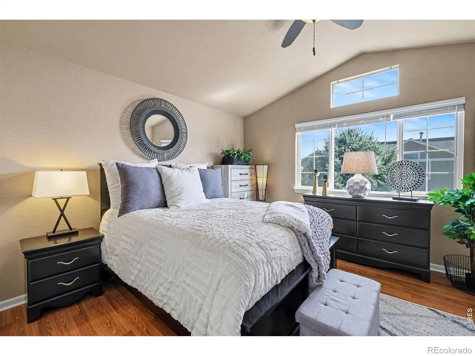 This meticulously maintained townhome offers easy, low-maintenance living in The Reserve at Renaissance, a well-established Longmont community. Thoughtfully cared for and truly move-in ready, it is prepared for its next owner to enjoy. The main level features an inviting living area with durable luxury vinyl plank flooring and a striking three-sided fireplace that adds warmth and character. The kitchen is finished with hardwood floors, bar seating, generous counter space, and a walk-in pantry. Sliding glass doors open to a private spacious patio where you can relax and unwind. A convenient powder room completes the main floor. Upstairs, luxury vinyl plank flooring extends throughout, offering a clean, modern aesthetic with the added benefit of easy maintenance and a cohesive feel – no carpet to replace or maintain. The primary suite offers dual closets and a private en-suite bath. The second bedroom also includes its own en-suite bathroom, providing flexible space for a variety of needs. An upper-level laundry area adds everyday convenience. An attached two-car tandem garage provides extra storage space for gear and seasonal items. Residents enjoy nearby access to Lagerman Reservoir, parks, and open space, with shopping and dining in Longmont and Niwot easily reached via the Diagonal Highway.
