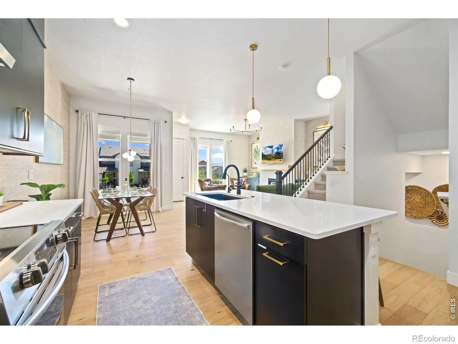 Experience this exquisitely designed townhome – a move-in-ready two-story haven elevated with high-end finishes and thoughtful upgrades. The oversized front patio invites you in, where a striking floor-to-ceiling tiled fireplace and floating cabinets serve as the stunning centerpiece of your open living room, enhanced by the rich texture of grass cloth wallpaper and the warm glow of custom lighting. The gourmet kitchen features full-height European frameless cabinets by Milarc, a custom tile backsplash, and a reverse osmosis water filtration system. The former pantry closet has been replaced with a sleek cabinet pantry for added sophistication. Upstairs, all four bedrooms offer plush carpeting with upgraded padding. The primary suite flaunts a built-in desk, floating shelves, a luxurious ensuite, and a custom walk-in closet. Abundant storage awaits, from cleverly integrated spaces to a professionally finished garage featuring sleek epoxy flooring and custom cabinetry. The fully finished basement offers another bedroom, bathroom and a family room with a wet bar. With more premium features like board-and-batten stairwell detailing, an upgraded storm door, and a well-appointed laundry room, you will look no further. The best way to appreciate this home’s thoughtful design is to see it yourself.