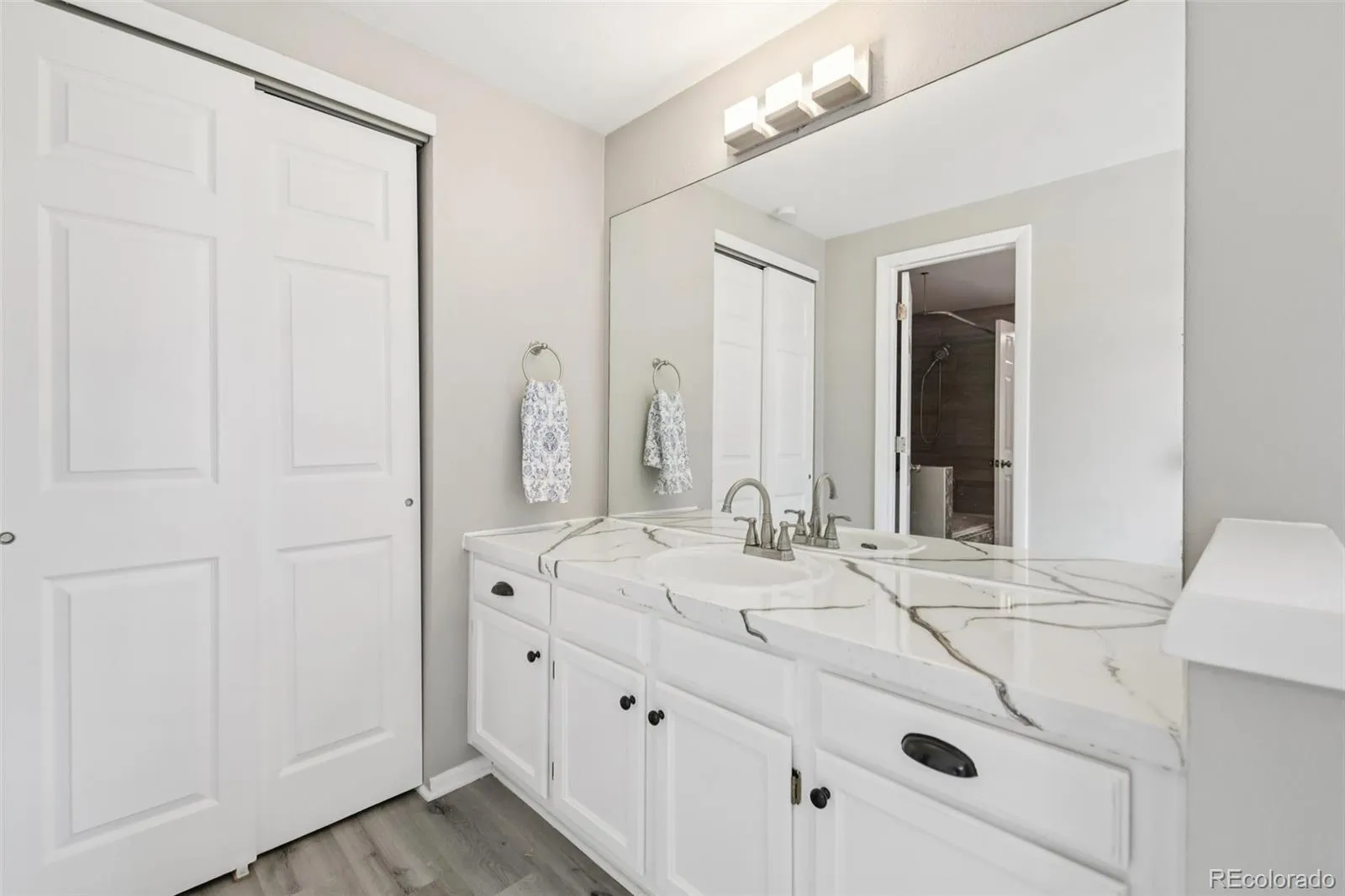Welcome to this beautifully updated, move-in ready townhome with a 2-car garage and a low HOA of only $260/month. The remodeled kitchen features new quartz countertops, stainless steel appliances, and updated fixtures, opening seamlessly into the living area for comfortable everyday living. The spacious living room is highlighted by a cozy electric fireplace, creating a warm and inviting space to relax. A versatile third bedroom on the main level offers flexibility for a home office, workout room, or guest space. Upstairs you’ll find a large primary suite with vaulted ceilings, a second bedroom, and an updated bathroom with custom tile. Enjoy a quiet community with mature trees and nearby trails. Conveniently located near parks, shopping, dining, DIA, Anschutz Medical Campus, Children’s Hospital, the VA, Buckley Space Force Base, and light rail just one mile away.