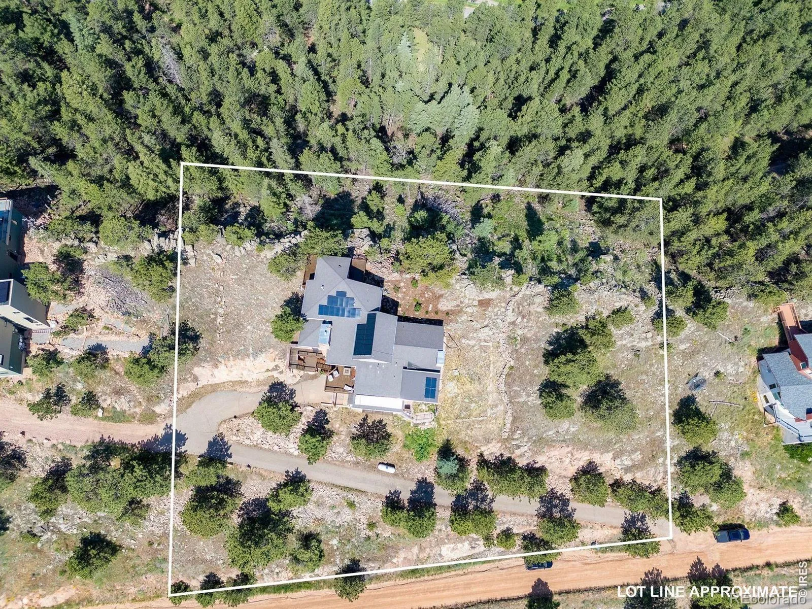 Welcome to 6183 Red Hill Road! A stunning mountain retreat where privacy, design, and sustainability converge and situated just minutes from Broadway. Integrated into the surrounding landscape, this 4,238-square-foot residence offers 4 bedrooms, 4 bathrooms, and a dedicated office space, all set against a dramatic backdrop of unobstructed views. The main level boasts vaulted ceilings and a functional layout with defined living, dining and kitchen areas and also a bonus sunroom that blurs the line between indoor and outdoor living. There are two spacious primary suites connected by elevator and ideal for multi-generational/communal living or hosting guests in comfort and privacy. A private hot tub room awaits off of the upper primary where you can unwind while taking in the panoramic scenery. The 2nd story lower level boasts 2 additional bedrooms, a shared full bath, and a generous recreation room or flex space with natural rock outcroppings and new engineered hardwood floors. Multiple decks and patios extend the living spaces outward, offering countless vantage points to enjoy the surrounding beauty and tranquility. An additional elevator from the garage to the 3rd floor provides extra convenience when having to bring things upstairs. Designed with efficiency and ease of mind, the home includes radiant heated floors, a Generac 22kw backup generator, owned solar, and the 2 elevators mentioned above delivering both comfort and long-term sustainability. A rare offering that blends luxury with mountain charm-6183 Red Hill Road is more than a home, it’s an elevated Colorado lifestyle. Come make this home your own today!