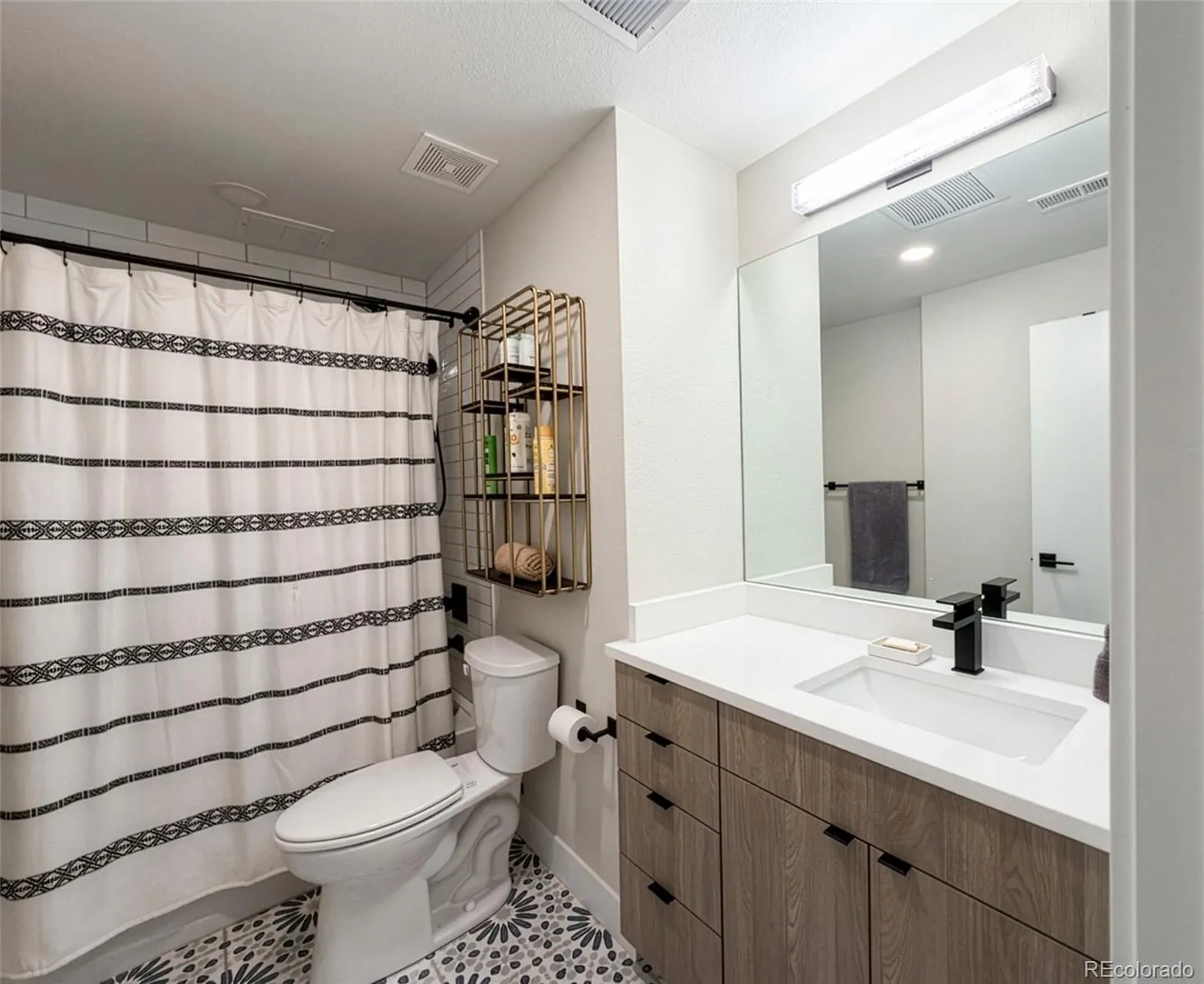 The additional bedroom is a bright and versatile space with generous closet space and a feeling of functional privacy. The laundry area is strategically located near the bedrooms. The additional bath on the third floor offers a beautiful subway tiled shower, updated cabinetry and quartz counters.
