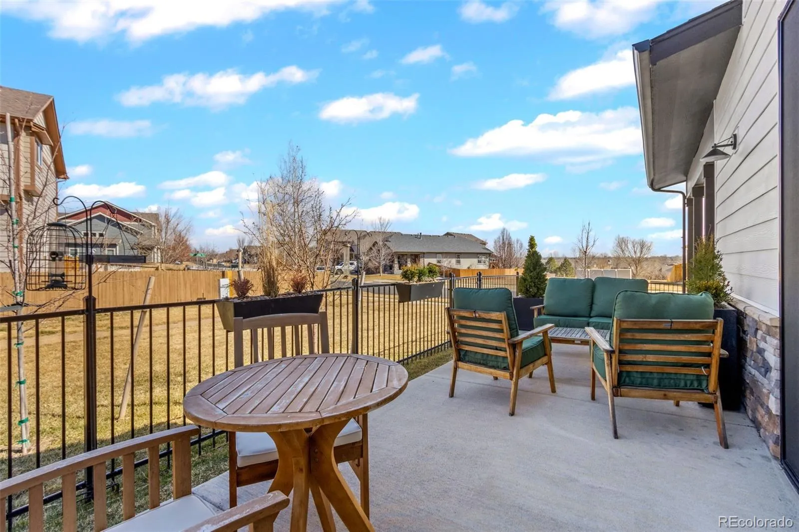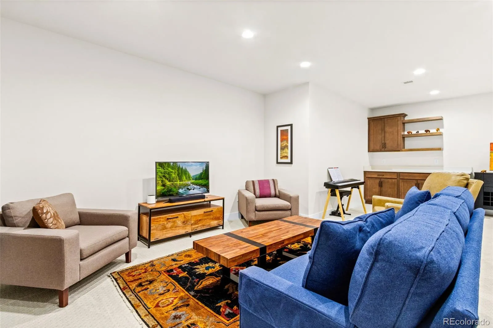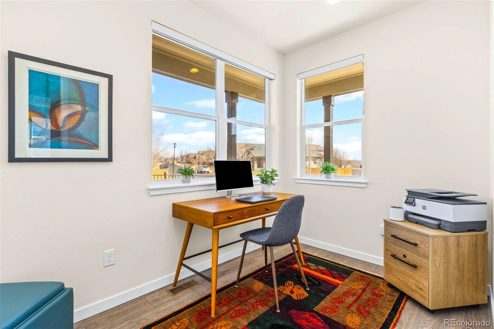 Former model home now for sale – has only been lived in for one year so it’s nearly new! Over $50K upgrades when built, plus the owner added more features after their purchase including a California closet in the primary suite, Hunter Douglas silhouette blinds (with remote in great room), custom drapes and a smart thermostat. Home is so efficient with LEED Gold certification, tankless water heater and low-E windows. You’ll find comfort easy to achieve with high efficiency furnace, ceiling fans, and noise reduction materials/techniques throughout the home. The split bedroom plan affords the primary bedroom premium privacy; guests can use the 2nd bedroom on the main floor or have their pick of a bedroom in the basement. You’ll enjoy hosting family and guests on the main floor with open floor plan and easy patio access or the lower level with spacious room for entertaining, a bar and built-in cabinetry – ready for the big game! Secondary bedrooms in the lower level are perfectly-sized for guests, hobby exploration, private home workout space or storage. The efficient study on the main level means single level living is achievable, and with the addition of the snow and landscape care in this patio home, you can truly have a lock-n-leave option! Take that vacation, or enjoy your 2nd home elsewhere, and leave all your worries behind. North facing patio adjacent to greenbelt is a cool summertime place to barbecue and watch the sunset. Fully fenced yard is perfect for pets of any size. No metro district fees, walking trails in the neighborhood, easy access to Old Town and I-25 for commuters, all kitchen appliances plus washer and dryer are included for more value. One year home warranty is a great bonus for this move-in ready home.