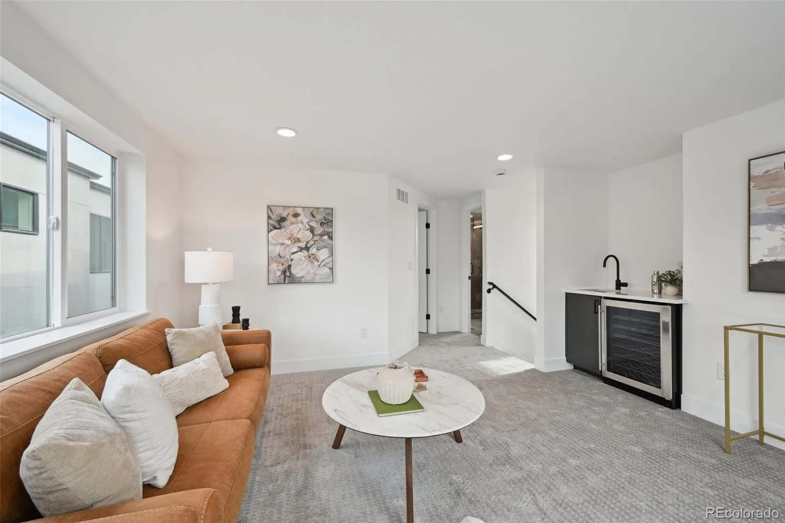 Main level features open plan living, perfect for relaxing or entertaining. Enjoy a gourmet kitchen with gorgeous eat-in island peninsula, stainless appliances, and large pantry. Retreat to the second floor to relax in your primary suite with sleek en-suite bath, walk in closet, and private balcony. Second en-suite bedroom and the centrally located laundry closet complete the level. Top floor offers the third bedroom and bathroom, plus a large, sunlit bonus living room with wet bar and beverage fridge, providing an additional entertainment or relaxation space or separate living suite. Step through sliding glass doors to your vast roof deck to enjoy the quiet and Front Range views.