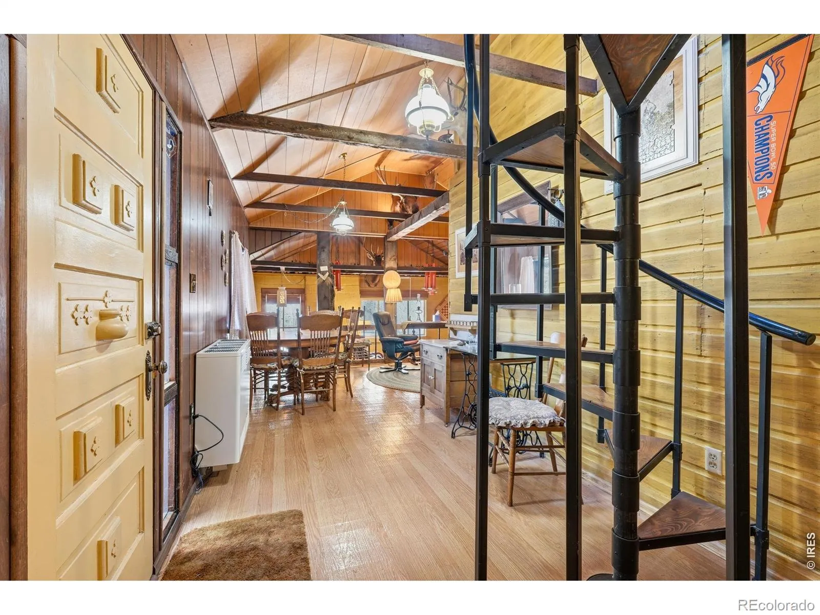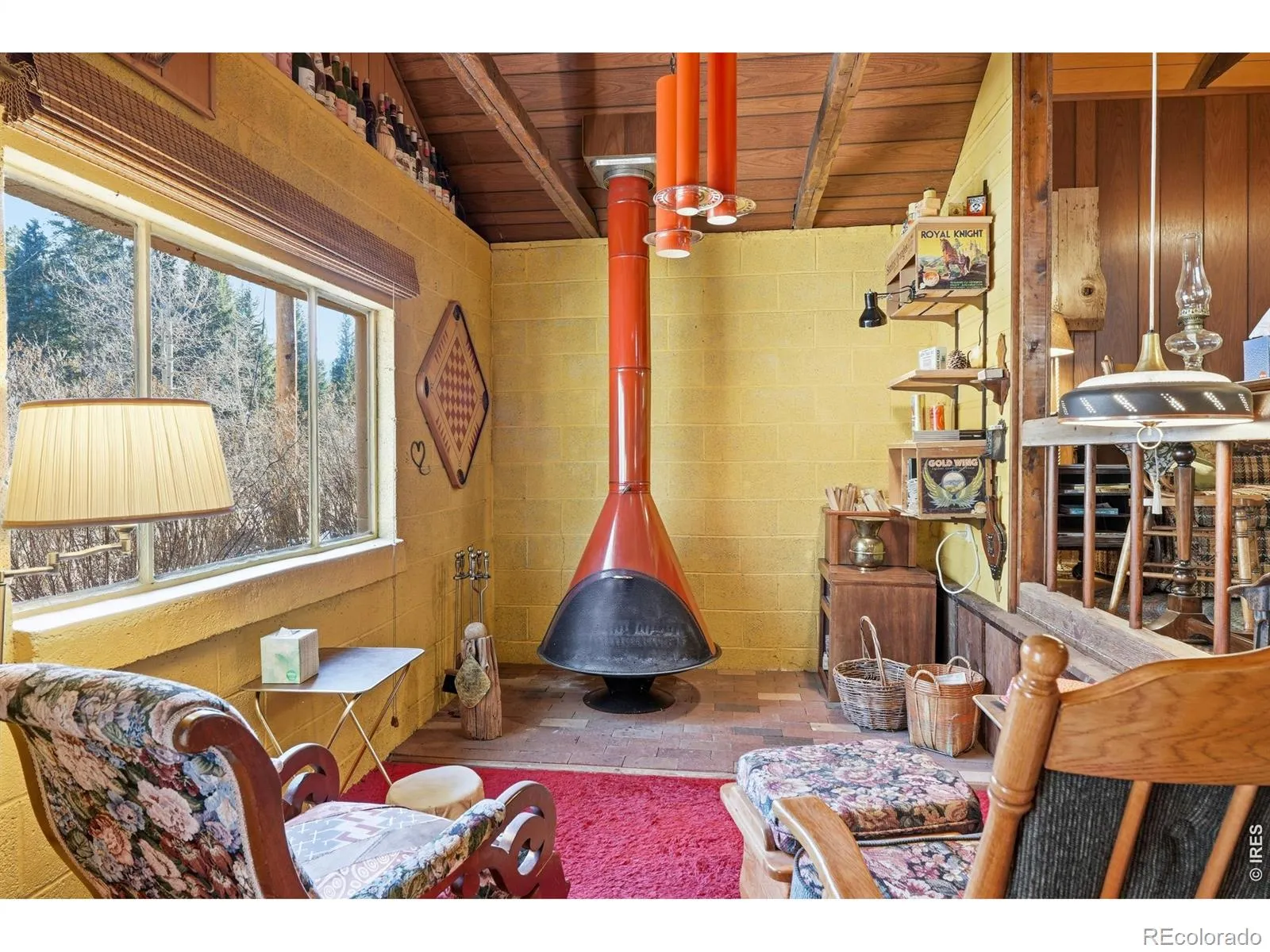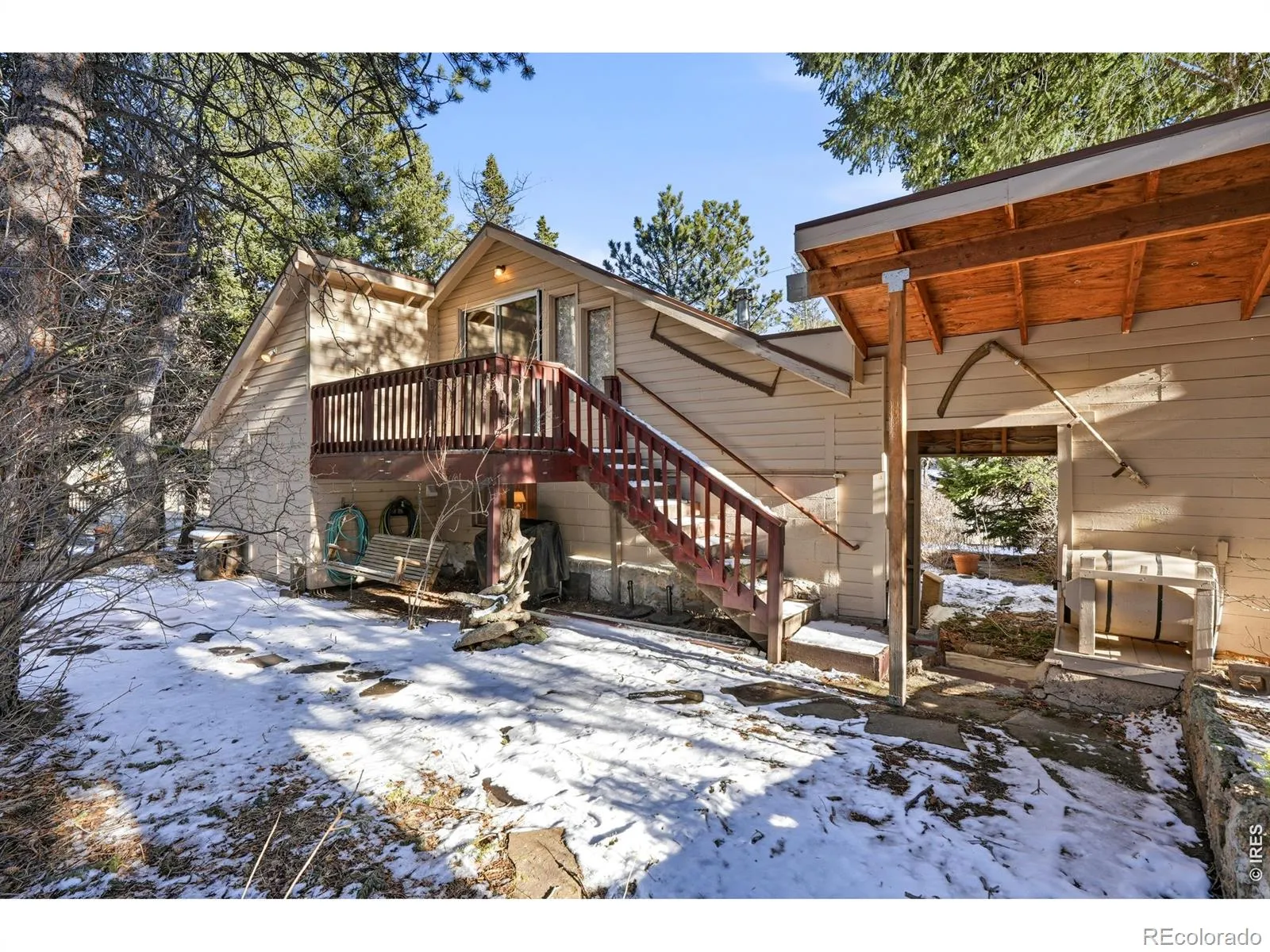 Cozy and charming cabin on 2+ lots with an awe-inspiring stand of gigantic, beautiful, stately spruce trees! Cabin features an updated bathroom, and an 11 x 6 loft area off of primary bedroom for children to sleep and/or play in! Lot features a detached 220 sq.ft. workshop/studio building; plenty of off-street parking, newer septic system (2006); seasonal water supply via shared ditch. Enjoy the view and sound of the middle St. Vrain Creek right across the roadway!