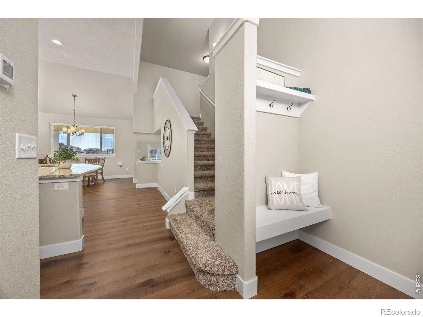 On a large corner lot backing to the neighborhood trail winding through The Ridge at Johnstown, this tastefully upgraded home is less than three years old and has room for everyone. Designed perfectly for gathering family and friends, this multi-level home features 5 bedrooms plus a main floor office, 4 bathrooms, an incredibly spacious kitchen, two living rooms, covered back patio and oversized 3 car garage. Fall in love with the impressive kitchen with gas cooktop, clean stainless appliances, massive island, convenient pantry, quartz counters, tile backsplash and knotty pine cabinets. Enjoy any time of day on the south facing covered back patio with extended stamped concrete and let the dogs and kids play in the fenced backyard with no neighbors directly behind or to the east.