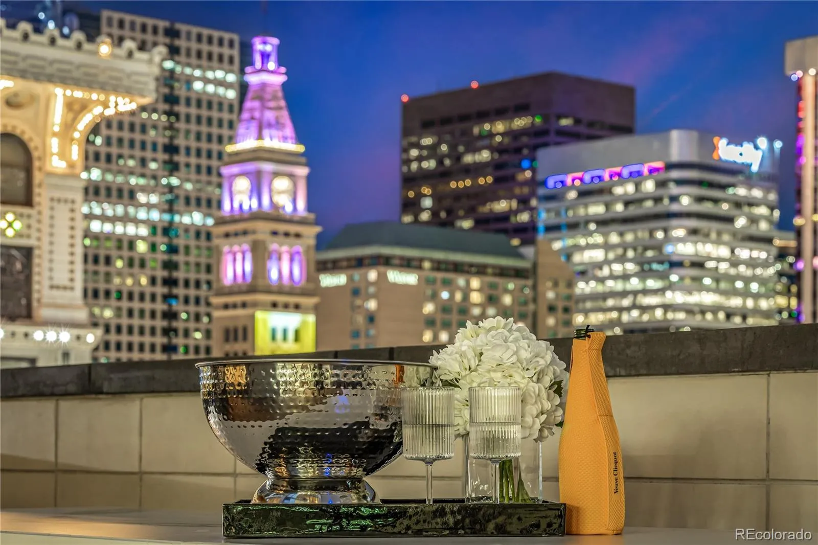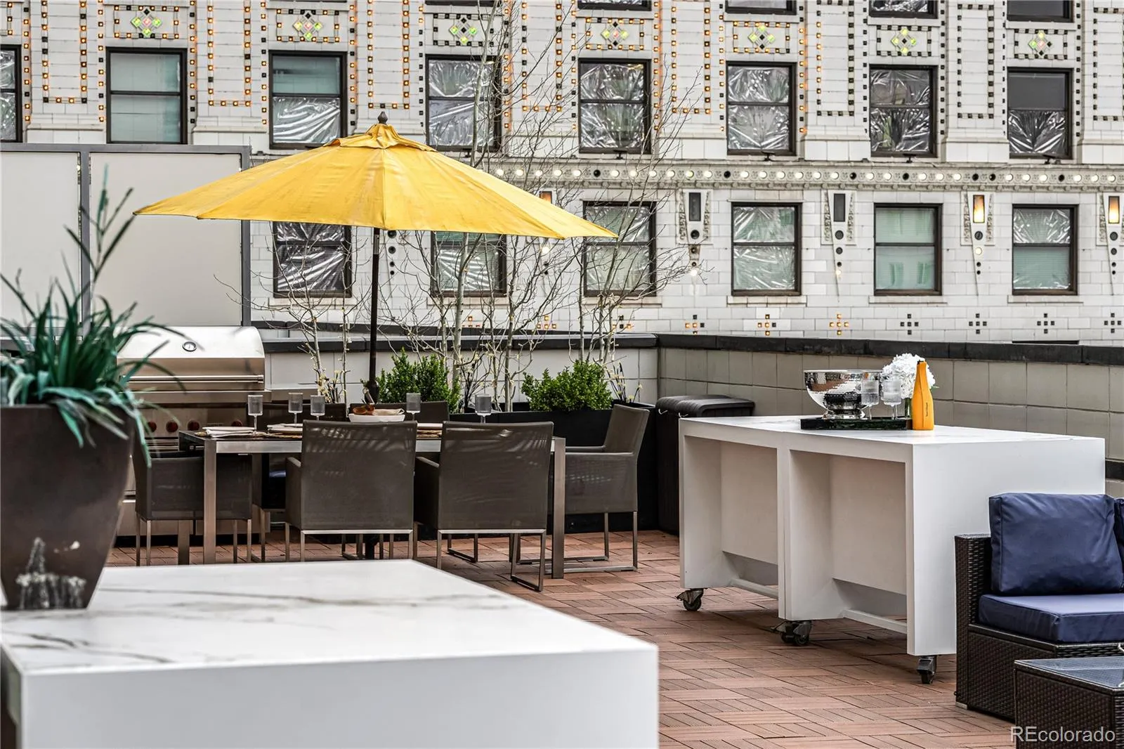 A TRUE TROPHY RESIDENCE in downtown’s iconic Spire Building. This fully remodeled luxury corner residence delivers a level of scale, design, and indoor-outdoor living that is EXCEPTIONALLY rare. It lives like a private penthouse retreat with a backyard in the sky! Its expansive 1781 sf wraparound private terrace seamlessly extends your space into the skyline— designed for unforgettable evenings in an unparalleled setting for entertaining, dining, and taking in panoramic city views. Rare outdoor natural gas, electricity and water services the lush landscaping, gas grill, fire pit, and patio lighting. Inside, experience the soaring ceilings and dramatic 14 ft tall floor-to-ceiling glass walls that flood the home with natural light and create an open, architectural feel rarely found in urban residences. Every surface has been thoughtfully reimagined, featuring a chef’s kitchen, spa-quality bathrooms, new hardwood flooring, and luxury designer finishes throughout. This home blends sophistication with comfort at every turn. Two private bedroom suites each with en-suite marbled bathrooms and custom closet space. The award winning kitchen is designed to impress, with an oversized 13 ft quartz island, premium luxury appliances and custom finishes that elevate both everyday living and large-scale entertaining. RARE- 3 premium lower level parking spaces (worth 220K) are included in the secure parking garage. Exclusive SKY CLUB access and a storage unit are another added bonus. All patio furnishings included! Spire offers resort-level amenities including a year-round heated pool, hot tub, fitness center, 24hr concierge service & security guard, resident lounges, and garage dog park. Located just steps from Denver’s best dining, entertainment and sports venues including the Denver Performing Arts Center, Larimer Square, and Union Station, a one-of-a-kind opportunity to own one of Downtown Denver’s most exceptional residences, where luxury, scale, and lifestyle converge.