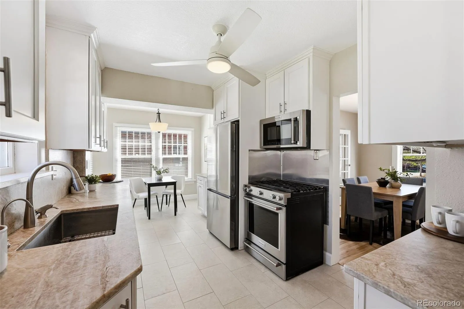 Nestled in the coveted block of 19th and Fairfax, this charming Georgian two-story blends timeless character with thoughtful updates. A manicured front lawn and stately entry welcome you inside, where the main foyer opens to a light-filled living room with original fireplace and a formal dining room. Just beyond the dining room is a versatile main-floor office, playroom, or sunroom. Overlooking the backyard, the recently updated kitchen features granite countertops, stainless steel appliances, and a cozy breakfast nook. Upstairs, you’ll find two spacious secondary bedrooms, a beautifully remodeled full bathroom, and a generous primary bedroom with a walk-in closet and private sun deck. The finished basement offers additional living space with a family room and fireplace, an updated laundry room, ¾ bath, and abundant storage. Outside, an inviting patio overlooks the sizeable backyard, ideal for summer dinners and quiet morning coffee. Recent improvements include a new roof (2024), updated water and sewer line. Conveniently located near neighborhood schools, Park Hill library, coffee shops, restaurants, parks, downtown, and easy access to the I-70 corridor.