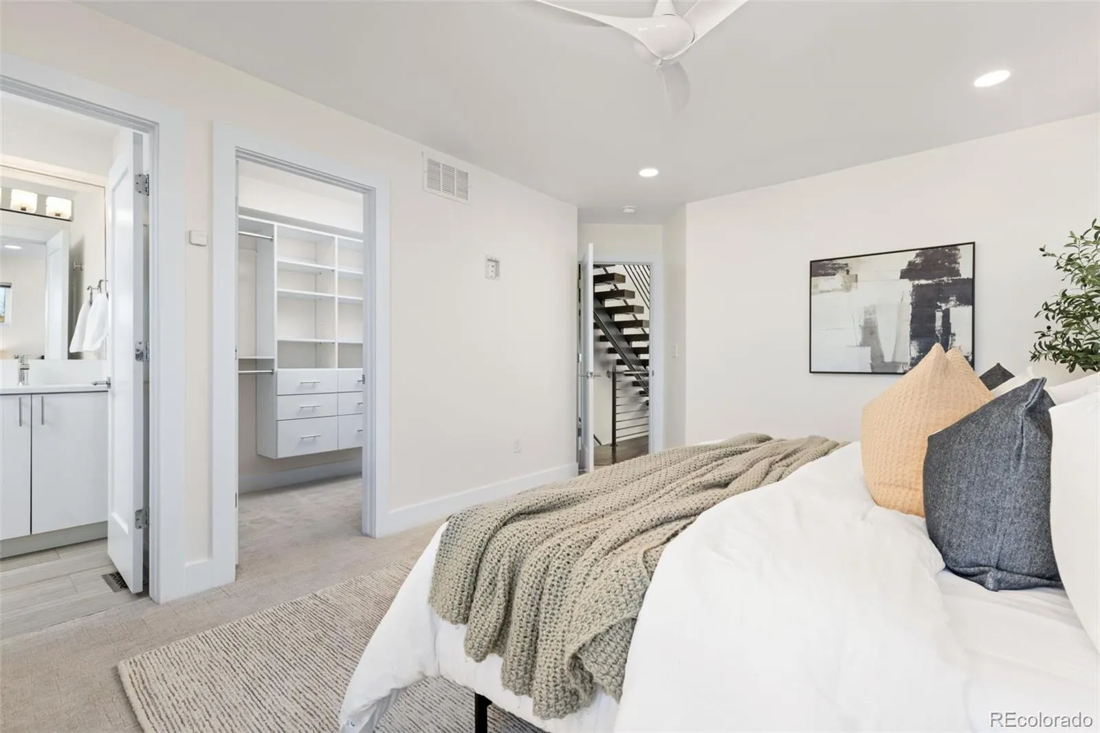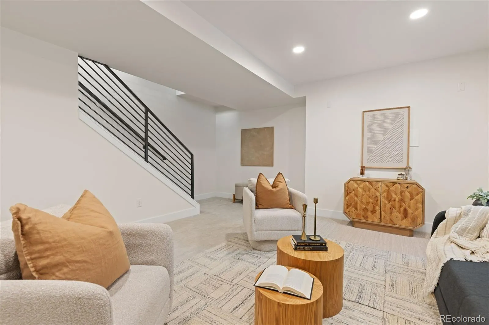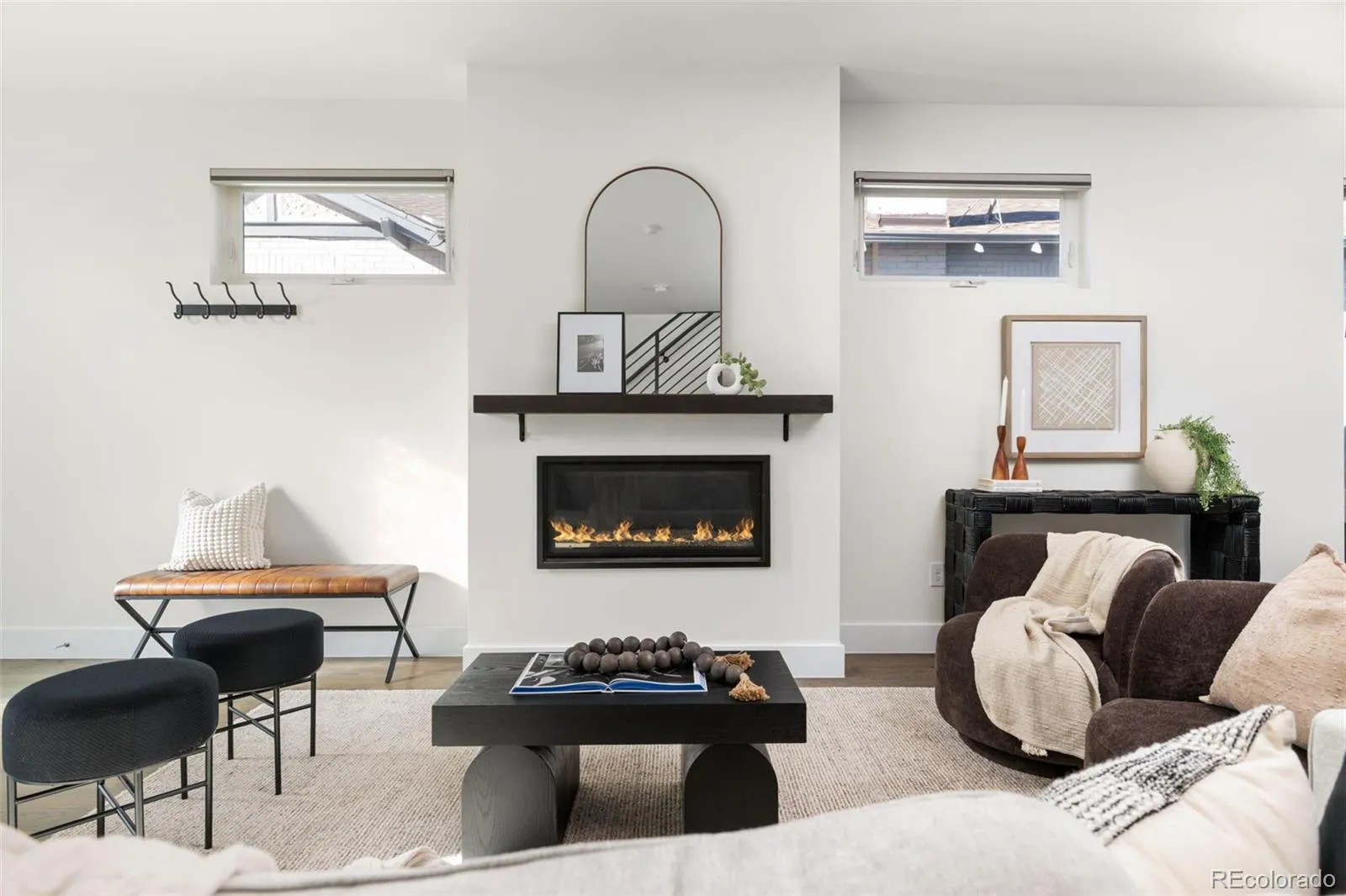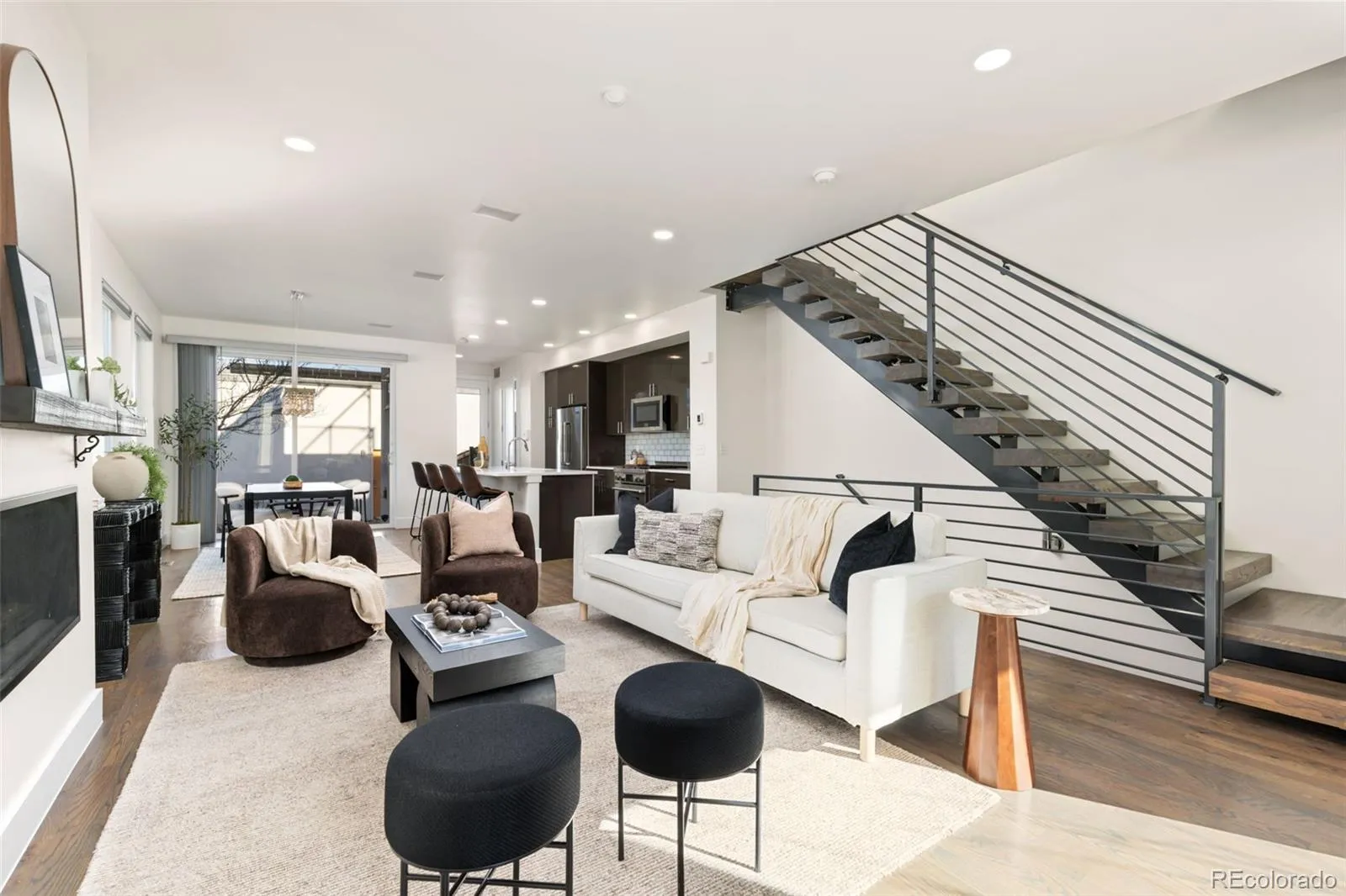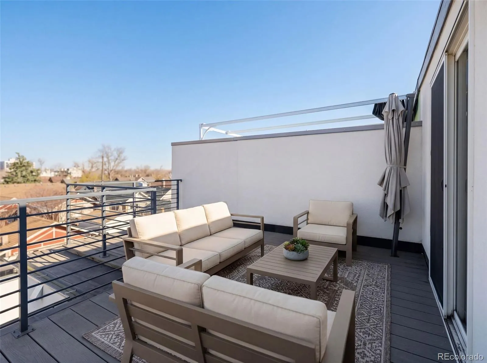 Perfectly positioned in the heart of Sloan’s Lake, this striking contemporary townhome delivers a rare blend of architectural sophistication, elevated design, and stunning panoramic views. Set in one of Denver’s most vibrant and evolving neighborhoods, Sloan’s Lake offers an unbeatable lifestyle, where walkability and high energy meet lakeside tranquility. The main level offers voluminous ceilings, rich natural hardwoods, and walls of windows that flood the space with natural light. Seamless interplay between kitchen, dining, and living rooms creates effortless flow. The designer kitchen features ample island seating, quartz countertops, sleek, flat-panel cabinetry, and Jenn-Air appliances. The dining area is spacious and surrounded by floor to ceiling windows. A cozy fireplace brings quiet warmth to the living room. A sun-drenched office space, half bath and thoughtfully appointed reception area complete the main floor offering. A dramatic open-riser staircase serves as a sculptural centerpiece guiding you through each level of the home. Upstairs the primary suite offers peaceful retreat with an en-suite bath, spacious walk-in closet and East facing windows that welcome in soft morning light. The secondary bedroom features staggered windows that create a striking architectural moment. Laundry is conveniently located adjacent to the bedrooms. The top floor offers a bonus loft area complete with wet bar, and rooftop deck access. With sweeping views of the lake and sparkling city skyline, this is the place for unforgettable gatherings. The fully finished basement boasts high ceilings, a spacious family room, full bath, and guest accommodations. Owned solar panels just serviced for listing. All new interior paint. 3 minute walk to Sloan’s Lake, and Denver favorites Odell Brewing Company and The Patio at Sloan’s! .3 miles to downtown! Easy access to I-25 and I-70!