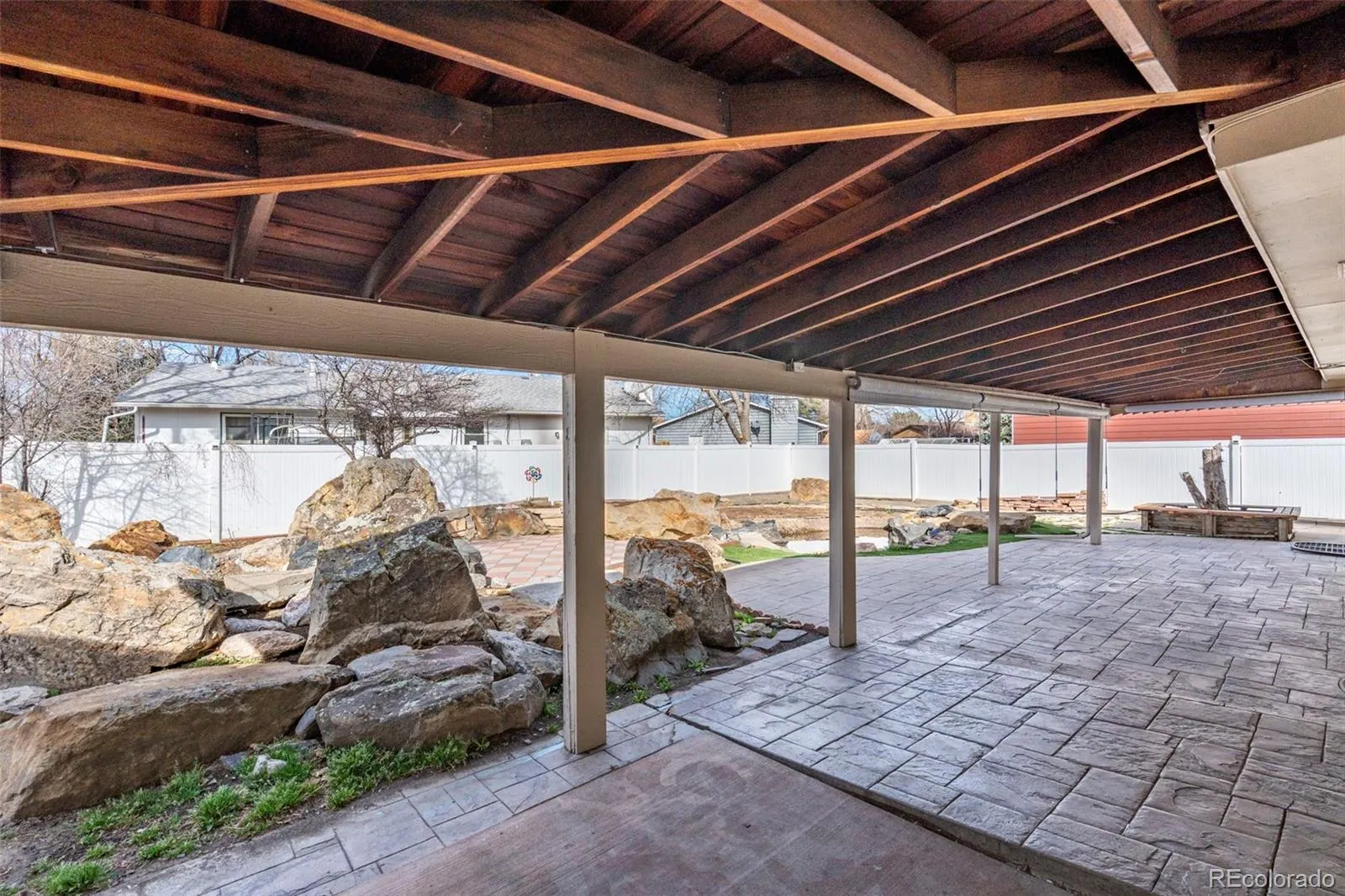 Outside, the back yard will be your private oasis – a serene sanctuary complete with koi pond and covered patio, with no grass to mow or water. And bring your toys! This property offers a closed-in carport, a spacious tool shed, and an extra parking pad big enough for a trailer or RV.