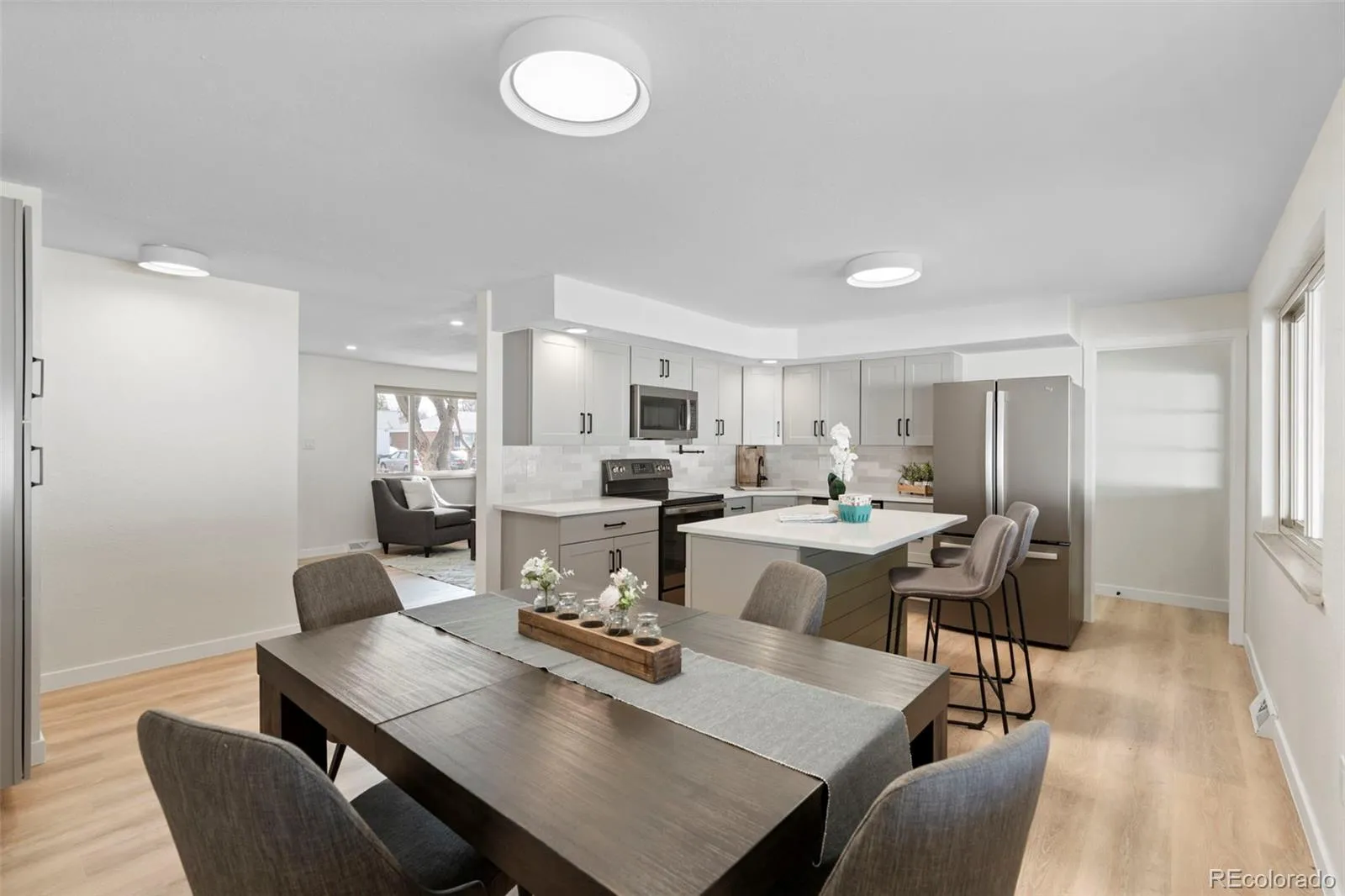Inside, you’ll enjoy an open, sunny floor plan, colorful accents, and a spacious new kitchen with island to delight both the home chef and the frequent entertainer. The main level features two comfortable bedrooms — one bedroom has an en-suite half bath and the other is double size, with two closets. The fully finished basement expands your living options significantly, featuring a sizeable second family room (perfect for a home theater or game room), two additional egress-compliant bedrooms, a beautifully remodeled bathroom, and a dedicated laundry room with utility sink.