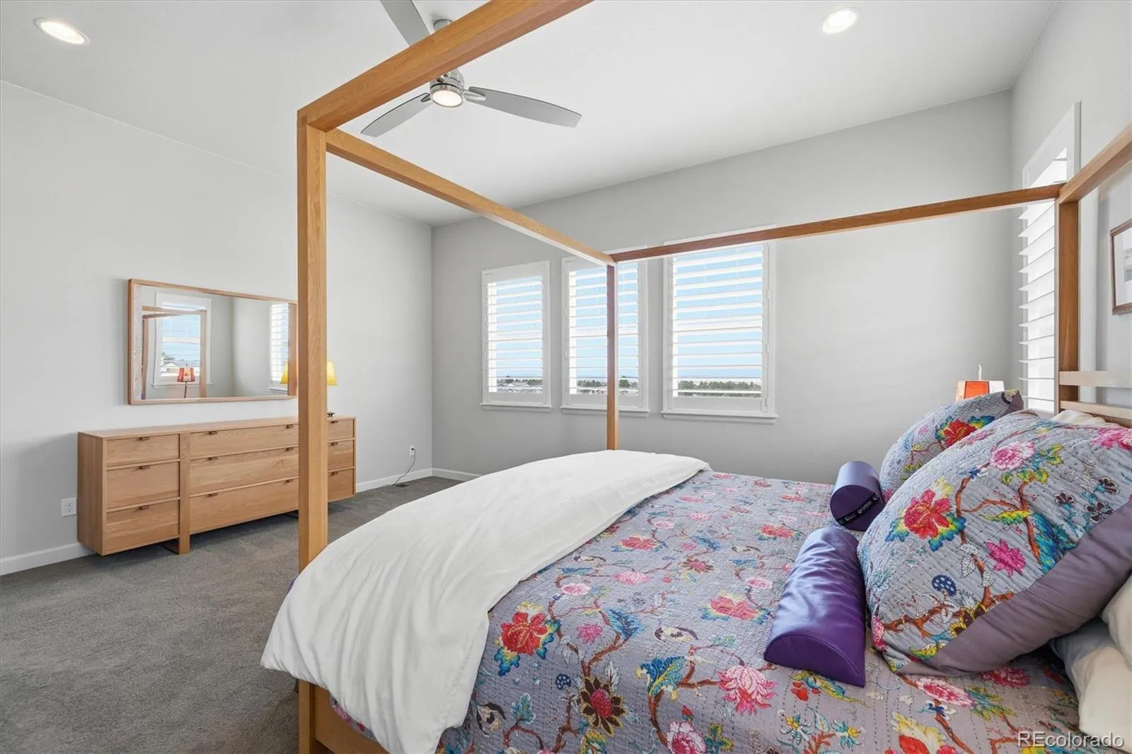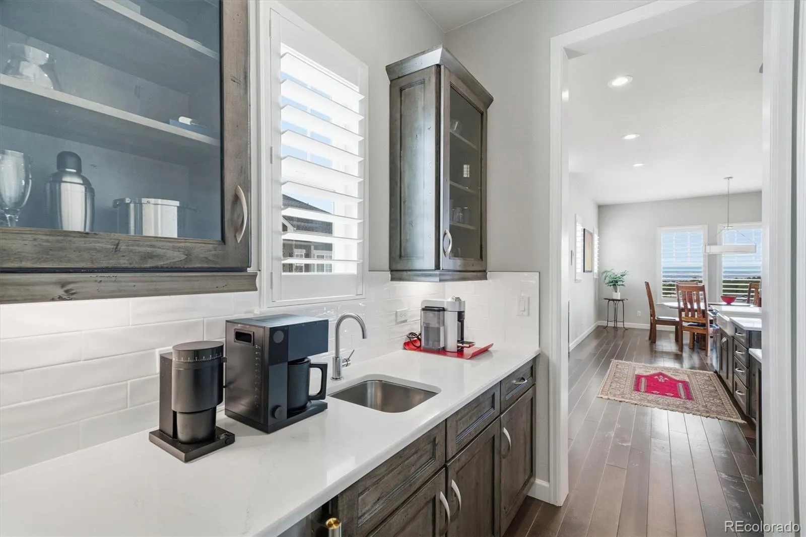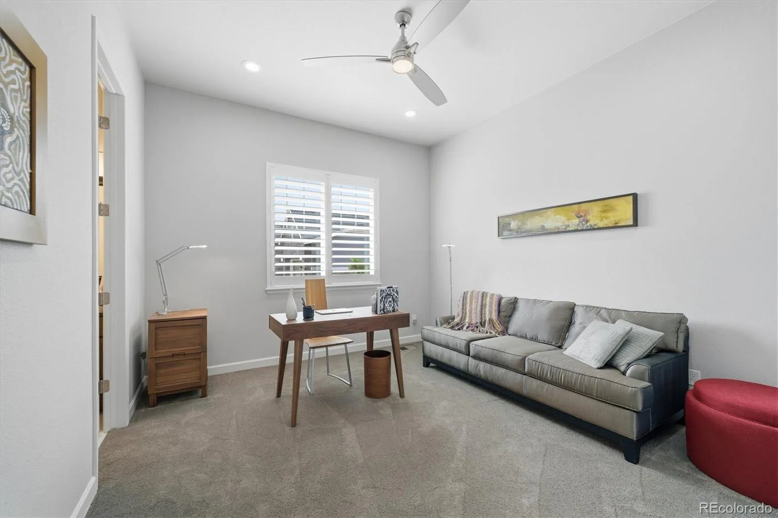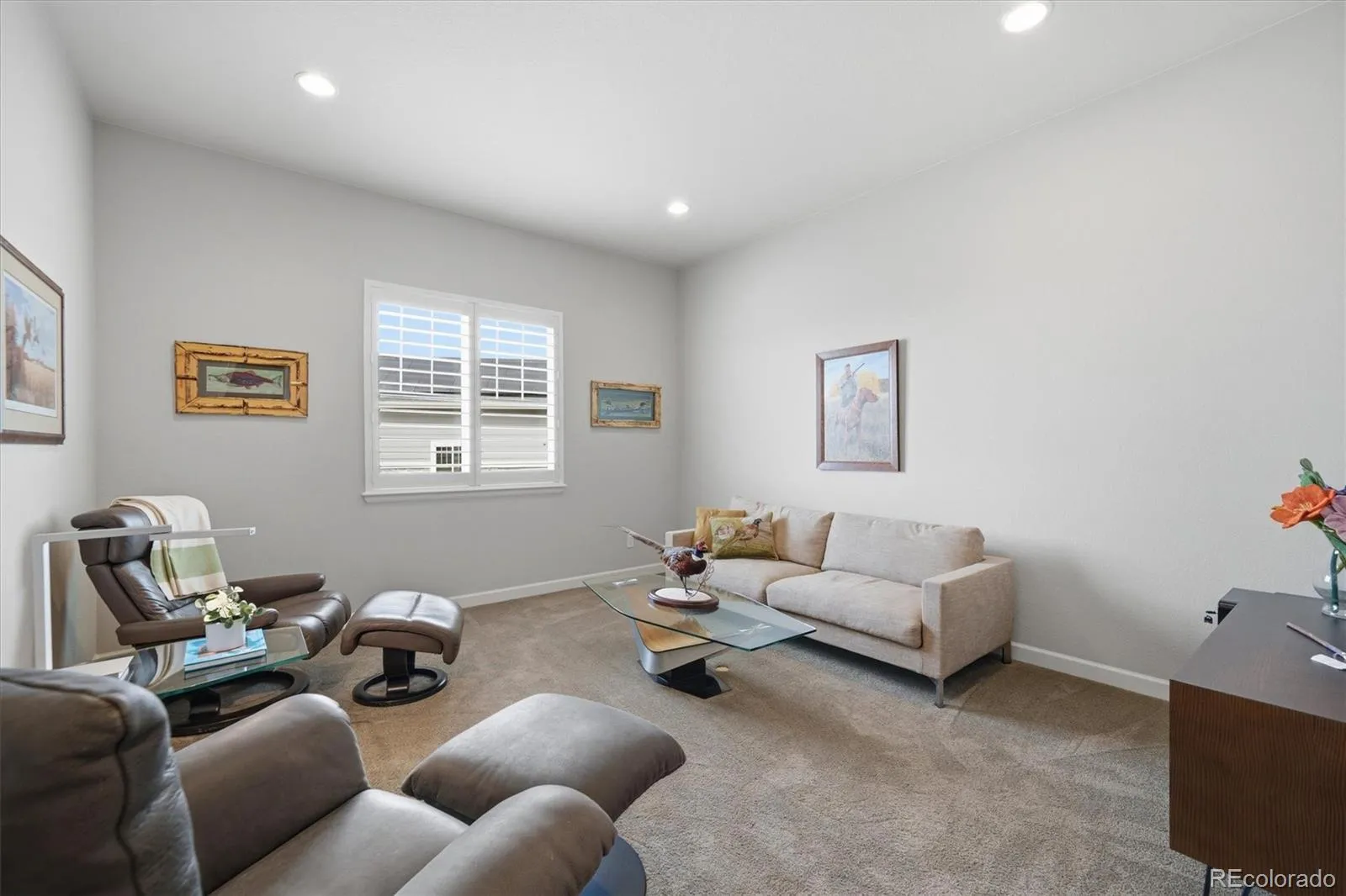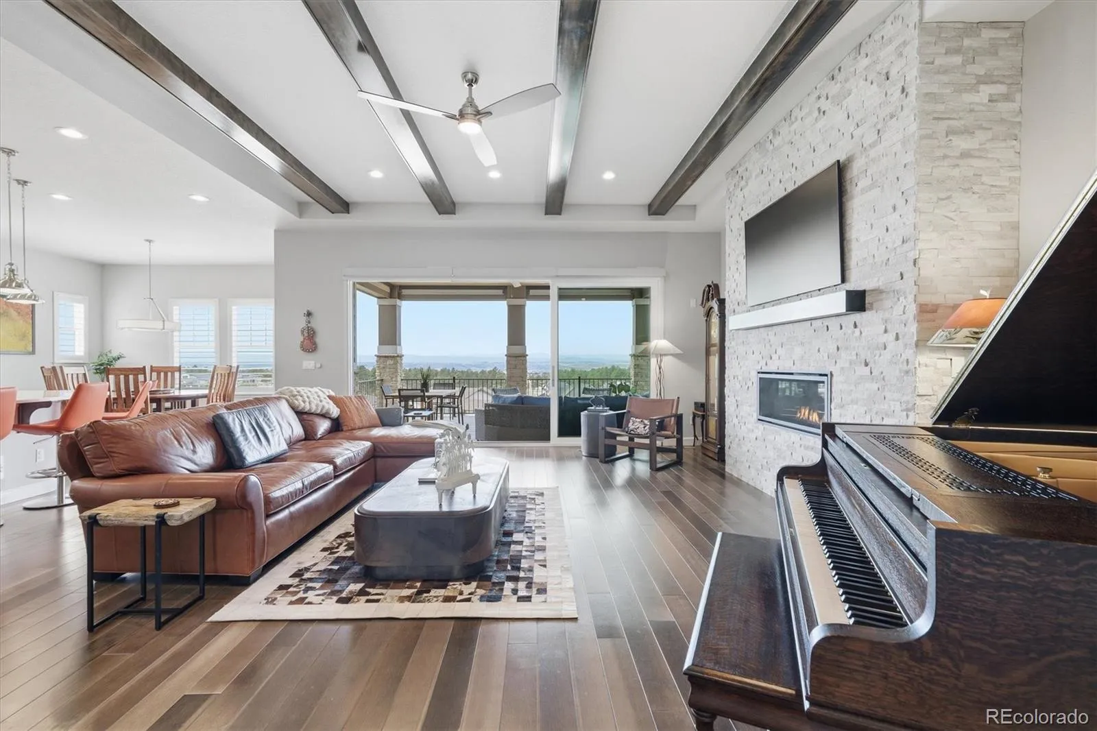 Luxury Home with Mountain View. The moment you step through the front door, you’re struck by the breathtaking mountain panoramas stretching from Pikes Peak to Longs Peak. The view becomes part of daily life. Enjoy morning coffee in the nook as the first light touches the peaks. Relax in the Great Room with the Front Range always in sight. A newly built 40-year Trex deck extends the main level living space, with triple sliding doors opening from the Great Room to a covered outdoor area featuring ceiling heaters, a fan, and lighting – perfect for year-round enjoyment and taking in those never-ending views. You might also choose to gather below at the firepit in the evenings as the mountains stand quietly against the night sky. This lovely walk-out ranch offers exceptional indoor and outdoor living. The main level features a spacious Great Room, open kitchen with a bright morning nook, formal dining room, three bedrooms, and a dedicated office – creating a comfortable yet grand living space. The finished basement expands your options with a large recreation room and wet bar, an additional bedroom and bath, and a versatile flex room ideal for a gym, playroom, or second office. The unfinished area offers ample storage space and potential to further expand the living area. Step outside to enjoy the beautifully updated backyard, complete with the firepit and covered patio area. Additional highlights include a second electrical subpanel, whole-house carbon filter humidifiers, and a water softening system.