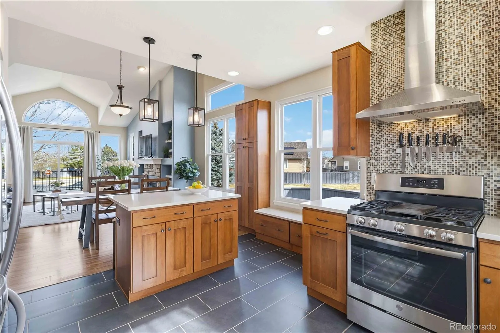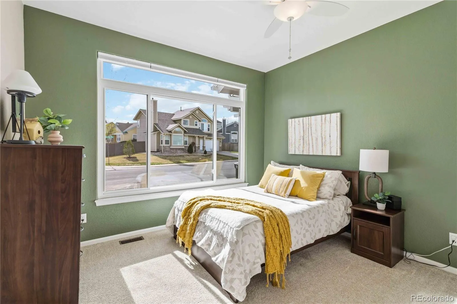 Welcome home to this beautifully maintained ranch offering an open floor plan, abundant natural light, and a fully finished basement. The main living space is truly the heart of the home, featuring vaulted ceilings, a stunning wall of windows, and a cozy gas fireplace with stone surround and built-in shelving. The seamless flow between the family room, dining area, and kitchen creates an inviting space perfect for both everyday living and entertaining. The kitchen is equipped with stainless steel appliances and opens directly to the living area, allowing you to stay connected while cooking or hosting. Just off the main living space, you’ll find easy access to the outdoor patio, extending your living and entertaining space. The main floor includes a spacious primary suite with an updated bathroom and walk-in closet, along with a secondary bedroom, an additional bonus bedroom or office, a full hall bath, and convenient main floor laundry. Downstairs, the finished basement offers incredible flexibility with three additional bedrooms, a bathroom, and a large bonus or multi-purpose room, ideal for a media room, home gym, or play space. Situated on a desirable corner lot, this home also features major system updates including a newer Trane furnace (2020), water heater (2022), newer Anderson windows, fresh exterior paint, and a brand new roof (2026) providing peace of mind and true move-in ready convenience. Conveniently located near the community park, pool, trails, shopping, dining, and commuter routes, this home combines comfort, convenience, and the best of Colorado living.