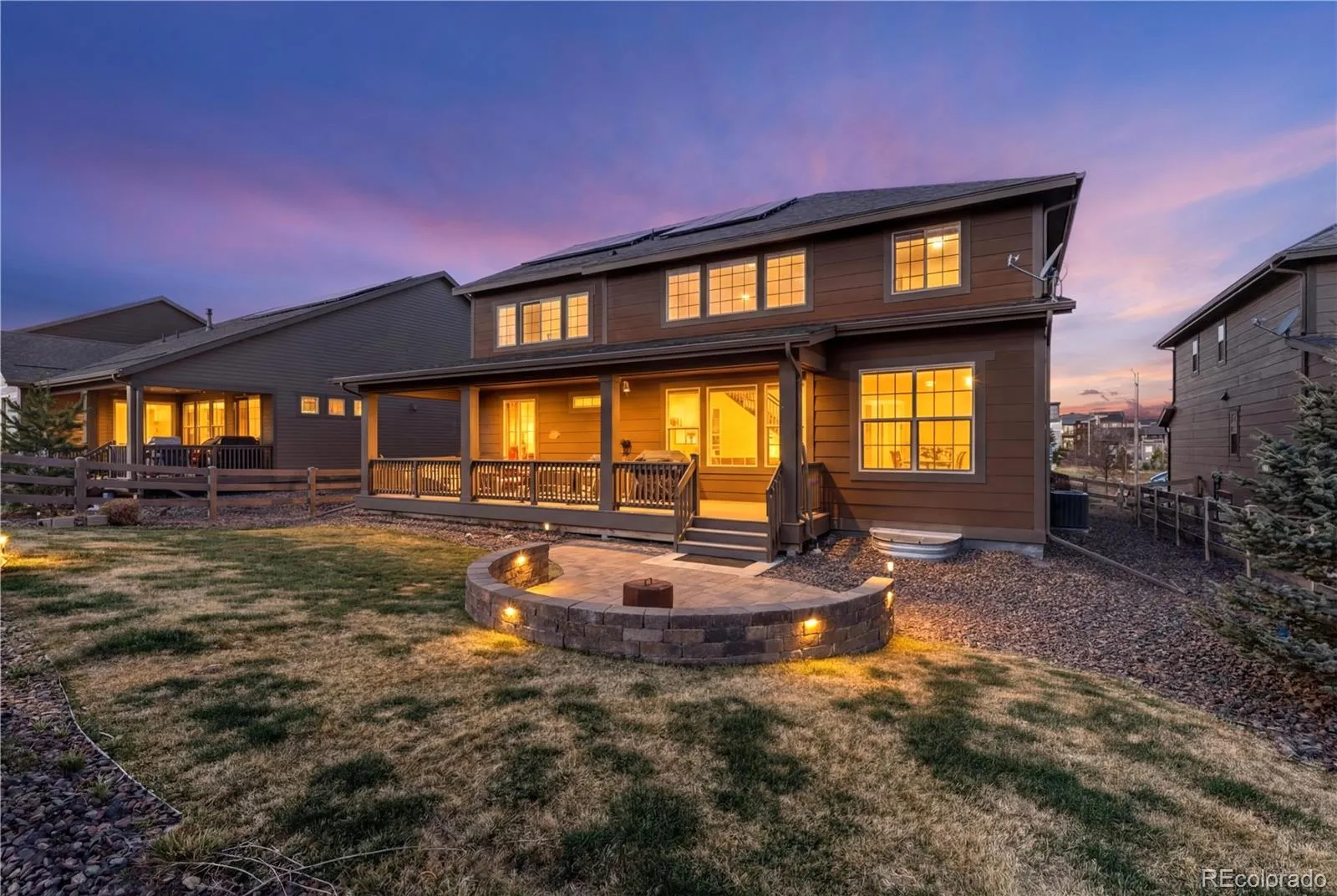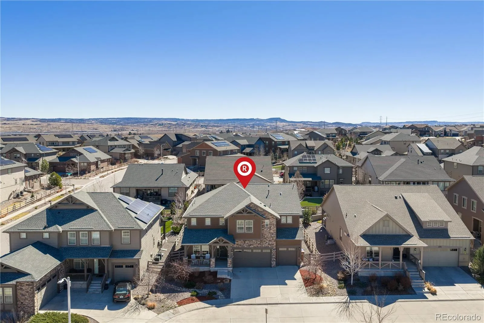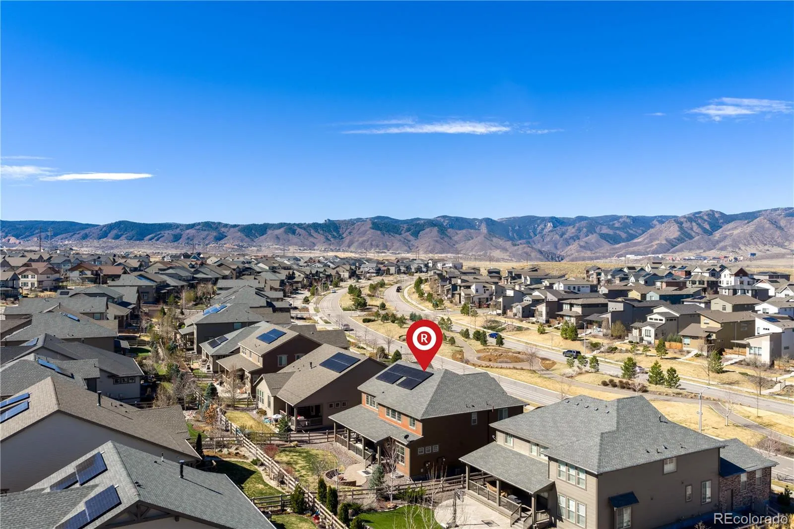 Bright and inviting Sterling Ranch home with an open layout, soaring two-story living room, and abundant natural light throughout. The main level flows from the sitting area into a well-appointed kitchen featuring generous cabinetry with pull-out and soft-close drawers, a large island, and seamless connection to the dining and living spaces anchored by a gas fireplace. A main-floor bedroom with adjacent full bath offers flexible use for guests, office, or multi-generational living. Upstairs, a spacious loft captures mountain views and incredible panoramic summer sunsets, while the private primary suite includes a five-piece bath, oversized walk-in closet with built-ins, and direct laundry access. Enjoy a covered east-facing deck for shaded afternoons and a low-maintenance yard. The 3-car garage includes an oversized bay and 220V power, offering flexibility for storage, hobbies, or future needs. Solar panels, smart dimmers and thermostats, and a radon mitigation system enhance efficiency and everyday comfort. The unfinished basement provides excellent storage today and a blank canvas for future expansion. Located in Sterling Ranch with access to community amenities and just minutes from Chatfield State Park, trails, dining, and more—turnkey and ready to make your own.