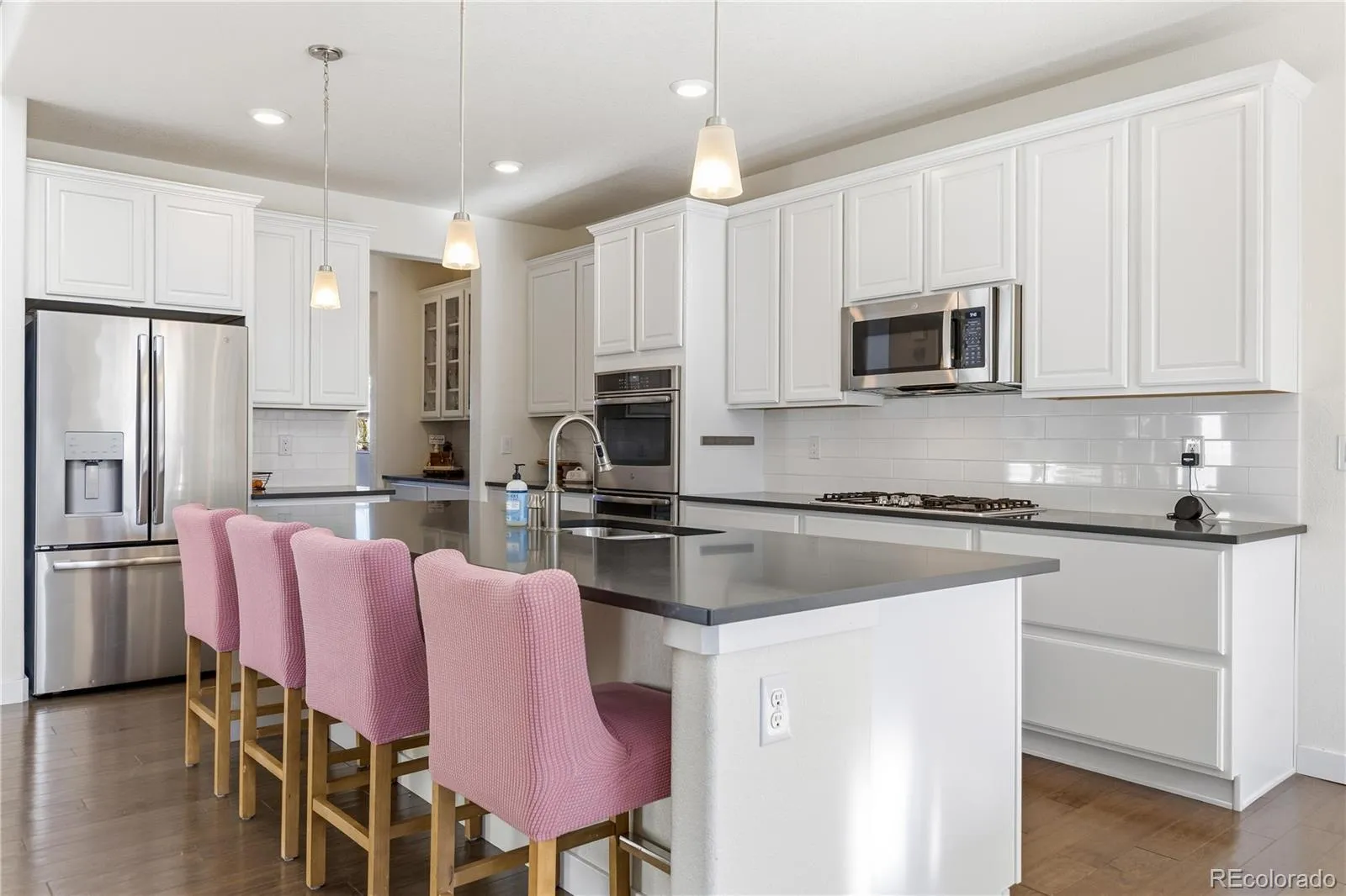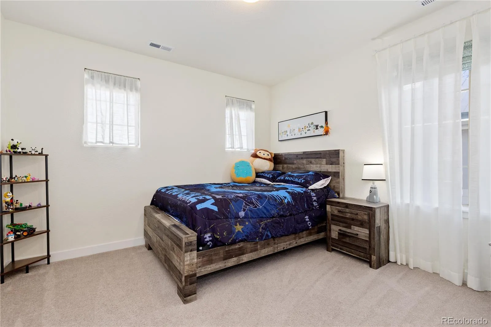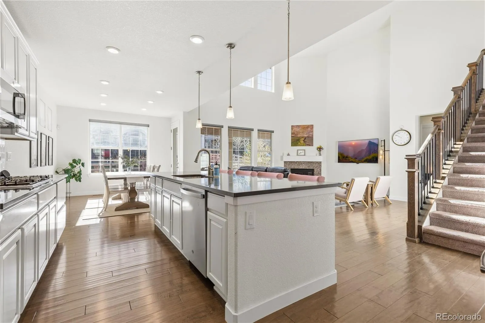 Bright and inviting Sterling Ranch home with an open layout, soaring two-story living room, and abundant natural light throughout. The main level flows from the sitting area into a well-appointed kitchen featuring generous cabinetry with pull-out and soft-close drawers, a large island, and seamless connection to the dining and living spaces anchored by a gas fireplace. A main-floor bedroom with adjacent full bath offers flexible use for guests, office, or multi-generational living. Upstairs, a spacious loft captures mountain views and incredible panoramic summer sunsets, while the private primary suite includes a five-piece bath, oversized walk-in closet with built-ins, and direct laundry access. Enjoy a covered east-facing deck for shaded afternoons and a low-maintenance yard. The 3-car garage includes an oversized bay and 220V power, offering flexibility for storage, hobbies, or future needs. Solar panels, smart dimmers and thermostats, and a radon mitigation system enhance efficiency and everyday comfort. The unfinished basement provides excellent storage today and a blank canvas for future expansion. Located in Sterling Ranch with access to community amenities and just minutes from Chatfield State Park, trails, dining, and more—turnkey and ready to make your own.