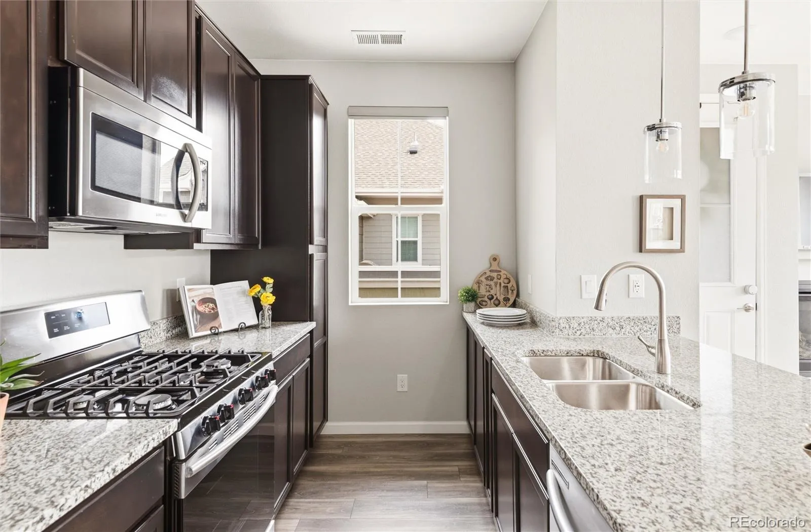 LIKE NEW CONDO WITH ASSUMABLE 2.25% INTEREST RATE FOR VA BUYERS! This 1015 sq. ft. upper level end unit is move in ready and located in the desireable Sorrel Ranch community near Southlands in Aurora. Boasting an open floor plan, with a bright and sunny main living area and modern kitchen, with granite countertops, island, and stainless steel appliances it is just waiting to be your home. Living room features a gas fireplace and Zebra brand blinds on the windows. The large primary bedroom could easily hold a king bed and has a generous walk in closet, new carpet, and new paint. The second bedroom, or office, also has new carpet and paint. The full bath with double sinks, granite countertops and tub with shower, is luxurious. Parking is convenient in the detached 1 car garage just a few steps away. Underneath the condo is your own storage room with shelving and easy ground level access. And it is a pleasant stroll to the swimming pool! Located near Southlands Mall, with all of it’s amenities and E-470, this wonderful condo offers close proximity to anything you would need or want! DIA, Buckley AFB, and DTC are all also near! The assumable 2.25% interest rate is open to VA buyers and they must apply and qualify with the current lender on the property. Contact sellers agent for details! Make this beautiful condo at this great interest rate your new home today! Call Now!