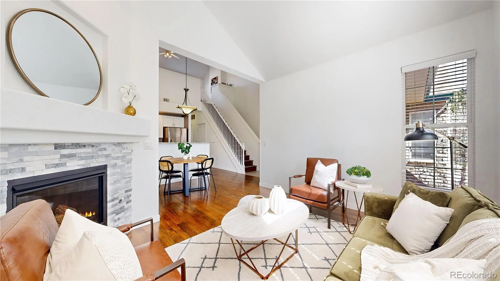 Welcome Home to this tastefully updated condo in Meadow Hills! The property is set up like a townhome, with its own private entrance, attached garage, and 1 unassigned parking spot. Offering greater privacy and utility for discerning buyers. Upon entry, you will immediately notice the lofted ceilings and open-concept floor plan. Natural light is abundant, filling the living spaces with warmth and charm. Hardwood floors run throughout the property for easier cleaning. The updated kitchen is complete with stainless steel appliances and granite countertops. The kitchen flows seamlessly into the dining area for cozy gatherings. Past the dining area, the light-filled living room has many windows and a new fireplace (2025). The living room is a lovely retreat for entertaining, and/or a peaceful getaway from daily chaos! Down the hall, you will pass the in-unit laundry closet and an additional guest 3/4 bath. The additional bedroom is a lovely space and would be great for family or guests, or for use as an office. The primary suite is a true oasis and features its own ensuite bath, complete with a dual vanity, a large soaking tub, and a walk-in closet. Upstairs, the oversized loft is a wonderful space. The loft would be great for an additional gathering space, media area, office, workout studio, or could even be used as a non-conforming 3rd bedroom! This move-in-ready property received a new roof in 2025 and is prepped for a new owner. The community is located in the Cherry Creek 5 School District and offers nearby walking trails, playgrounds, and close proximity to Cherry Creek State Park for all your outdoor activities. The central location provides easy access to I-225, Parker Road, and 470. Don’t miss this lovely opportunity to call 4024 Carson your next home!
