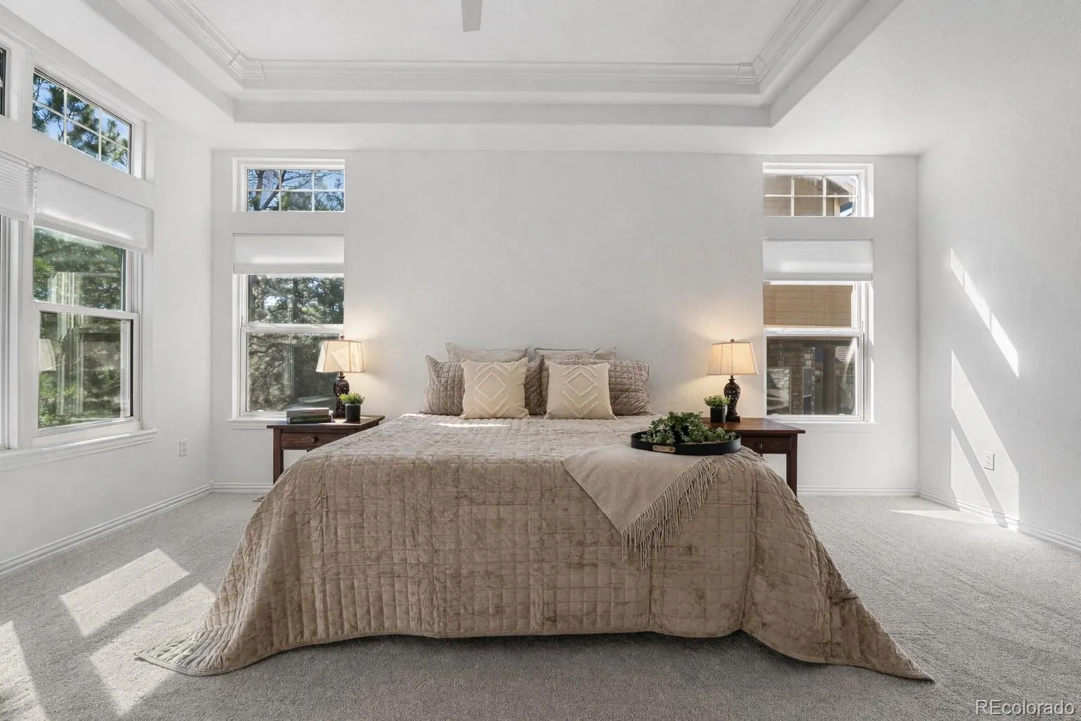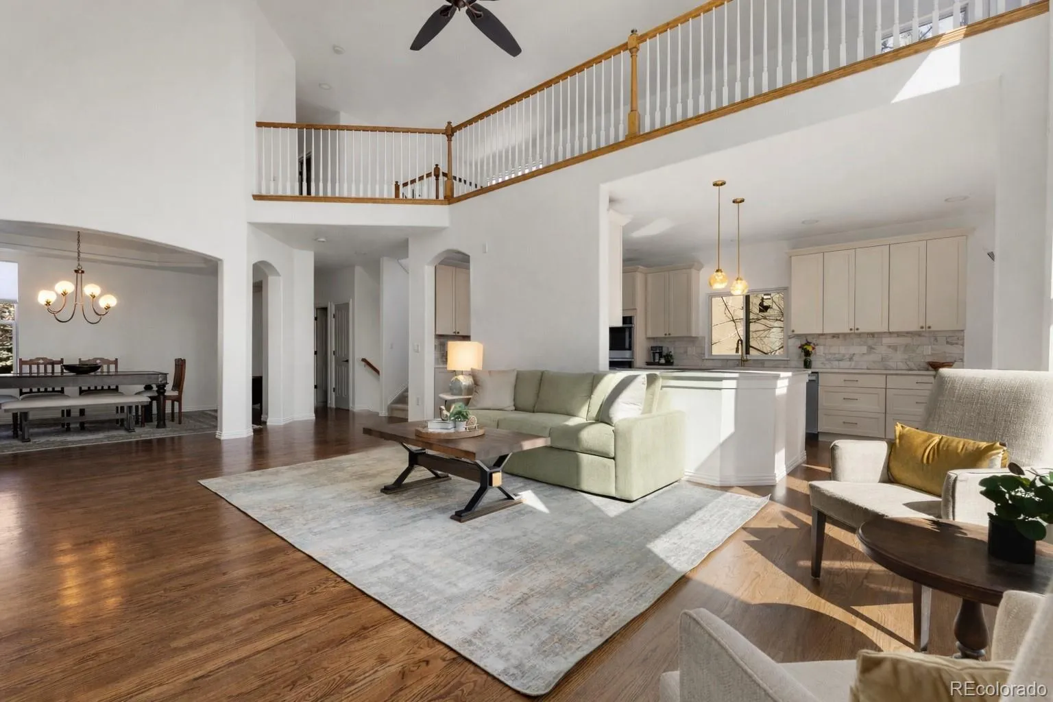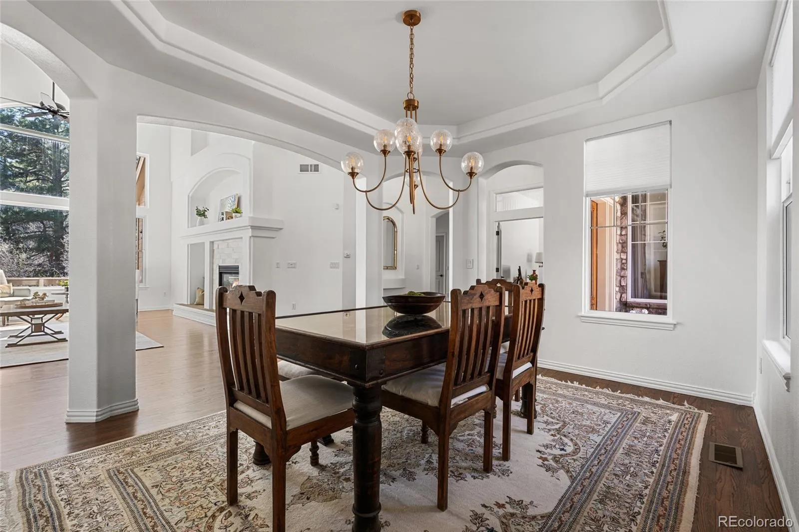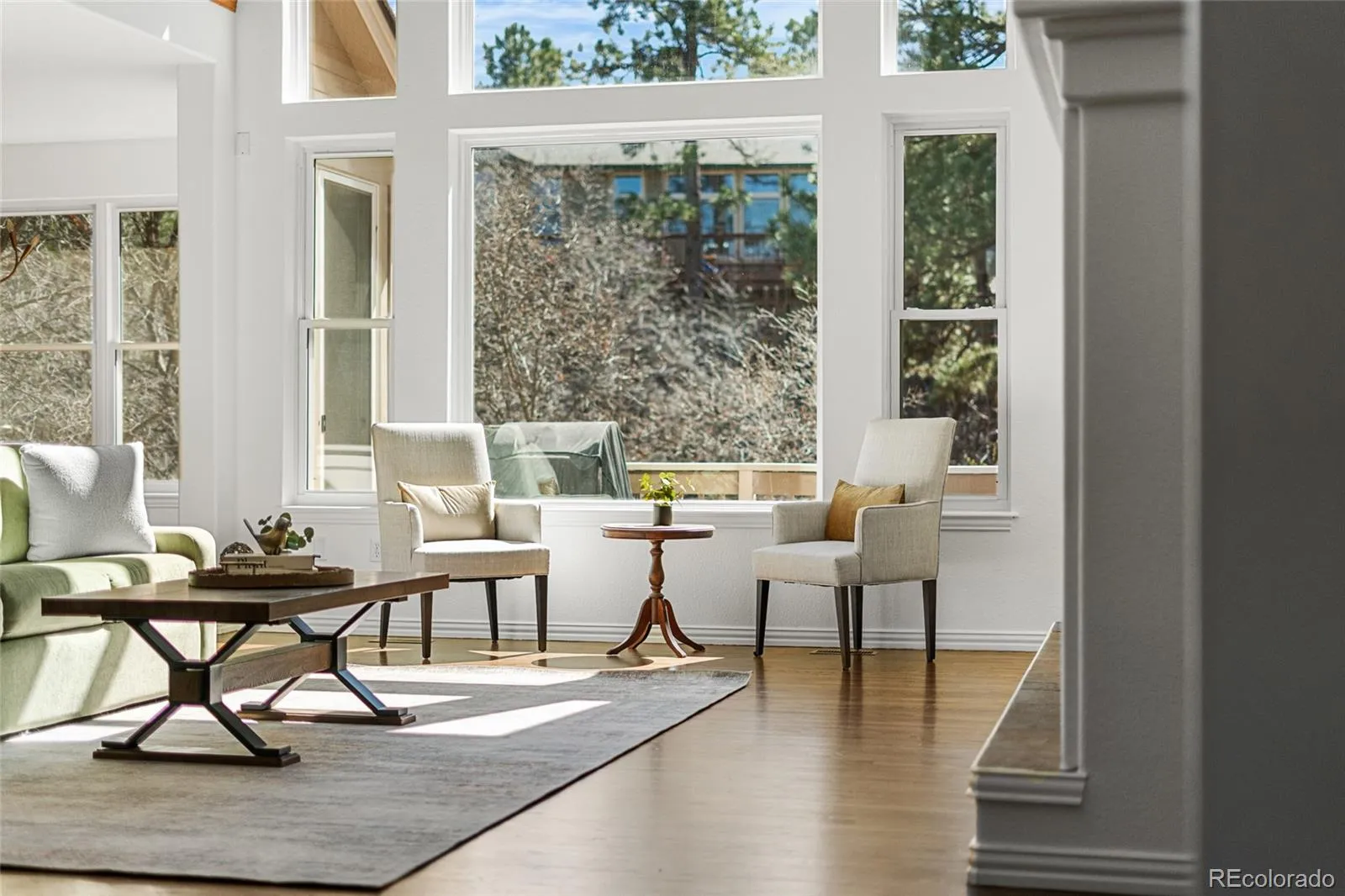 Nestled in the coveted Forest Park neighborhood of Castle Pines, this beautiful & recently updated home showcases a seamless blend of elegance, comfort, & thoughtfully curated design. Situated on a quiet cul de sac, among soaring pines, & gambel oak, where neighborhood deer meander. Featuring 5 beds, 4 baths, & spacious loft (convert to 6th bed or additl office). Upon entry, the vaulted foyer, opens to the newly refinished hardwood floors, freshly painted interior, gorgeous new lighting & new carpet. Recently updated, the stunning kitchen is the heart of the home, showcasing gorgeous quartz countertops, new hardware, new cabinetry, pantry, new SS appliances, double oven, gas stovetop, eat at kitchen peninsula & sunny dining nook with direct deck access, that looks out to the serene backyard & greenbelt. Whether relaxing or entertaining, the family room shines…anchored by a gas fireplace with new surround & wall of windows that fill the space w/natural light. Adjacent to the family room is a formal dining room & main floor office with french doors. Retreat to the main floor primary suite, where soaring ceilings create a serene escape, complete with ensuite bath with soaking tub, quartz countertops, new fixtures, new flooring, & spacious walk in closet. Upstairs offers, 2 additional beds, a spacious guest bath with new countertops & spacious loft, providing exceptional versatility for a playroom, or additional living space. Full finished walk out basement…new carpet & paint, spacious family room, game room, wet bar, 2 guest beds, full bath, & ample storage. Outdoors, the beautiful flagstone patio & surrounding yard, create a private woodland retreat–perfect for entertaining, or star gazing from the hot tub. Features a Newer Roof! Residents enjoy access to a private pool, clubhouse, & year-round neighborhood gatherings. Enjoy a prime location near top rated schools, nestled around The Ridge Golf Course, scenic trails, shopping, dining, I-25, Castle Rock & DTC.