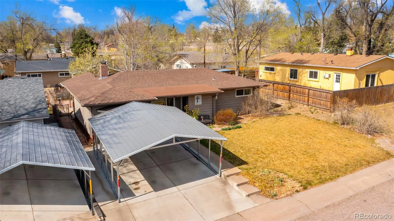 Welcome to this charming ranch-style home located in the established Security neighborhood of Colorado Springs. This well-maintained home offers 3 bedrooms, 2 bathrooms, and 1,549 square feet of comfortable single-level living on a spacious lot. Inside, the home features both a living room and a separate family room, providing flexible spaces for relaxing, entertaining, or gathering with family and friends. The main-level family room is highlighted by a cozy wood-burning fireplace, creating a warm and inviting atmosphere during Colorado’s cooler months. The kitchen offers plenty of space for cooking and dining, while the adjoining areas allow for easy everyday living. All three bedrooms are conveniently located on the main level, along with a full bathroom and an additional ¾ bath. The home also includes main-level laundry and a mix of wood, tile, and carpet flooring throughout. Step outside to enjoy the level backyard with a wood deck and rear fencing, providing space for outdoor entertaining, pets, or gardening. Additional features include a two-car garage, forced-air heating, ceiling fans, and included kitchen appliances along with the washer and dryer. Situated close to parks, schools, shopping, and public transit, this home also offers convenient access to Fort Carson, Peterson Space Force Base, and major commuting routes. With its functional layout and great location, this home is a wonderful opportunity to enjoy comfortable Colorado Springs living.
