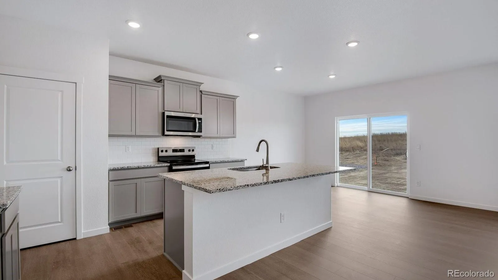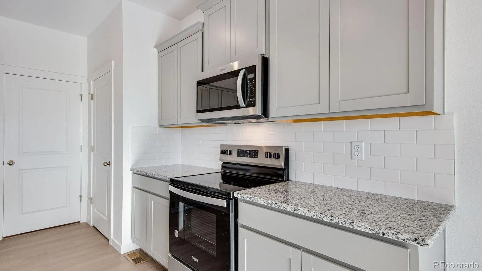 Contact builder today about Special Financing for this home – terms and conditions apply. 5 Bedrooms, 3 baths, Loft, Study! Prestigious Douglas County Schools! Open flow between great room, dining, and kitchen. Light and bright decor features including soothing gray cabinetry with crown molding, beautiful granite kitchen counters with subway tile back splash, stainless appliances, tile bath floors & quartz bath countertops. This home offers an extensive list of features including 8′ front door, 2 panel interior doors and craftsman style trim, A/C, front yard xeriscape, 8′ tall garage doors, plus Smart home features: keyless entry, video doorbell, Smart lighting, thermostat, and Smart speaker! Deako customizable lighting switches! Come enjoy the open space and peace and quite of our community! Est. move in May 2026.