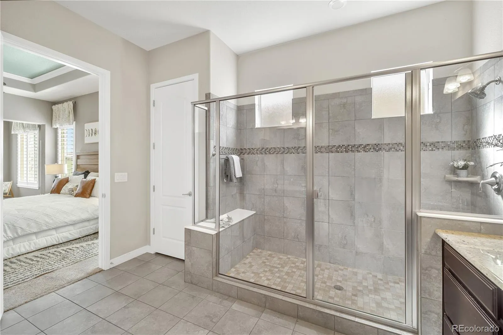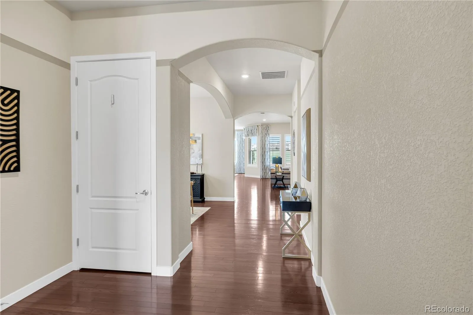 Absolutely Amazing former GABLE MODEL home & Golf Course Location w/ Stunning Mountain & Fairway Views! The beautiful 2- bedroom home with an office is located in the 55+ Heritage Todd Creek neighborhood. Enter the home to beautiful hardwood floors throughout most of the main level. The floor plan is magnificently open with the kitchen, dining, and family rooms all adjoining and open to one another. This former model home includes a formal dining room and a butler’s pantry! The large family room features a warm and inviting fireplace and mantel. The Primary Bedroom has a tray ceiling and beautiful golf course views and attaches to a beautiful primary bath. There is a large 2nd bedroom with a walk in closet and full ensuite 2nd bath for complete privacy. All windows throughout the main level are beautifully finished with White Plantation Shutters and window coverings. Love the outdoors? The nicely landscaped back yard flows out to the golf course with amazing views delivered from the yard and oversized covered back deck and professionally built extended patio. Just Stunning Views! Finally, the basement is finished and ready for your personal touches to complete the comfort of your new home. Come see this beautiful home in this really wonderful 55+ community offering a great Golf Course, a Clubhouse with fantastic restaurant and bar, and 2 pools (indoor and outside). There are clubs galore to explore, a billiards room, yoga and dance classes, library, and ballroom all for your use and enjoyment.