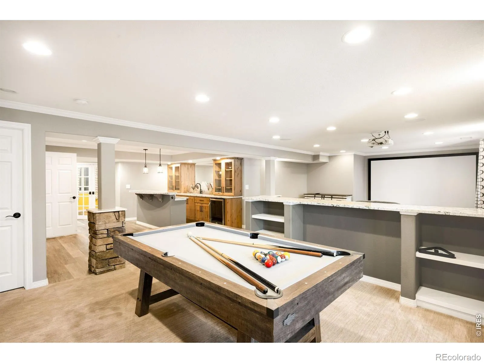 Tucked into a peaceful corner of North Fort Collins, this Hearthfire home offers a rare blend of warmth, space and effortless livability. Set on a coveted corner lot, this residence welcomes with a charming Craftsman-style front porch and a swing. Inside, a formal living area is filled with natural light, while the main living space is anchored by a cozy fireplace and inviting ambiance. The expansive kitchen features rich wood cabinetry and a sunlit dining area. Retreat to the main-floor primary suite boasting deck access and a five-piece bath. Downstairs, the finished basement elevates entertaining with a standout wet bar, recreation area with a projector screen, a hobby room with built-in cabinetry and versatile flex space. A dedicated laundry room is an added convenience. Outdoor living continues with a spacious deck, large patio and a firepit surrounded by a serene backyard setting. Complete with a three-car garage, this home delivers comfort and character in a prime location.