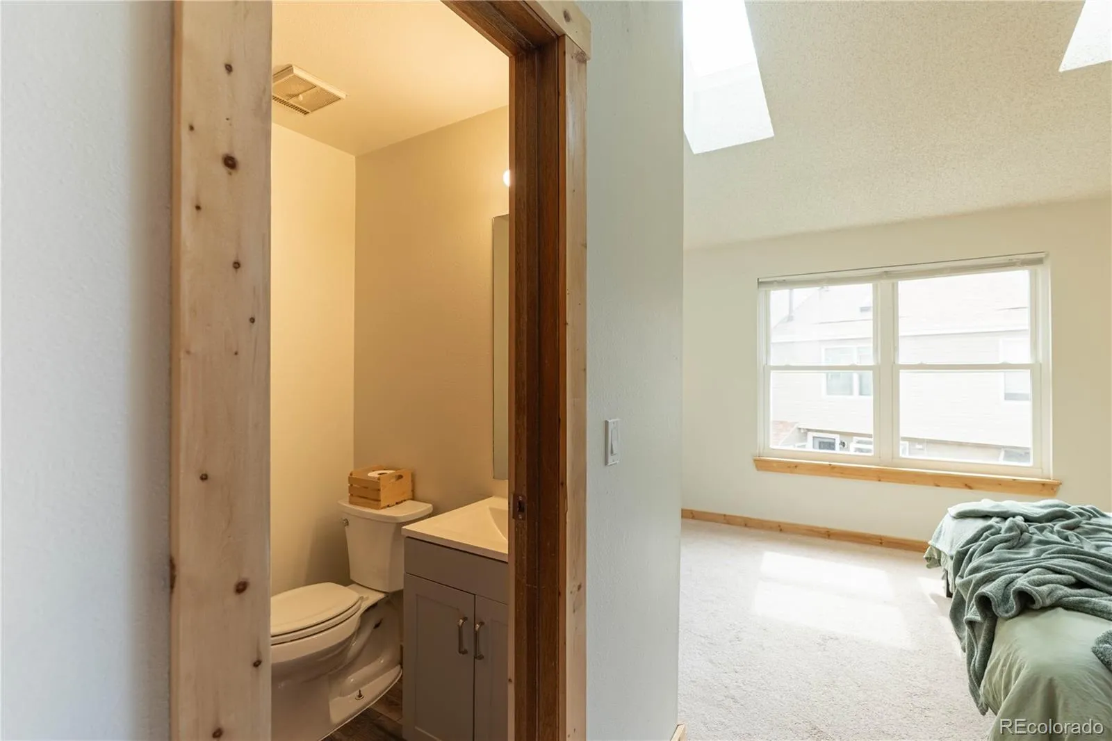 Upstairs, you’ll find two oversized primary bedrooms, each with its own ensuite bathroom, featuring vaulted ceilings, abundant natural light, and skylights that create a bright and airy feel.