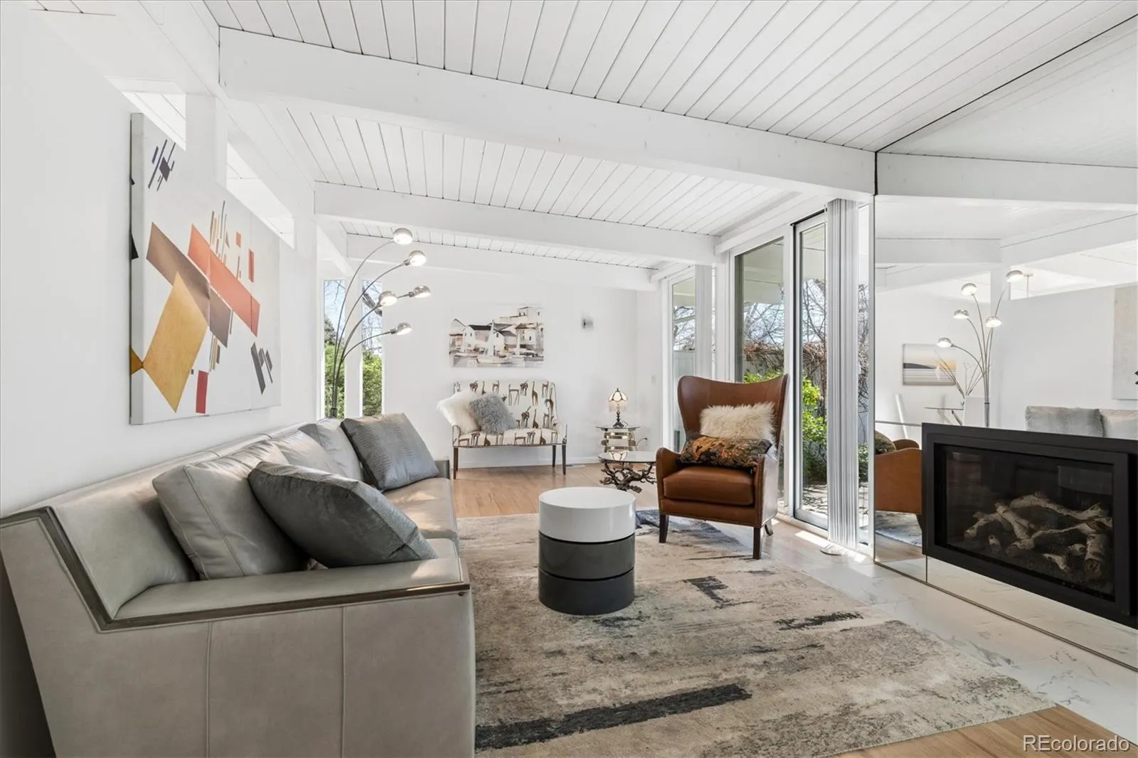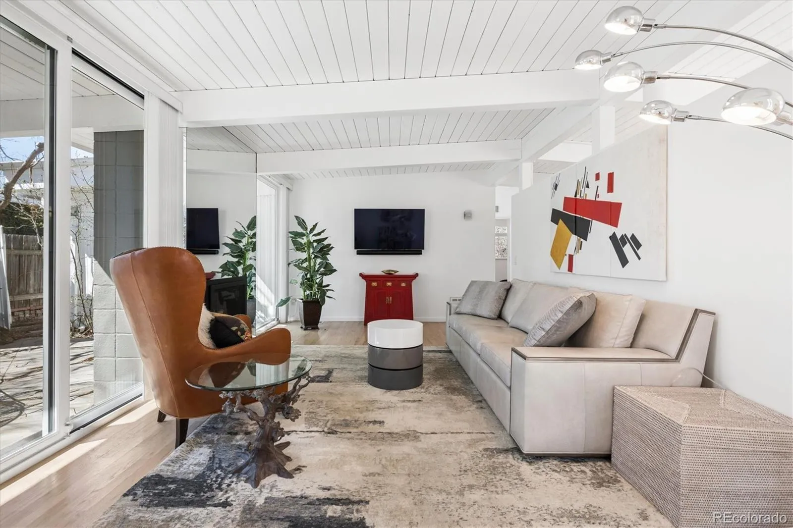 Classic mid-century modern in coveted Krisana Park, thoughtfully remodeled to blend timeless architecture with today’s finishes. Stunning design showcases vaulted ceilings, expansive windows, and an abundance of natural light throughout. Extensive hardwood floors. Totally remodeled kitchen featuring quartz countertops and a stylish backsplash. The inviting great room offers floor-to-ceiling windows, a cozy fireplace, and private access to an enclosed patio—perfect for indoor-outdoor living. The primary suite is a true retreat with direct access to a large deck overlooking a secluded backyard, along with a beautifully remodeled bath. Two spacious secondary bedrooms and an updated hall bath complete the home. Additional highlights include an attached oversized garage and an unbeatable location with easy access to parks, trails, shopping, and dining.